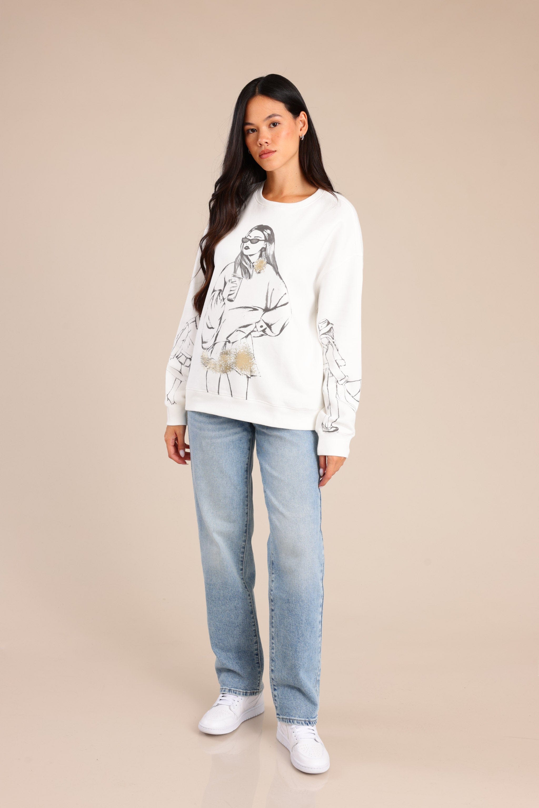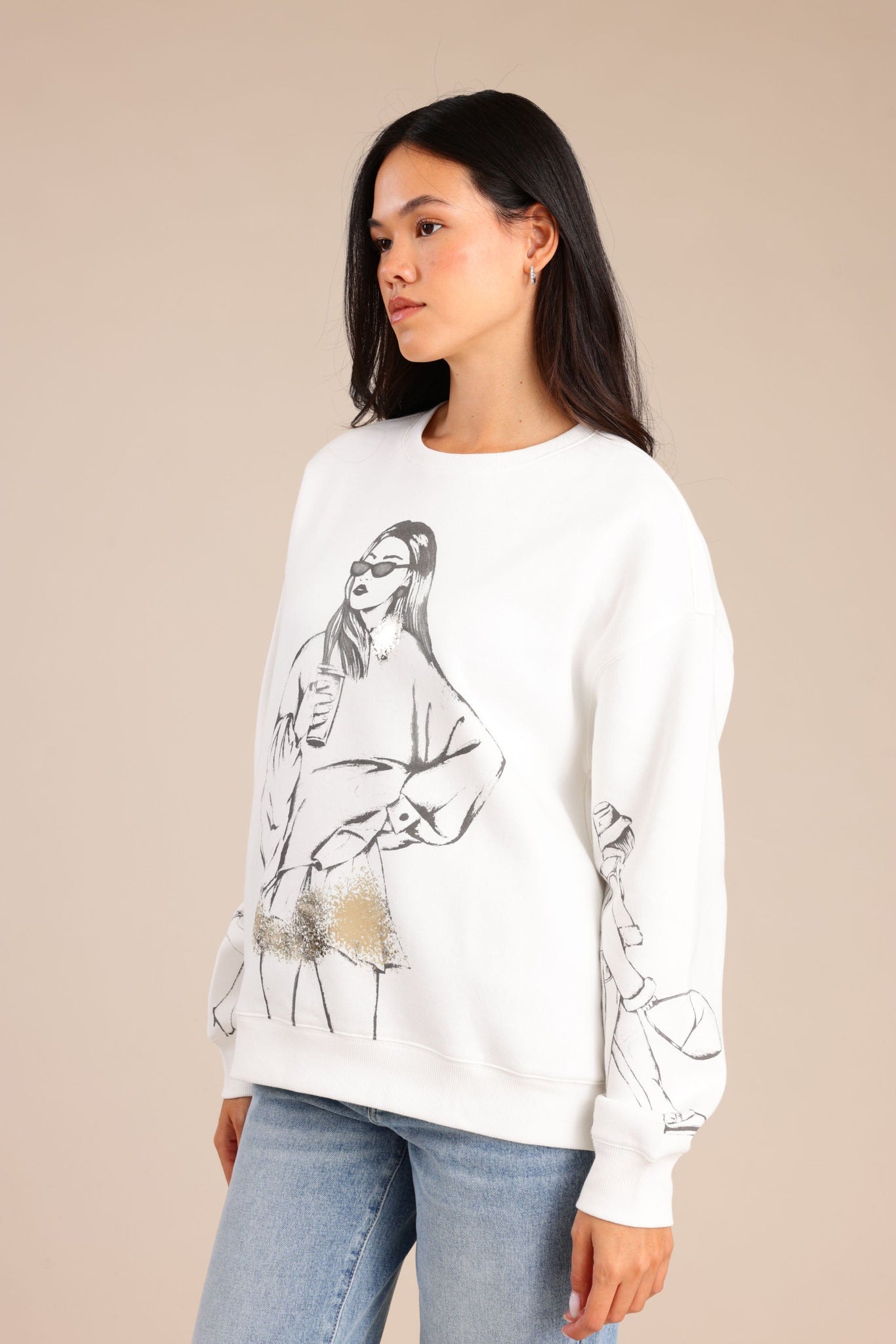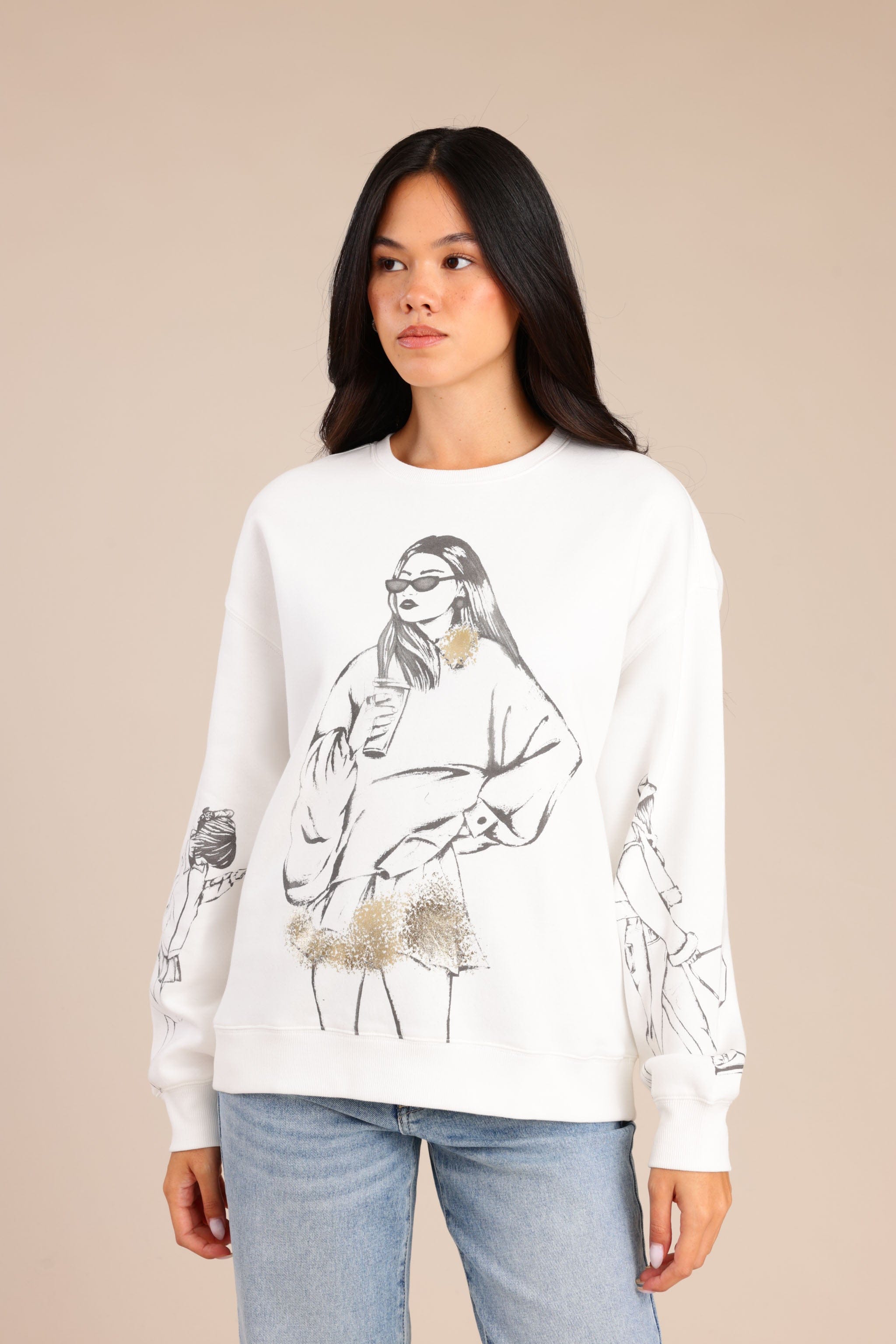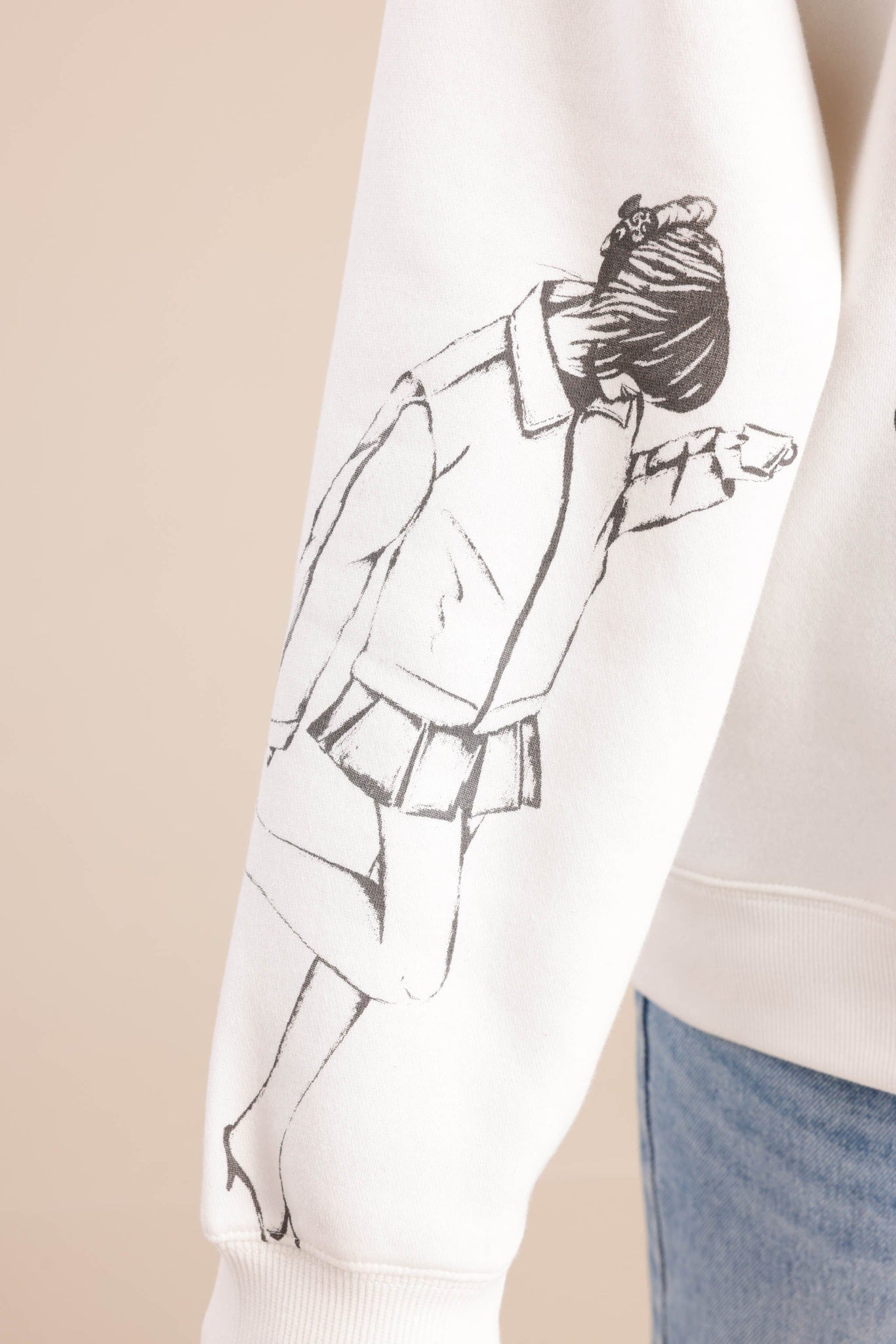 פוטר אופנתי עם צווארון עגול והדפס בחזית ובידיים