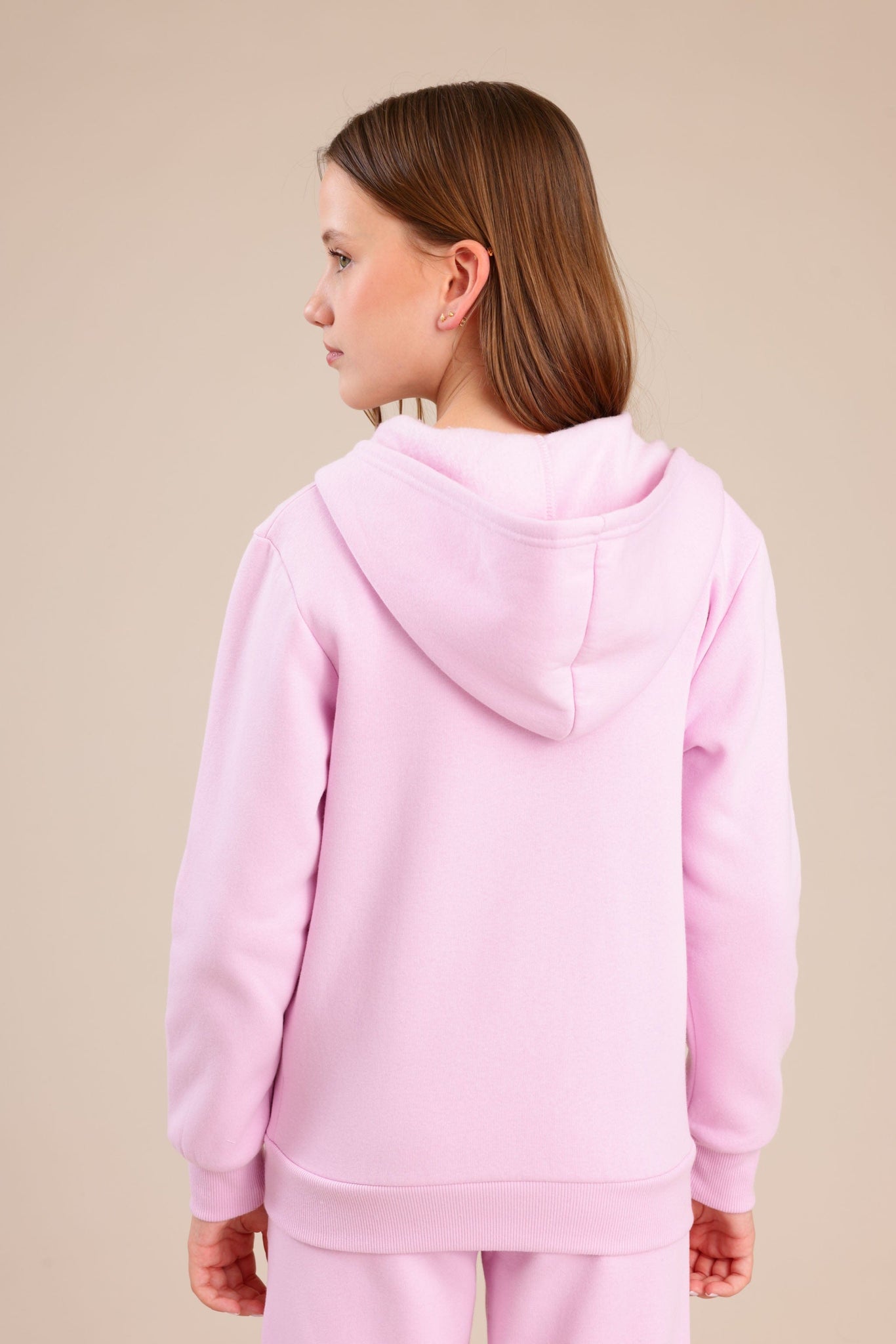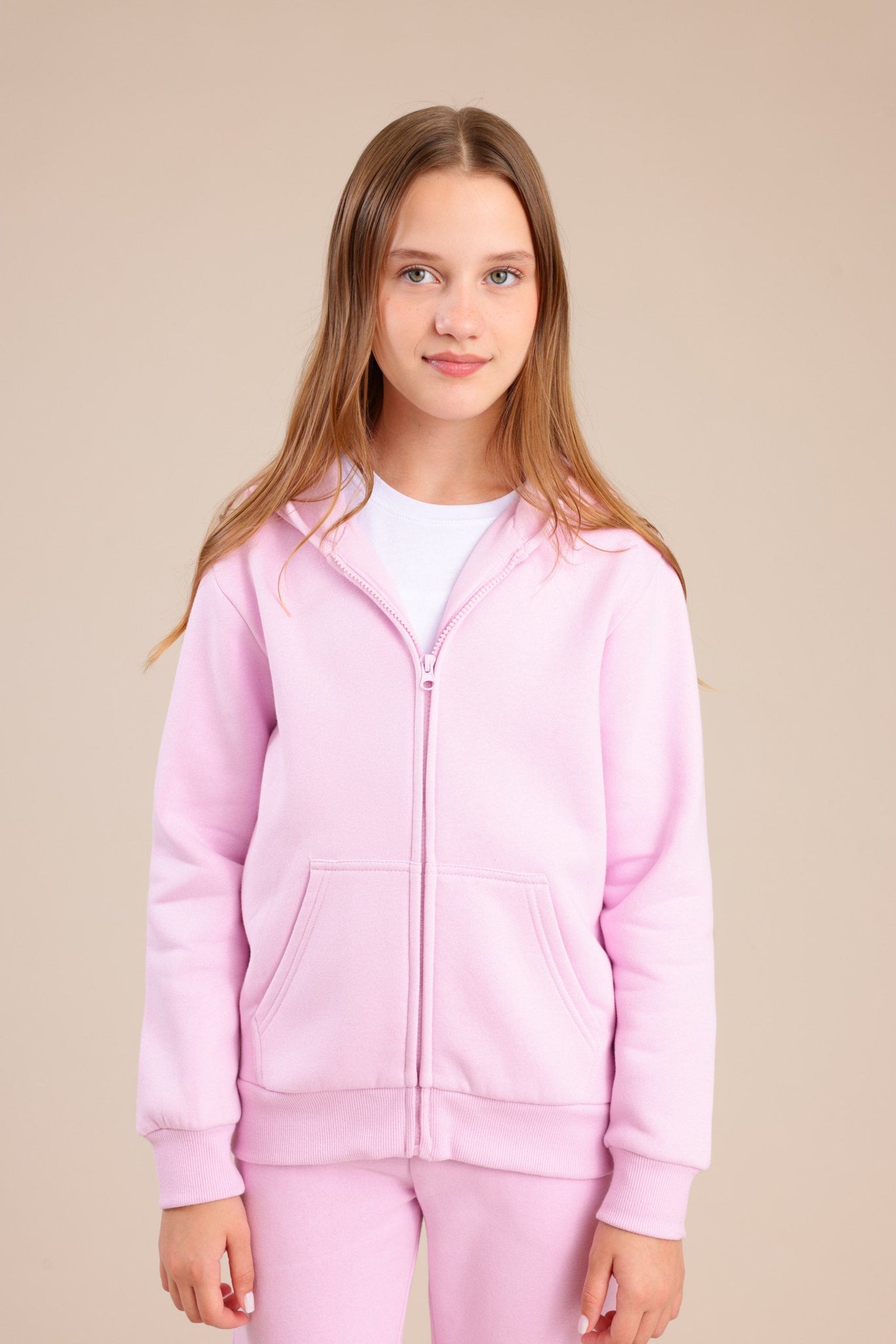 קפוצ’ון לבנות עם רוכסן, בגזרה נוחה. כיס קנגורו, מותן ארוכה ורפויה