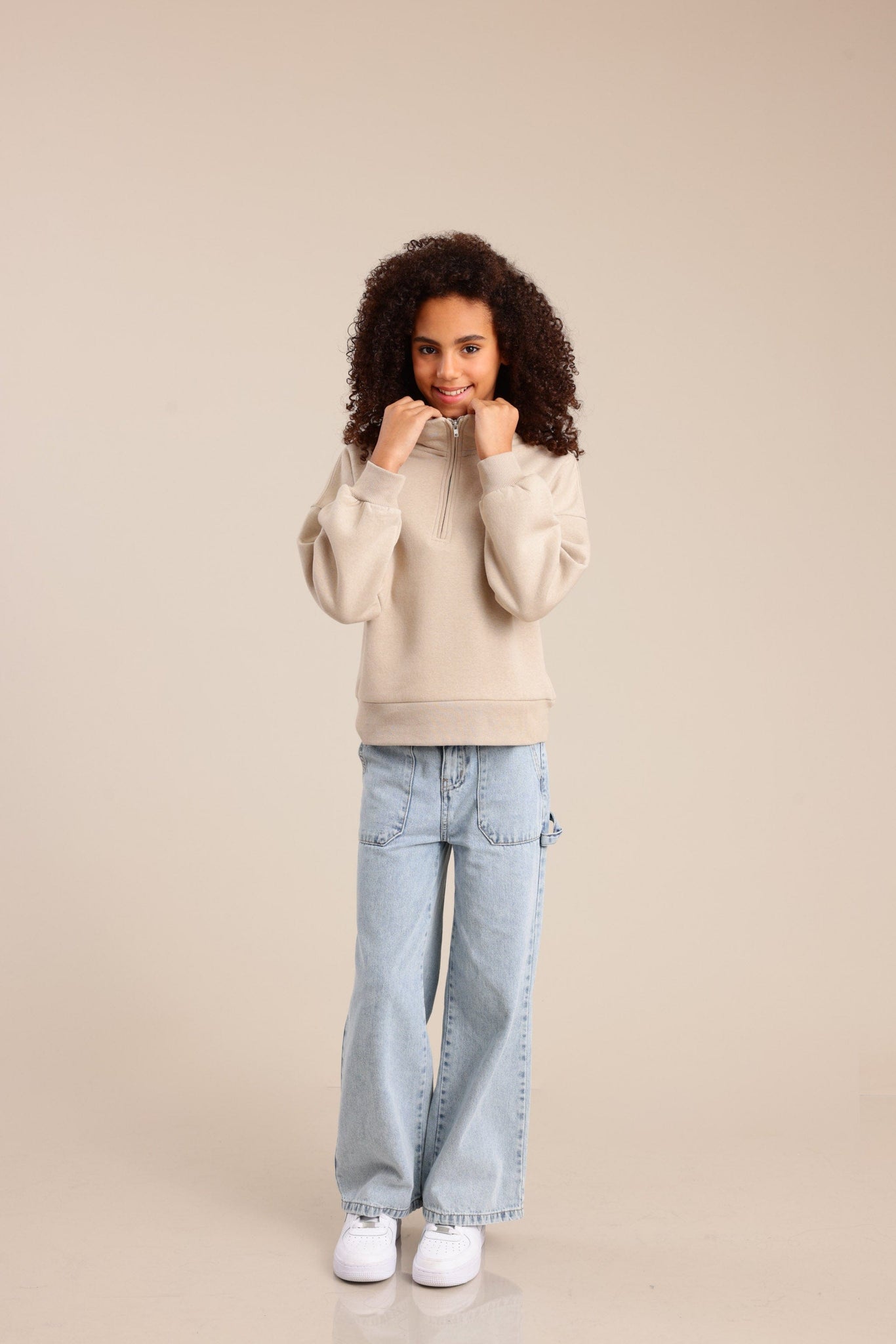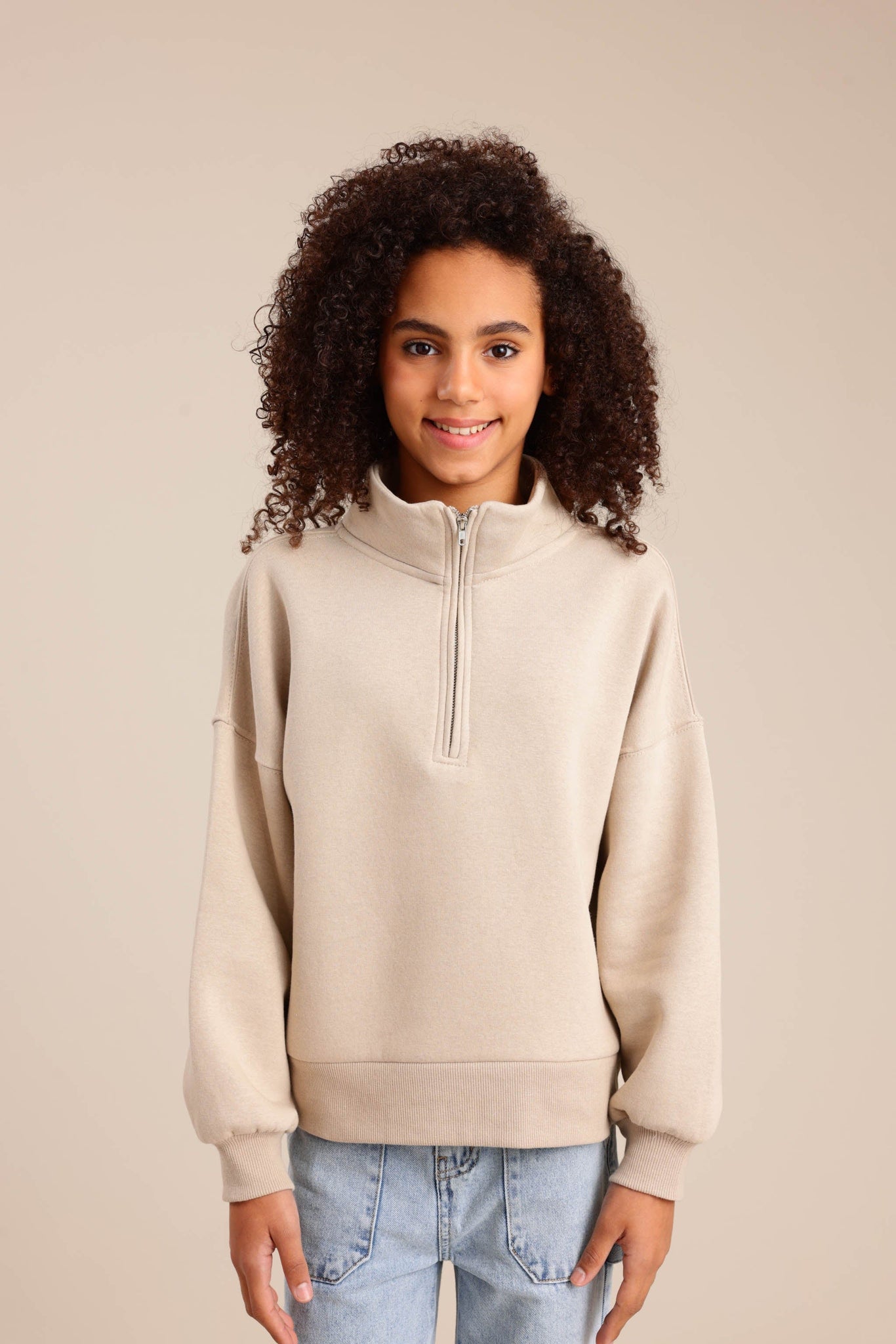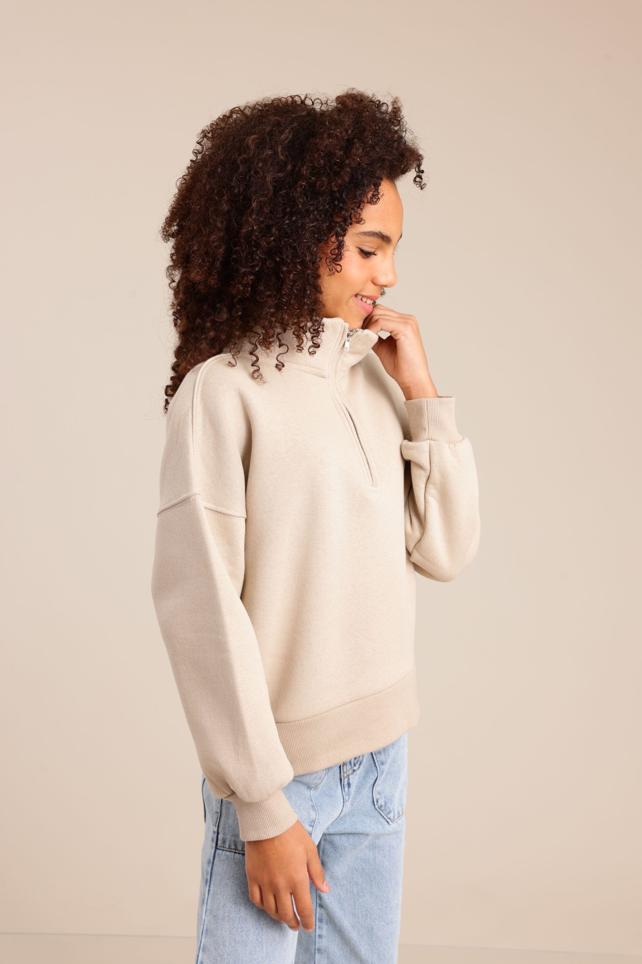פוטר עם חצי רוכסן וצווארון גבוה בגזרת אוברסייז