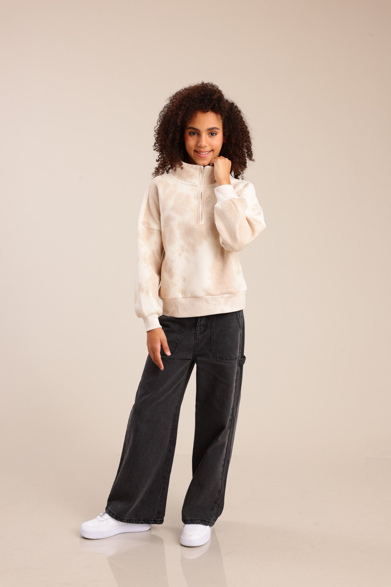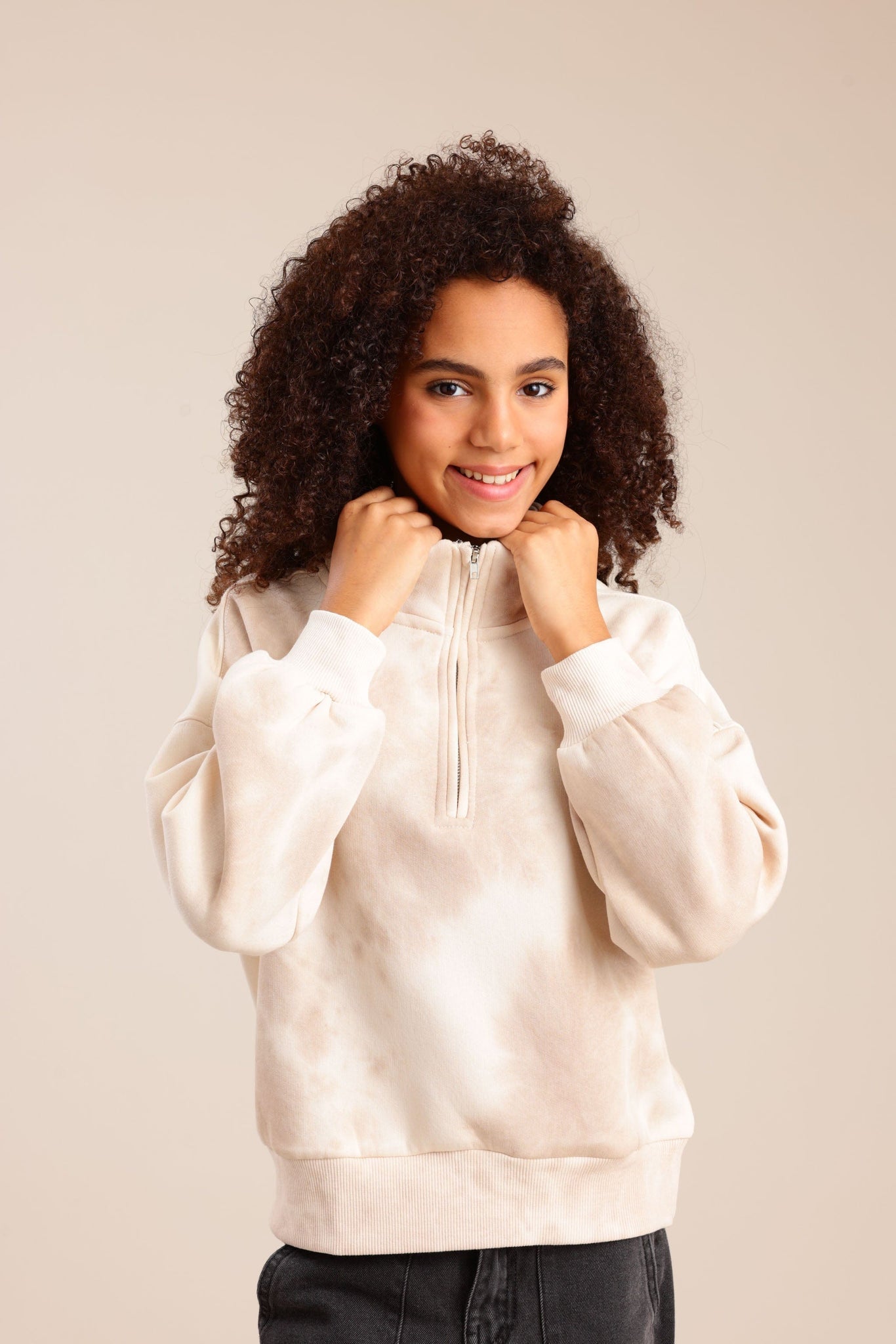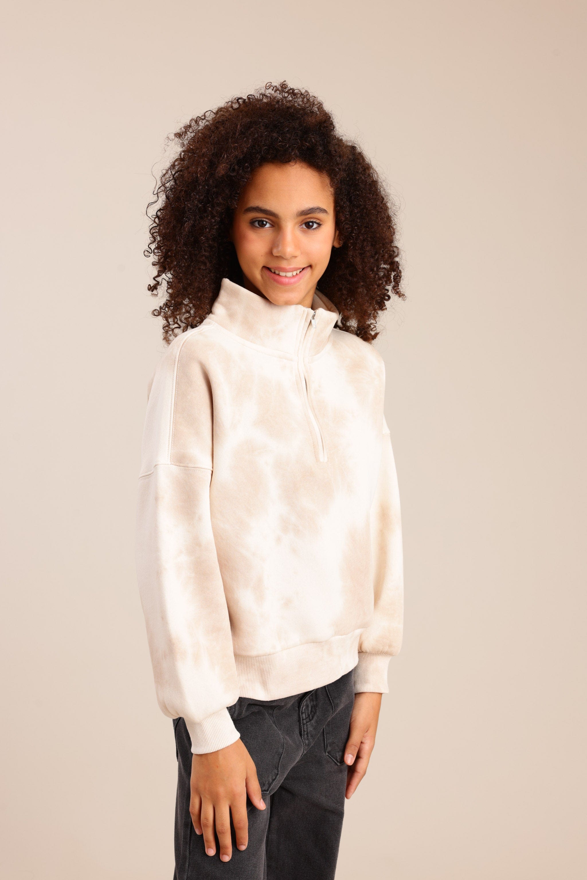 פוטר עם חצי רוכסן וצווארון גבוה בגזרת אוברסייז