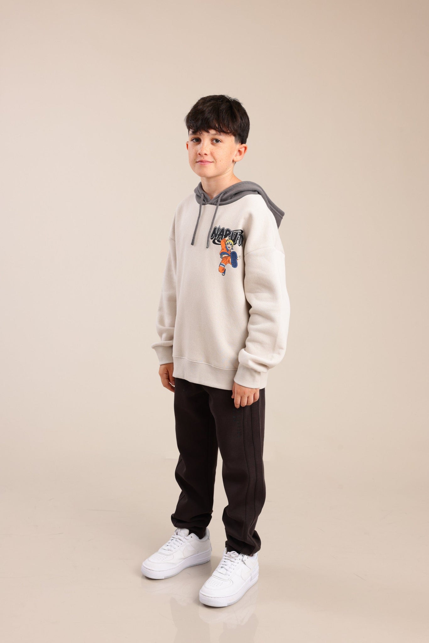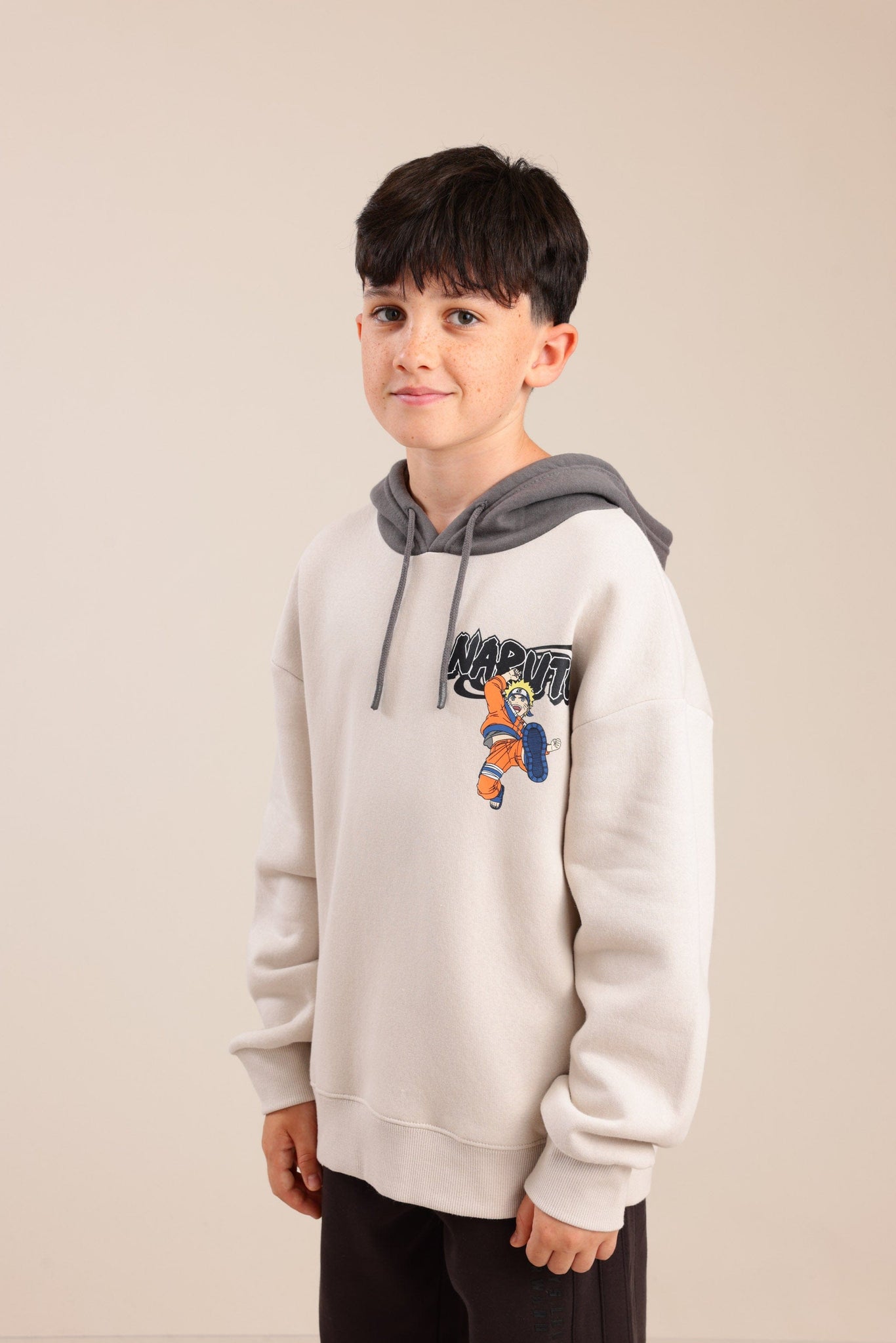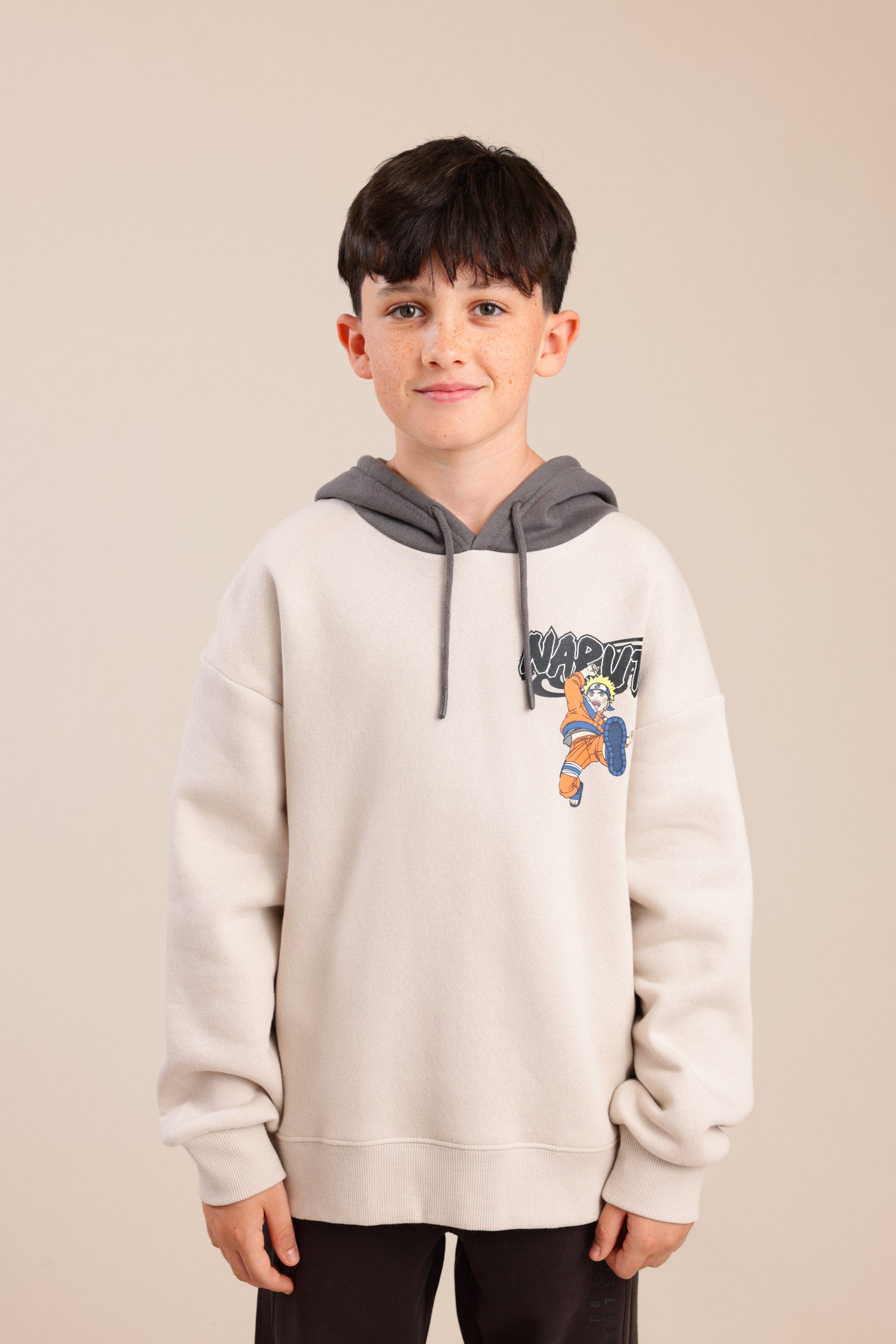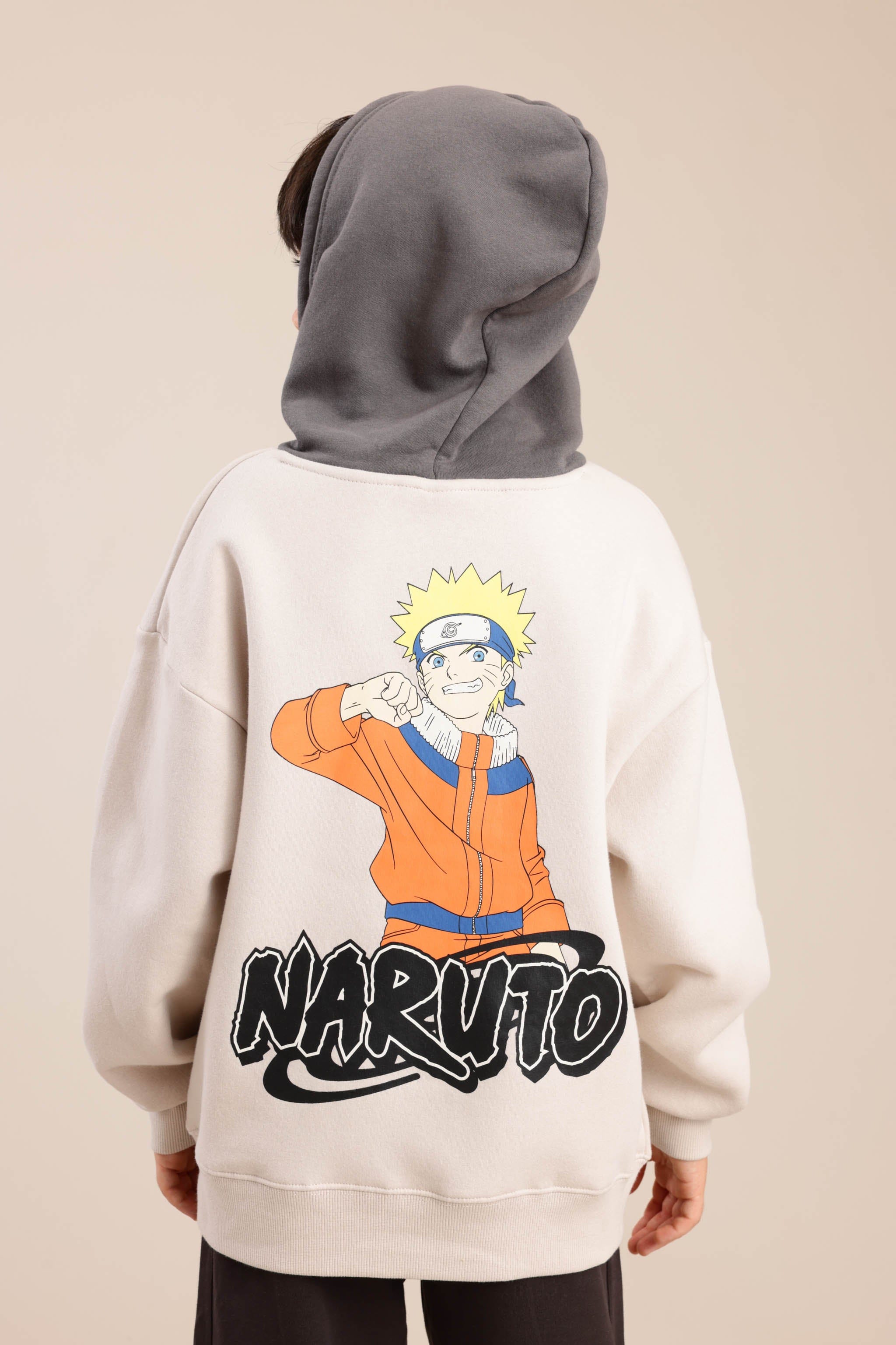 פוטר קפוצ'ון ממותג נארוטו בשילוב צבעים עם הדפס קדמי ואחורי