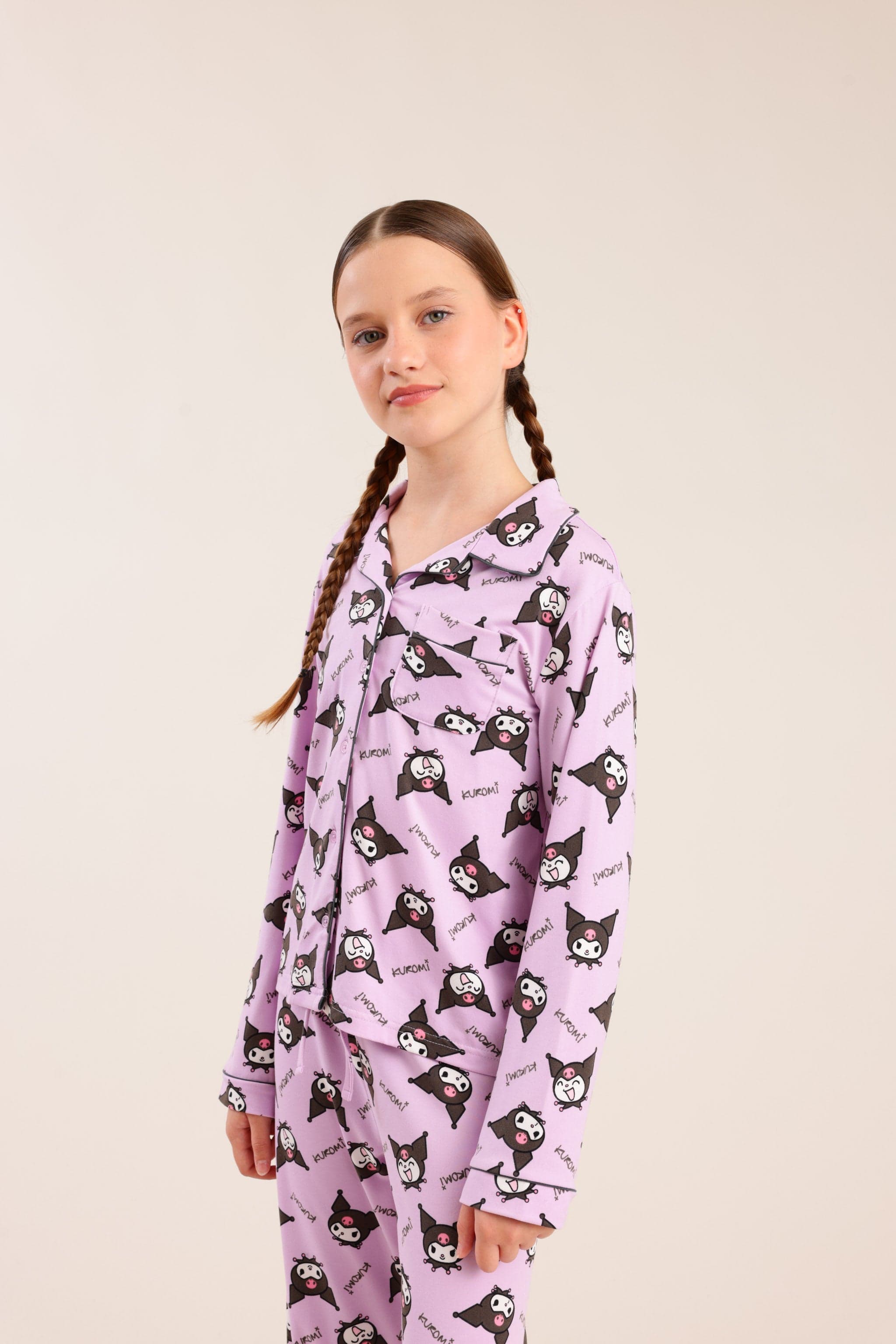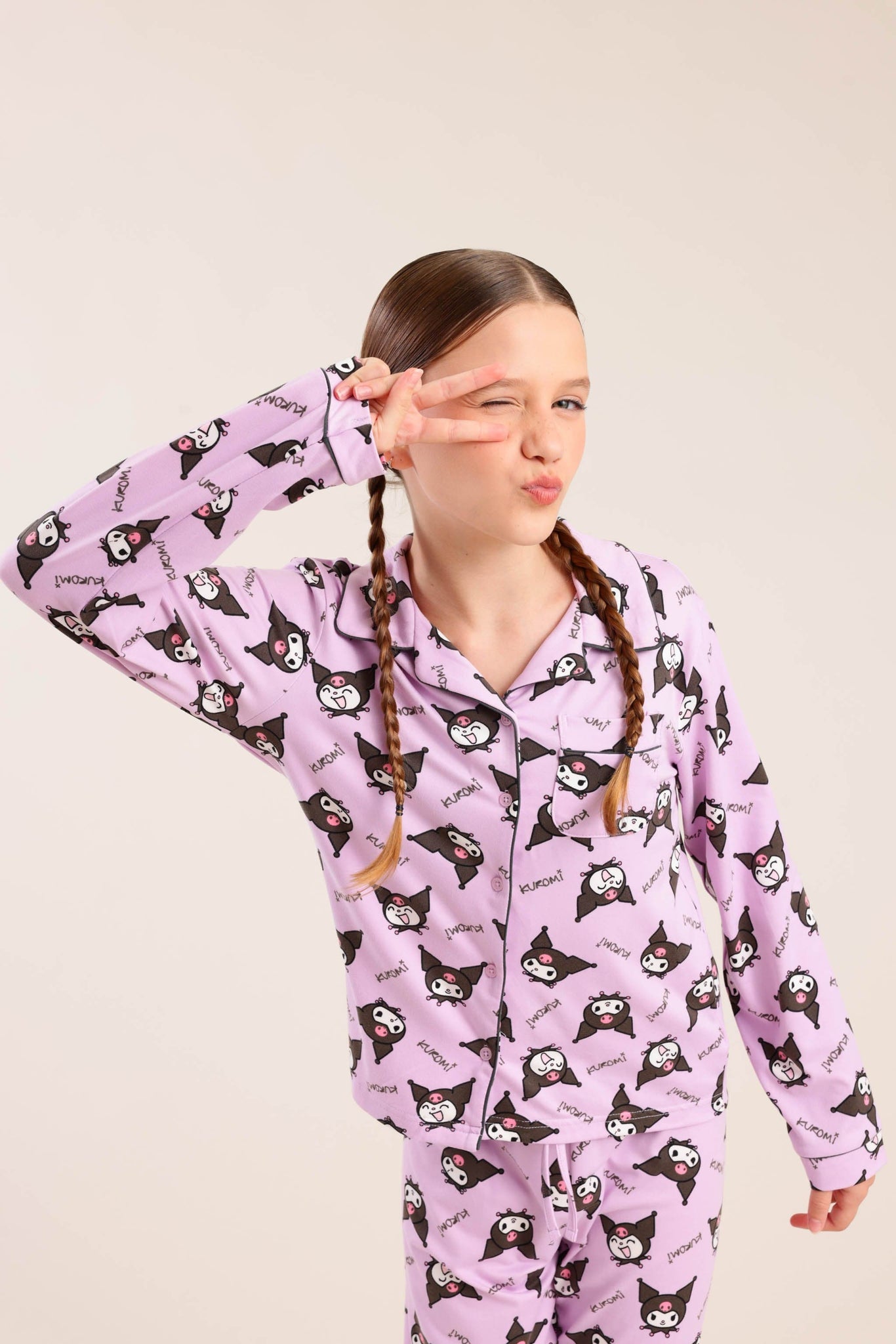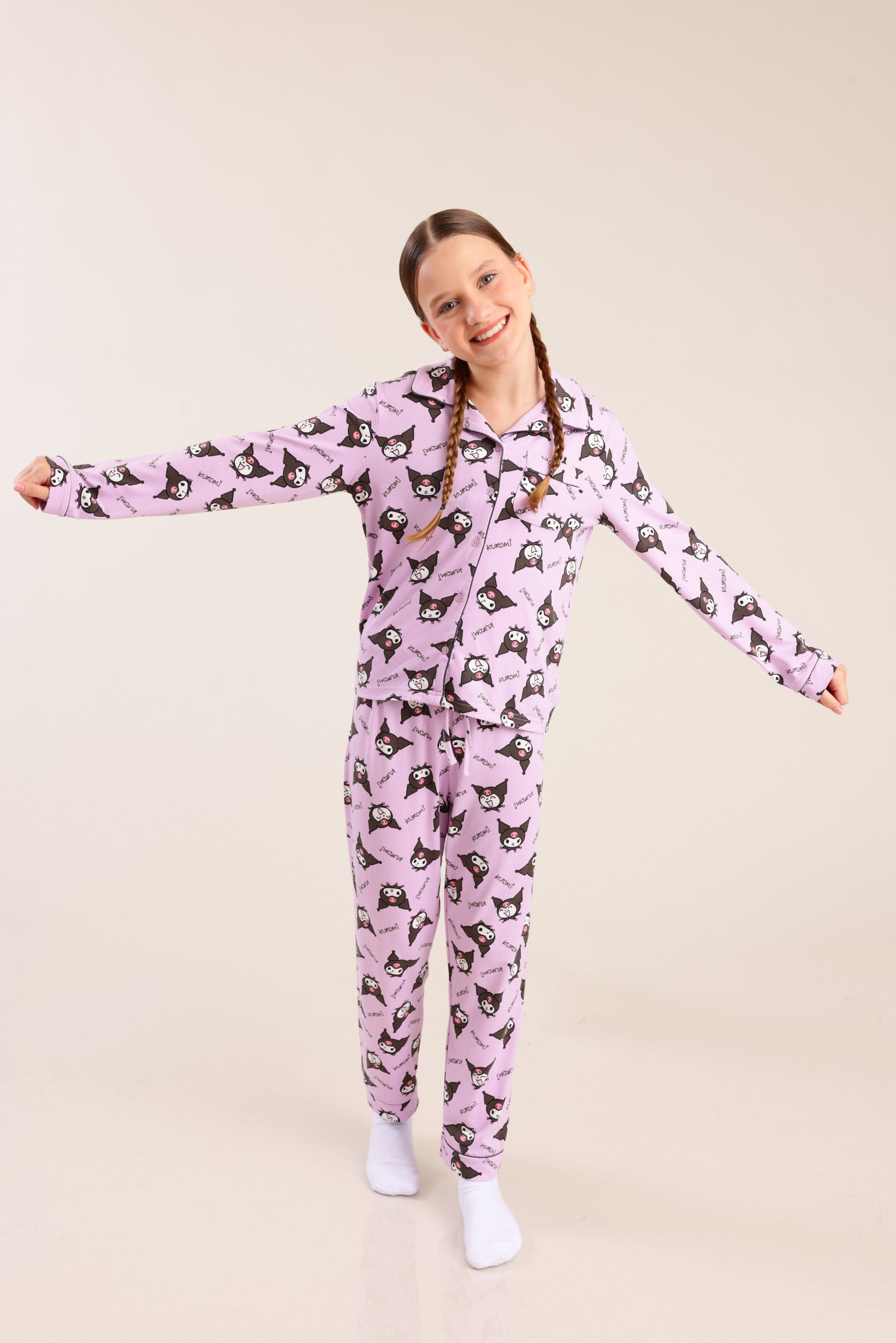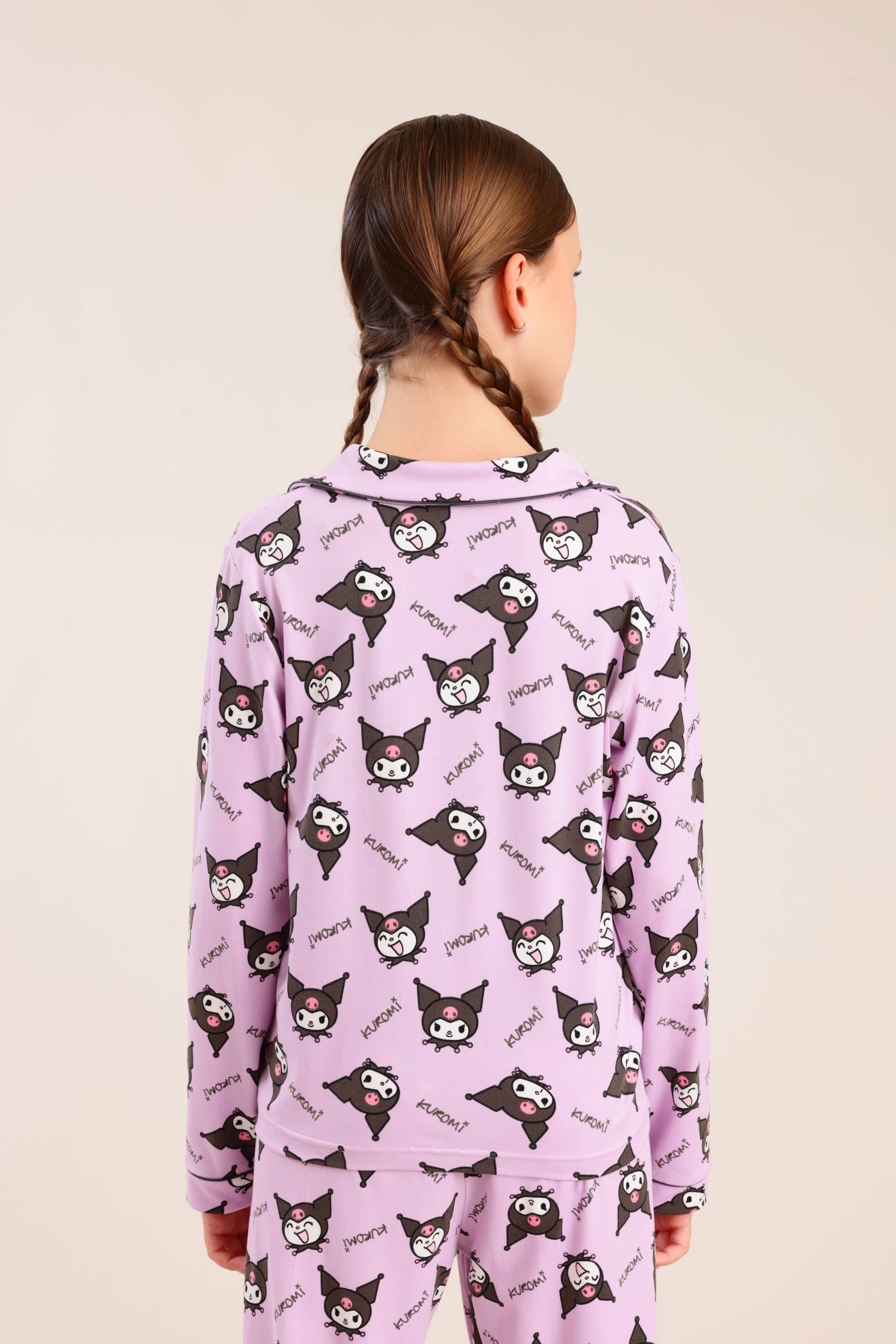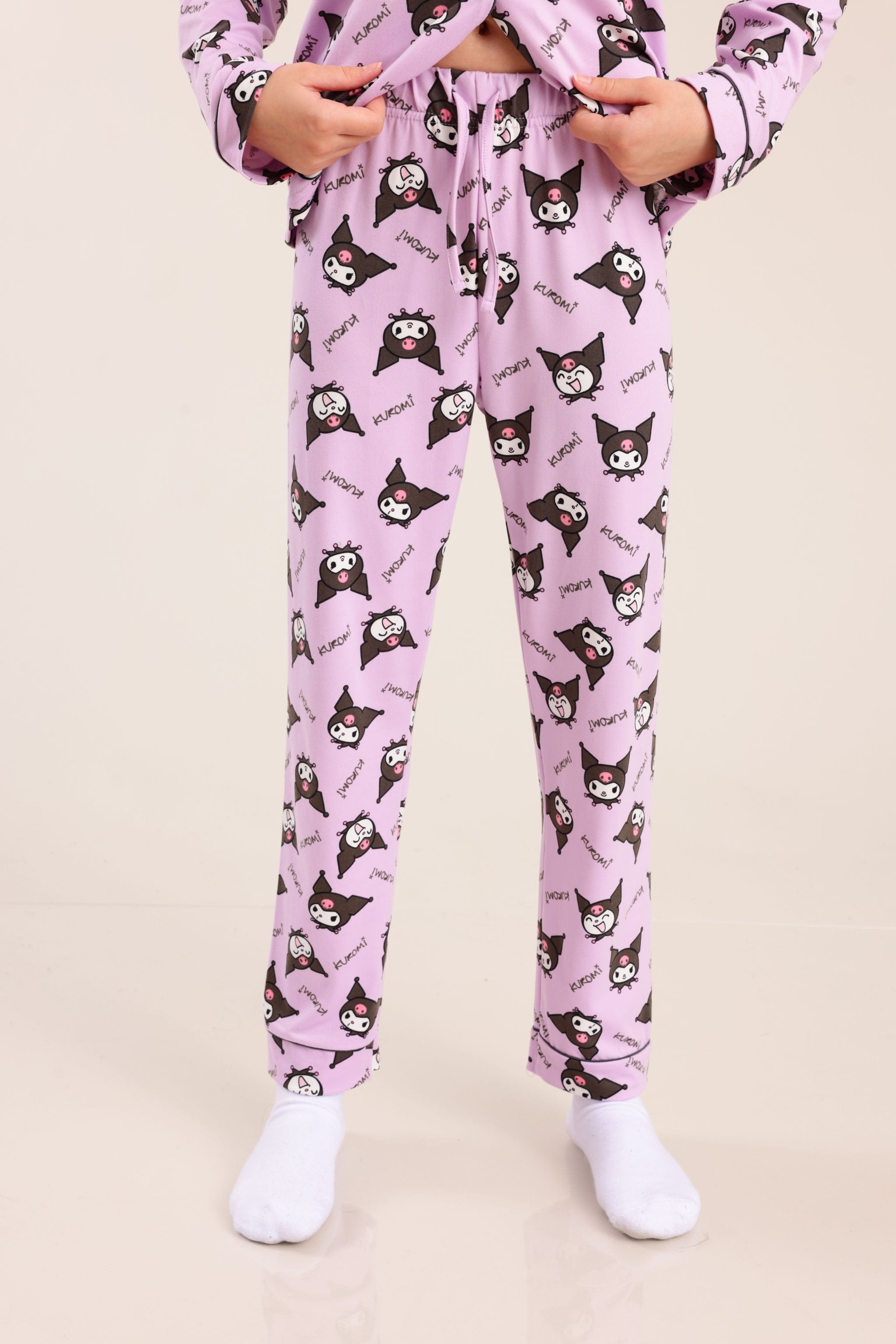 פיג'מה מכופתרת ממותגת הלו קיטי עם הדפסים