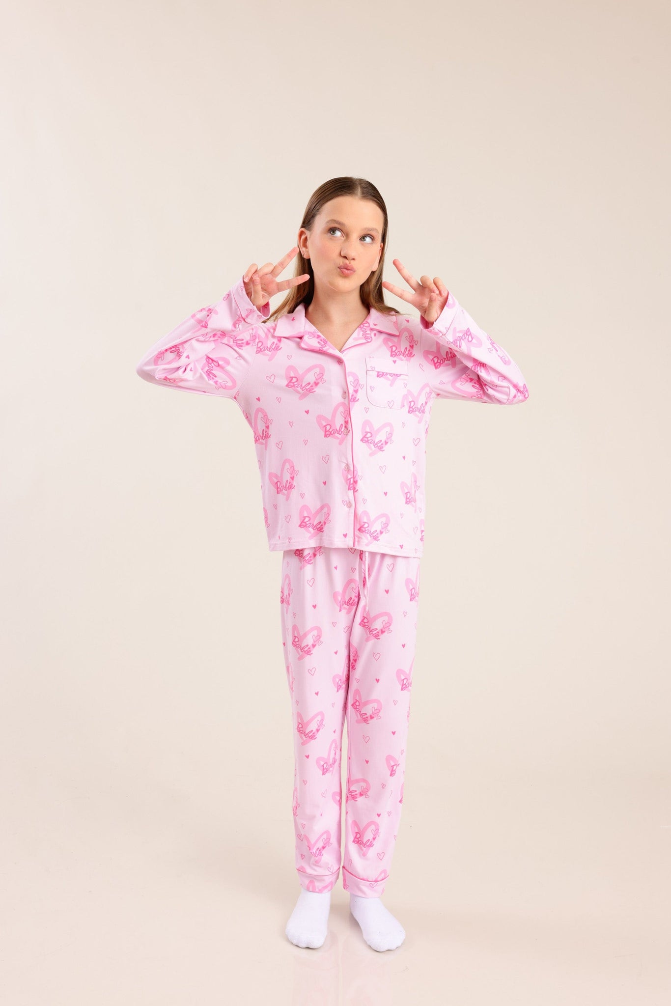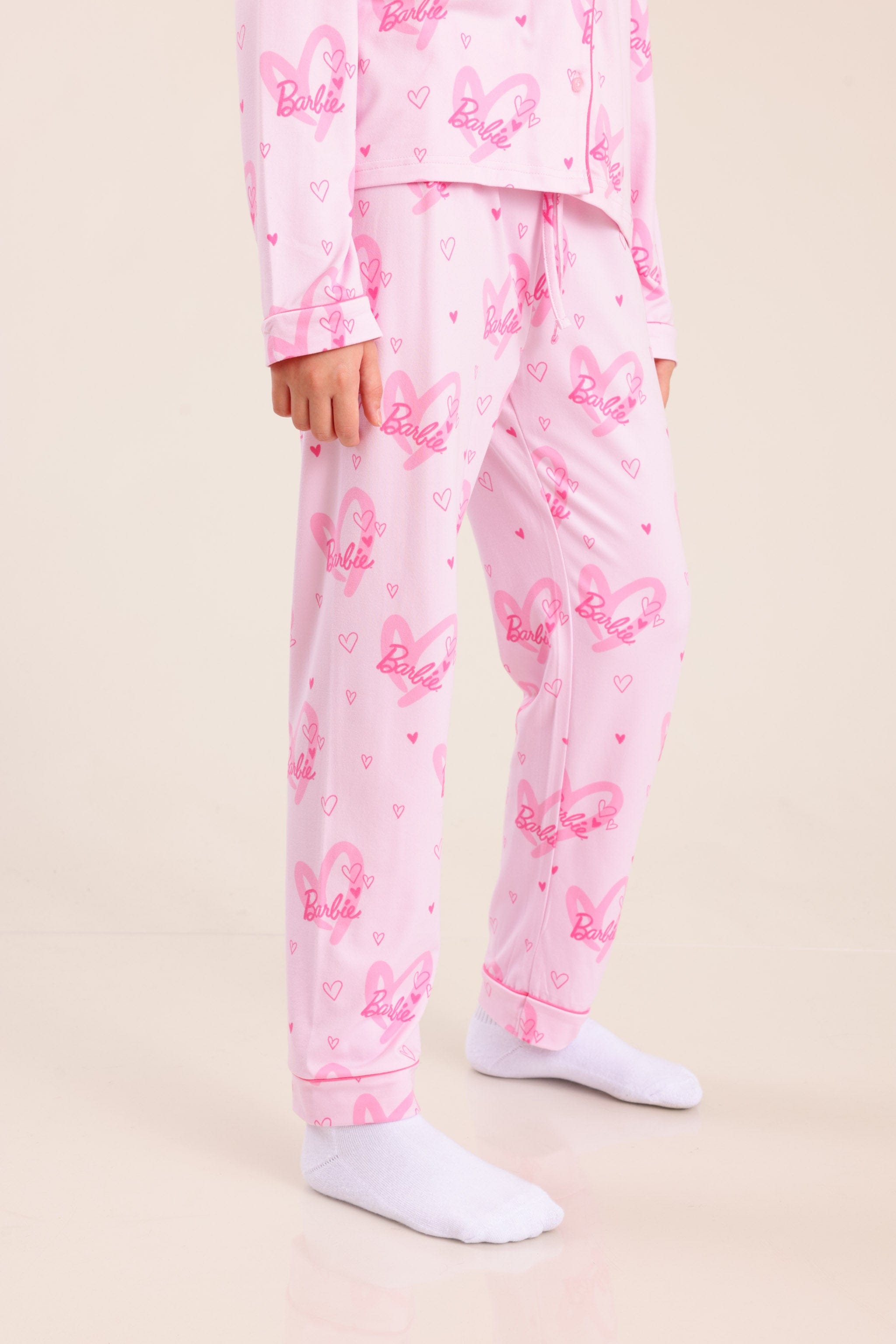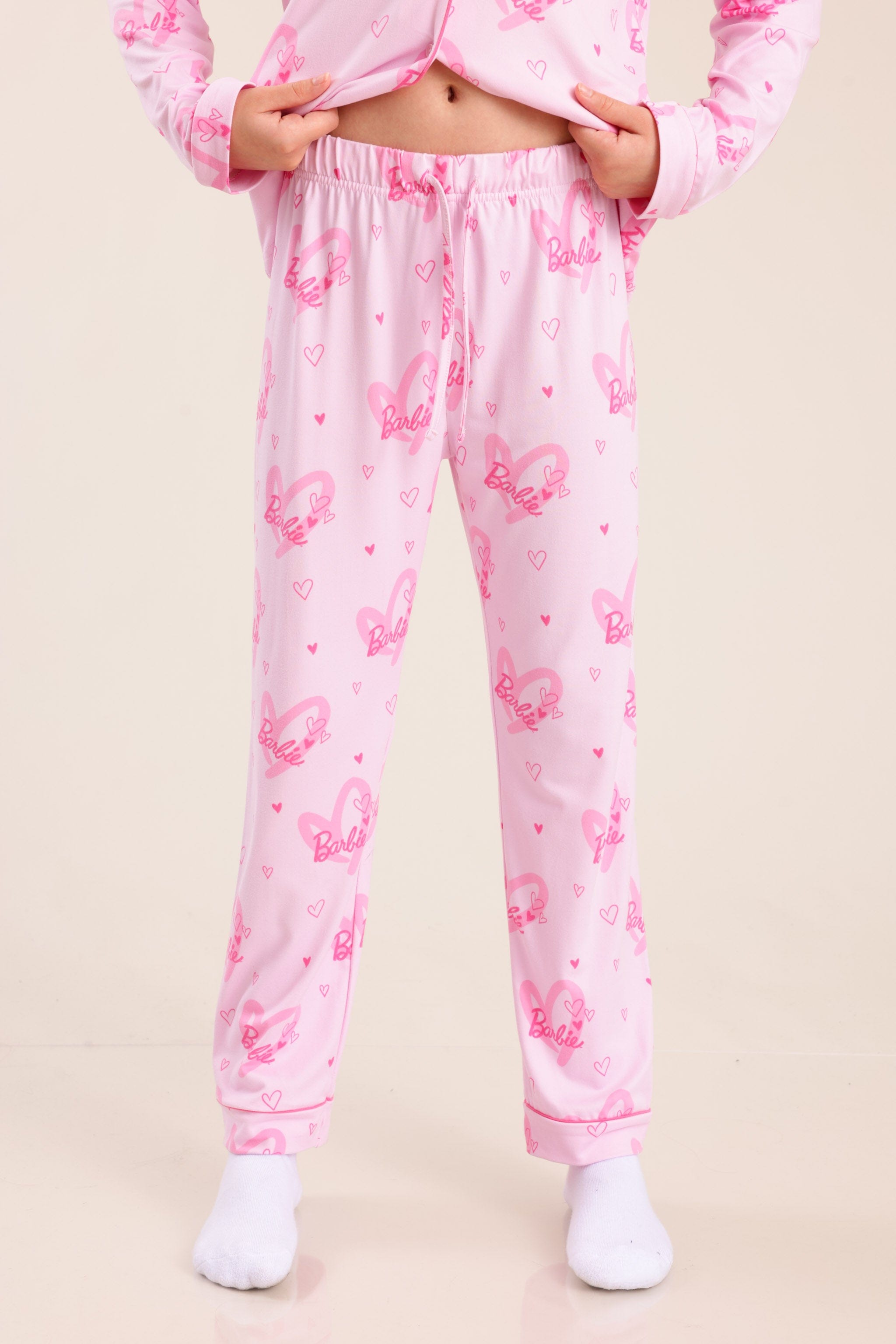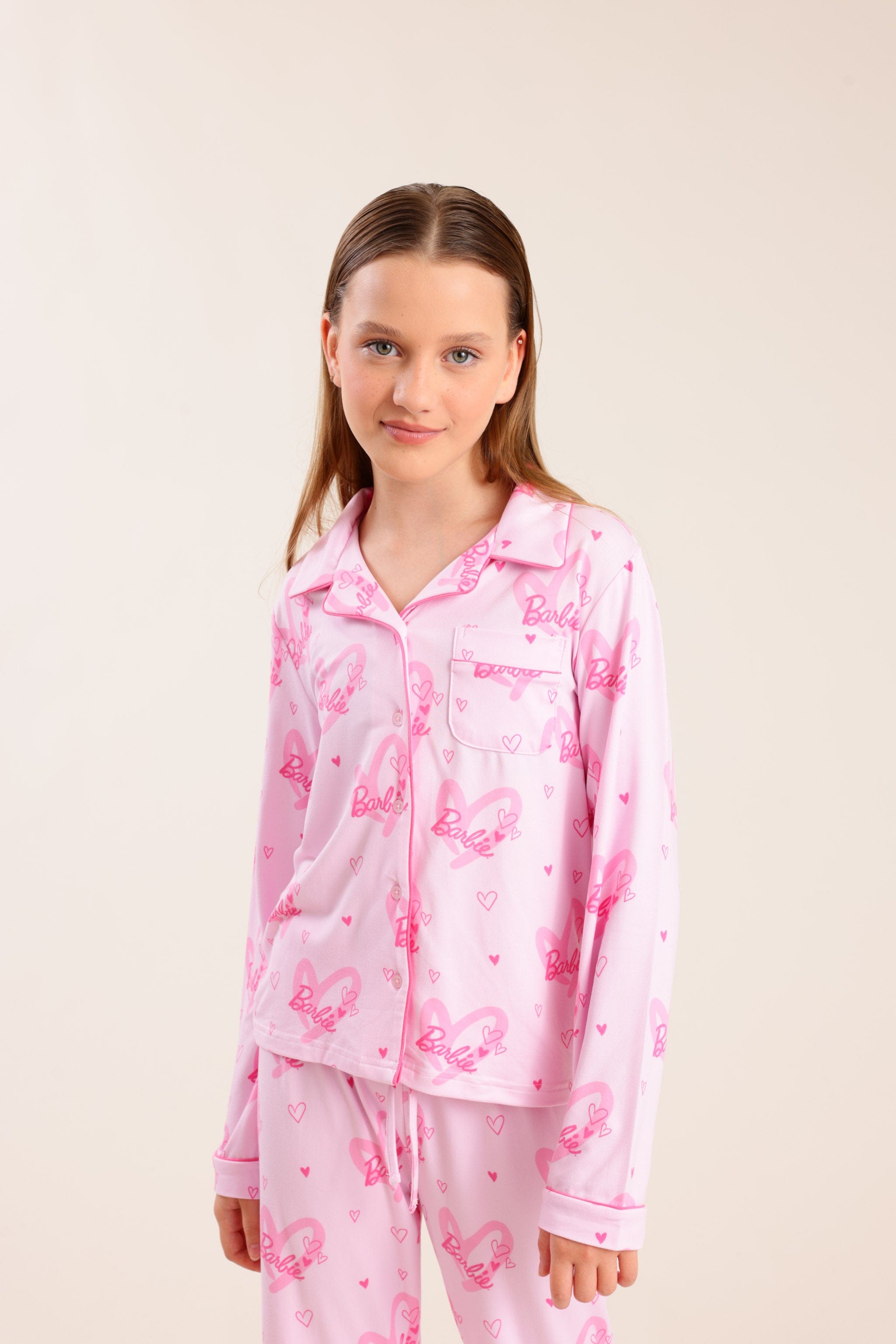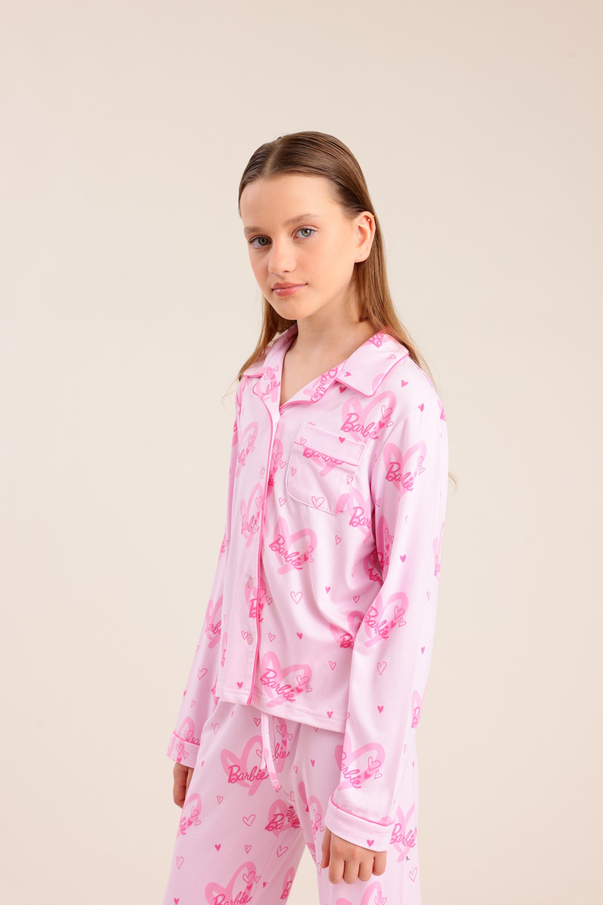 פיג'מה מכופתרת ממותגת ברבי עם הדפסים
