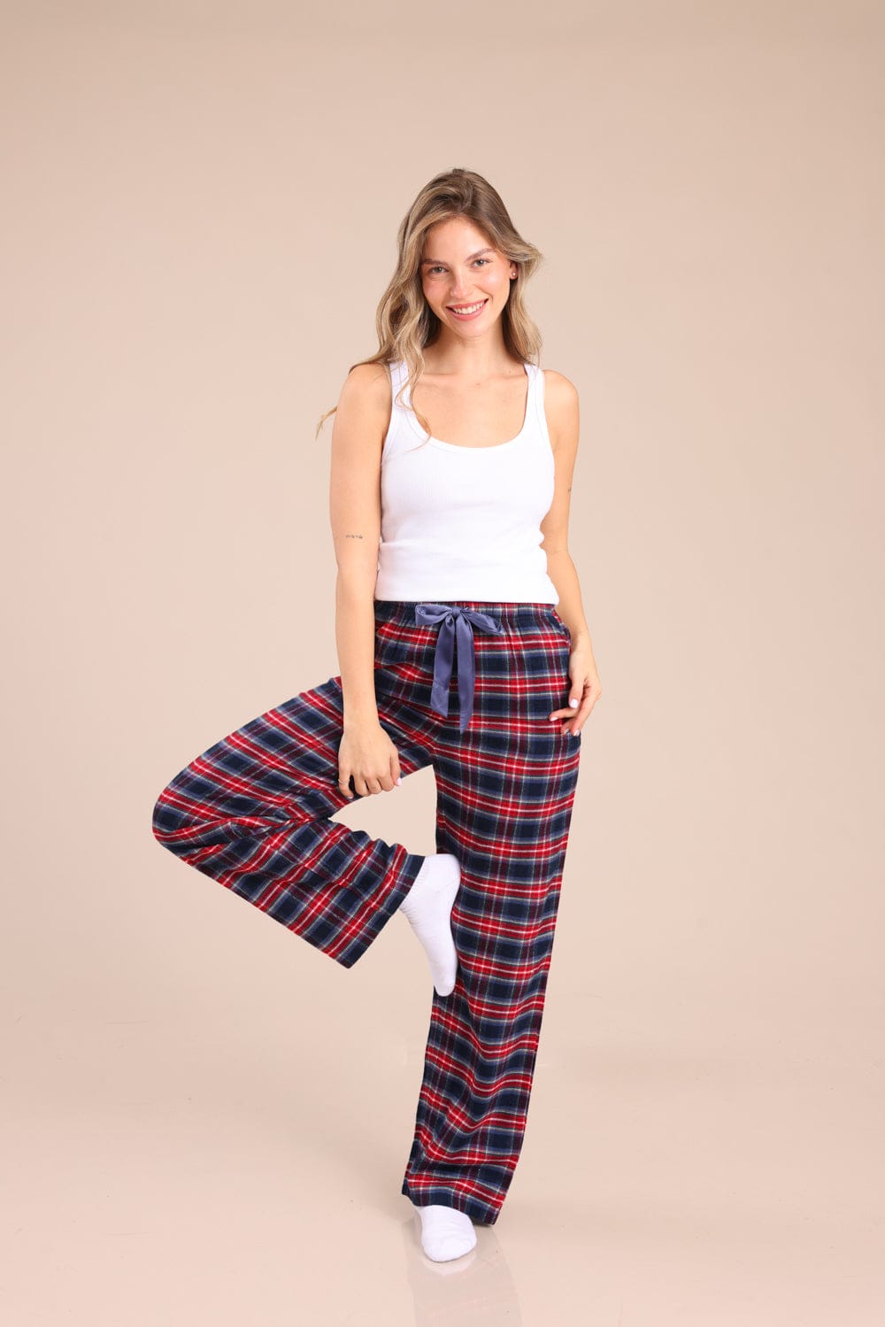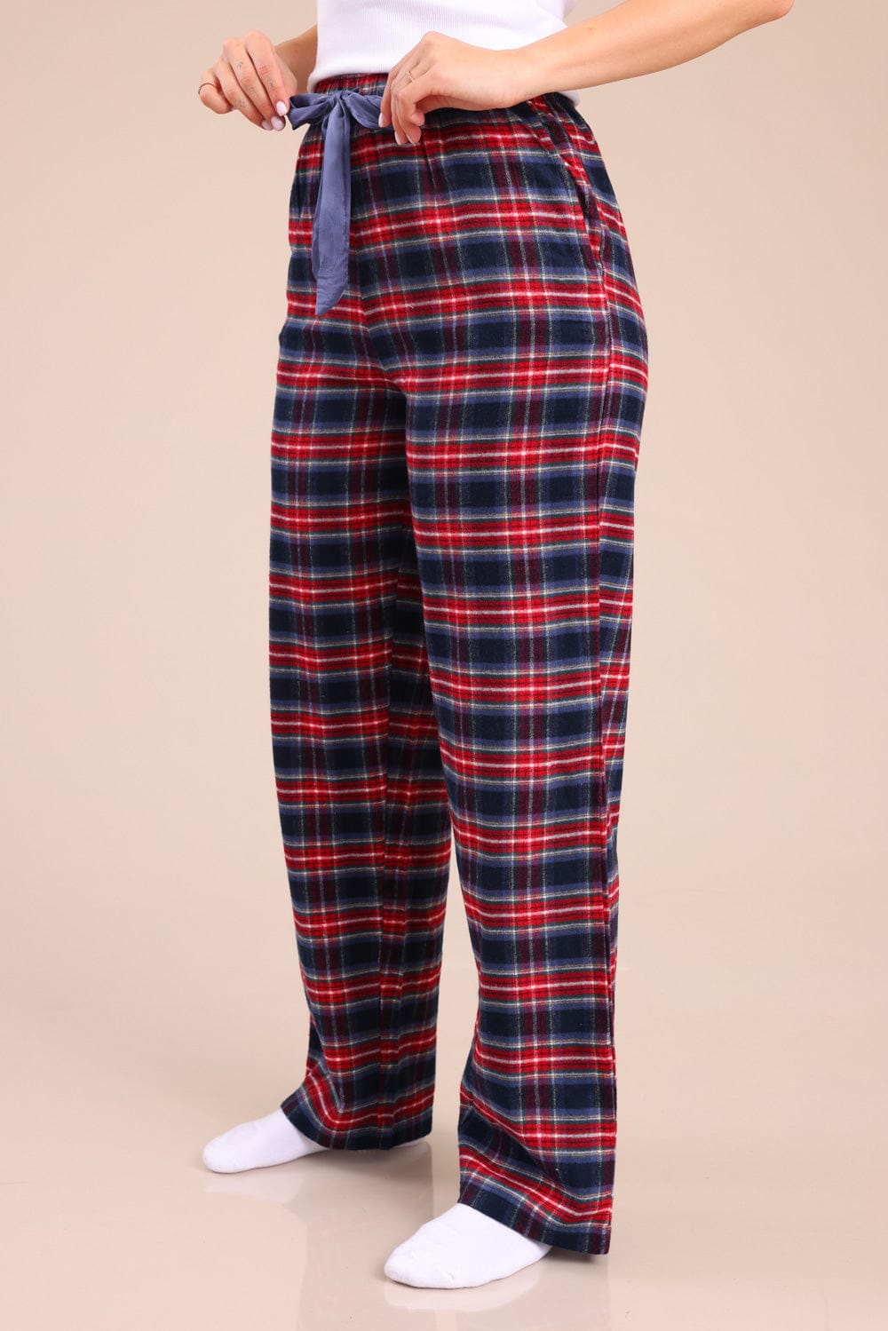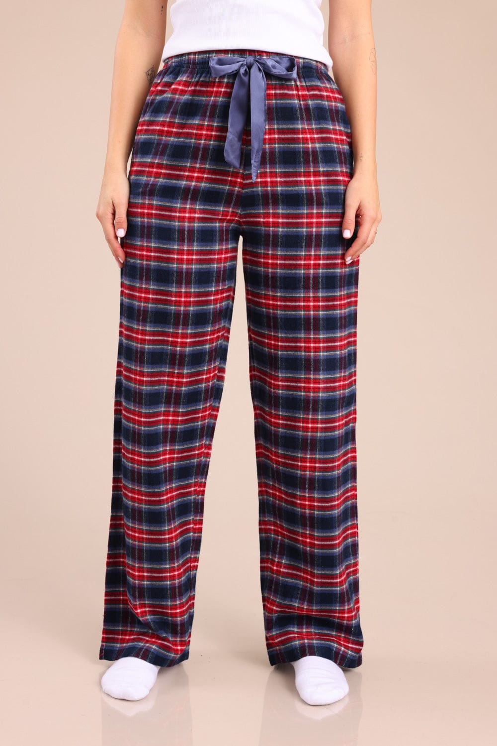 מכנסי פיג'מה משובצים בגזרה משוחררת ונוחה עם פפיון במותן