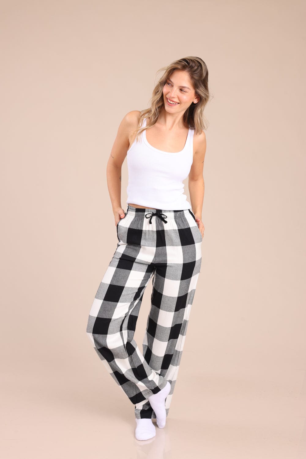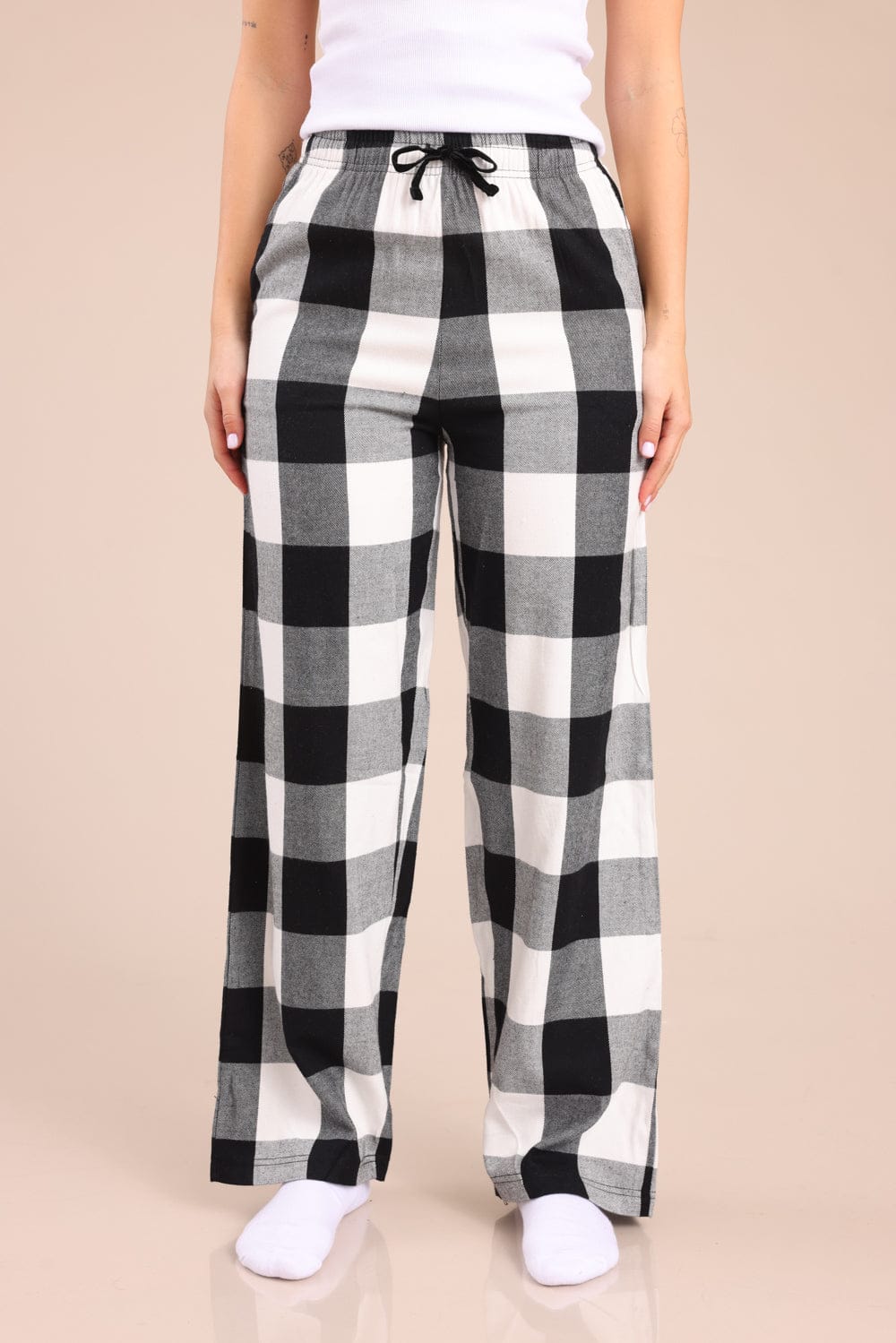 מכנסי פיג'מה משובצים בגזרה קלילה ומשוחררת