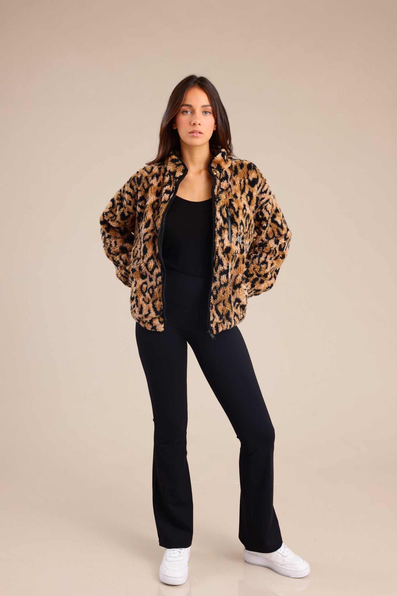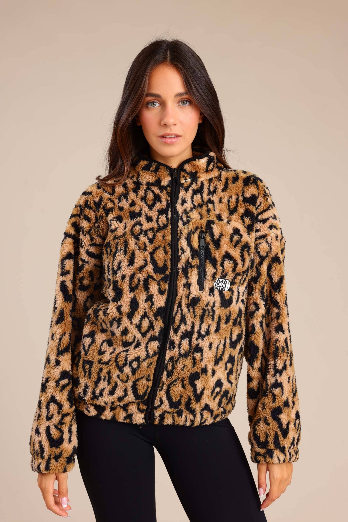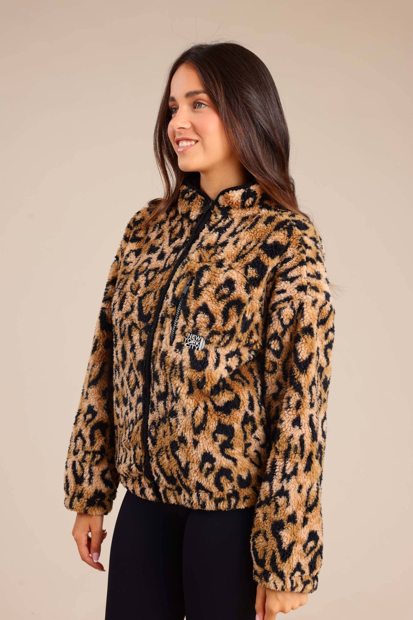 קרדיגן שרלינג משובץ מחמם עם רוכסן
