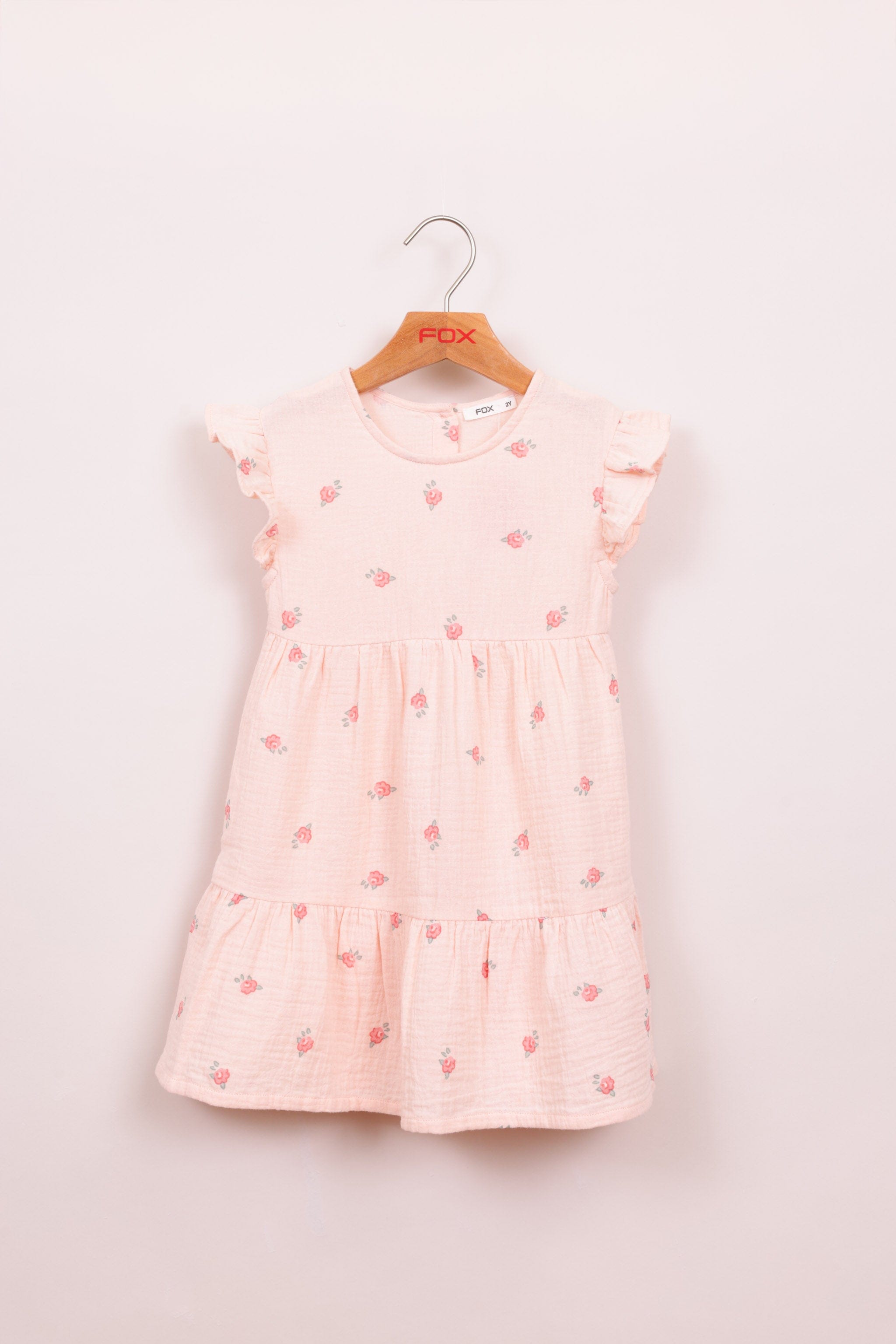 שמלת בנות פרחונית עם סגירת כפתורים בגב, שרוולים עם סיומת מלמלה.