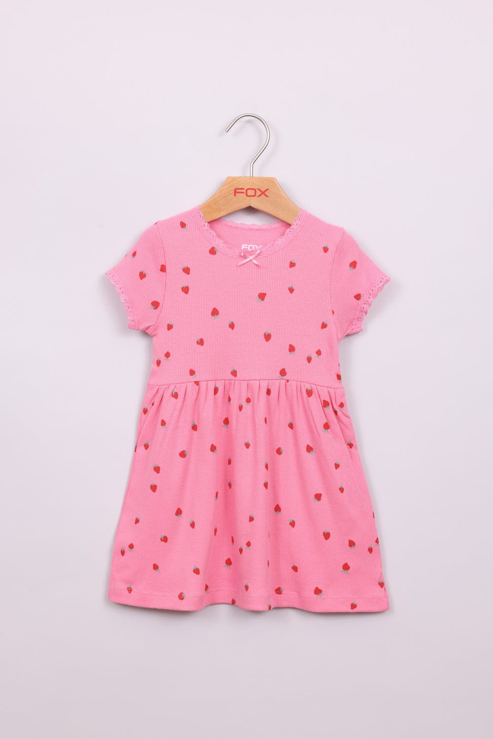שמלה קצרה עם שרוולים והדפס תותים