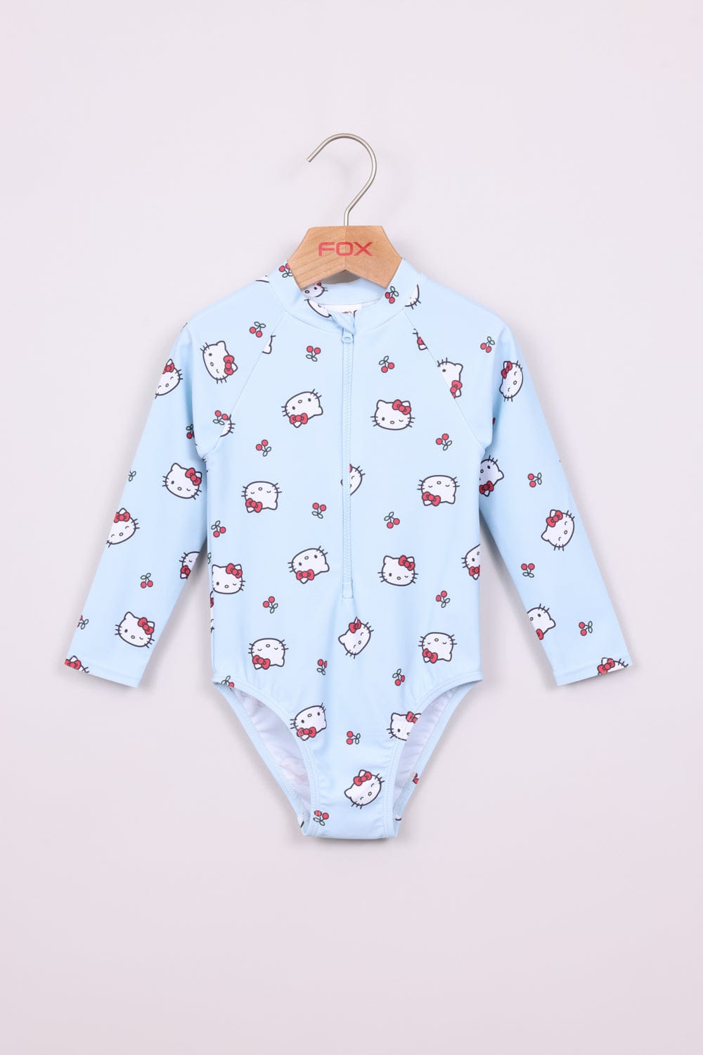 בגד ים שלם ממותג הלו קיטי , עם רוכסן קדמי והדפסים