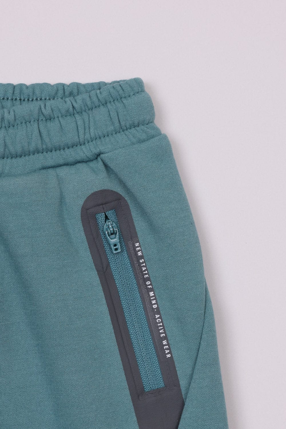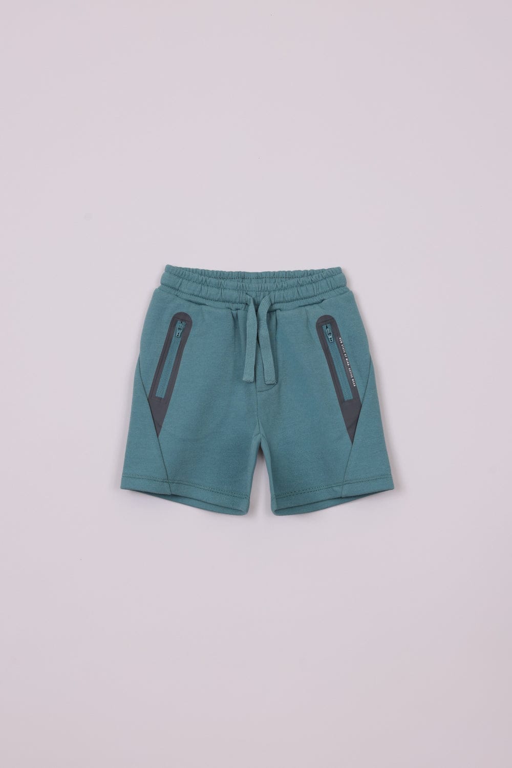 מכנסי פוטר קצרים עם גומי במותן , כיסים ורוכסנים מודגשים