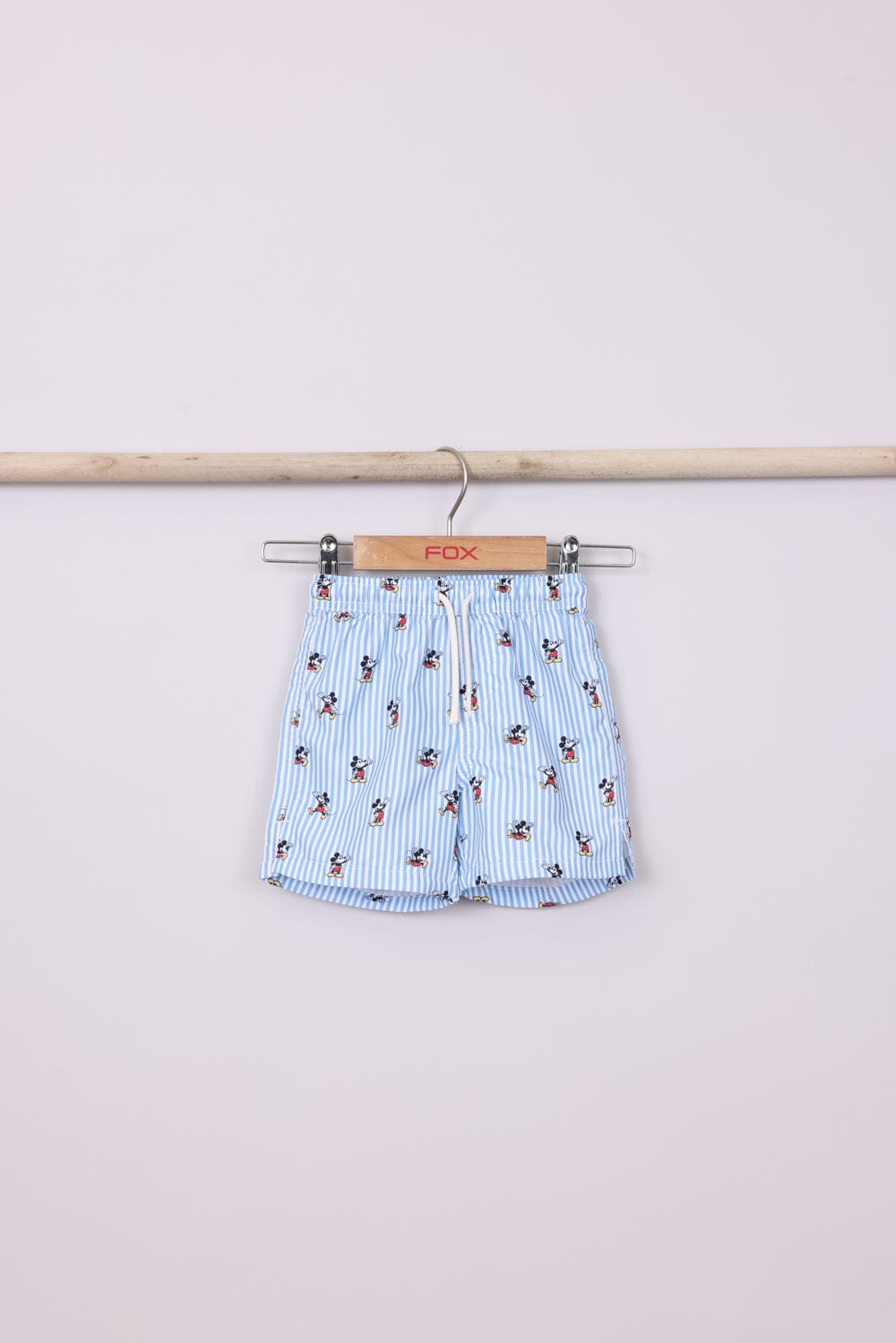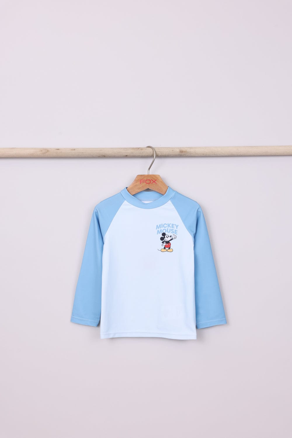 בגד ים שני חלקים מיקי מאוס דיסני, שורט עם הדפסים וחולצה ארוכה בשילוב צבעים עם הדפס קדמי