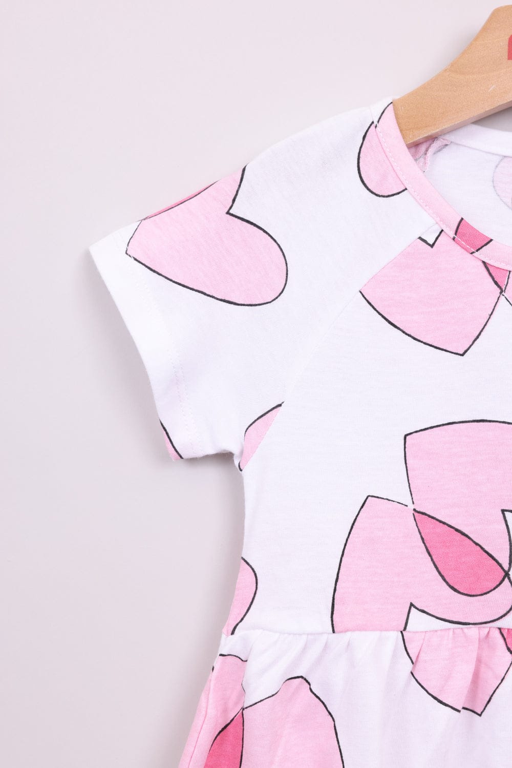 שמלת ריב שרוול קצר עם הדפס לבבות.