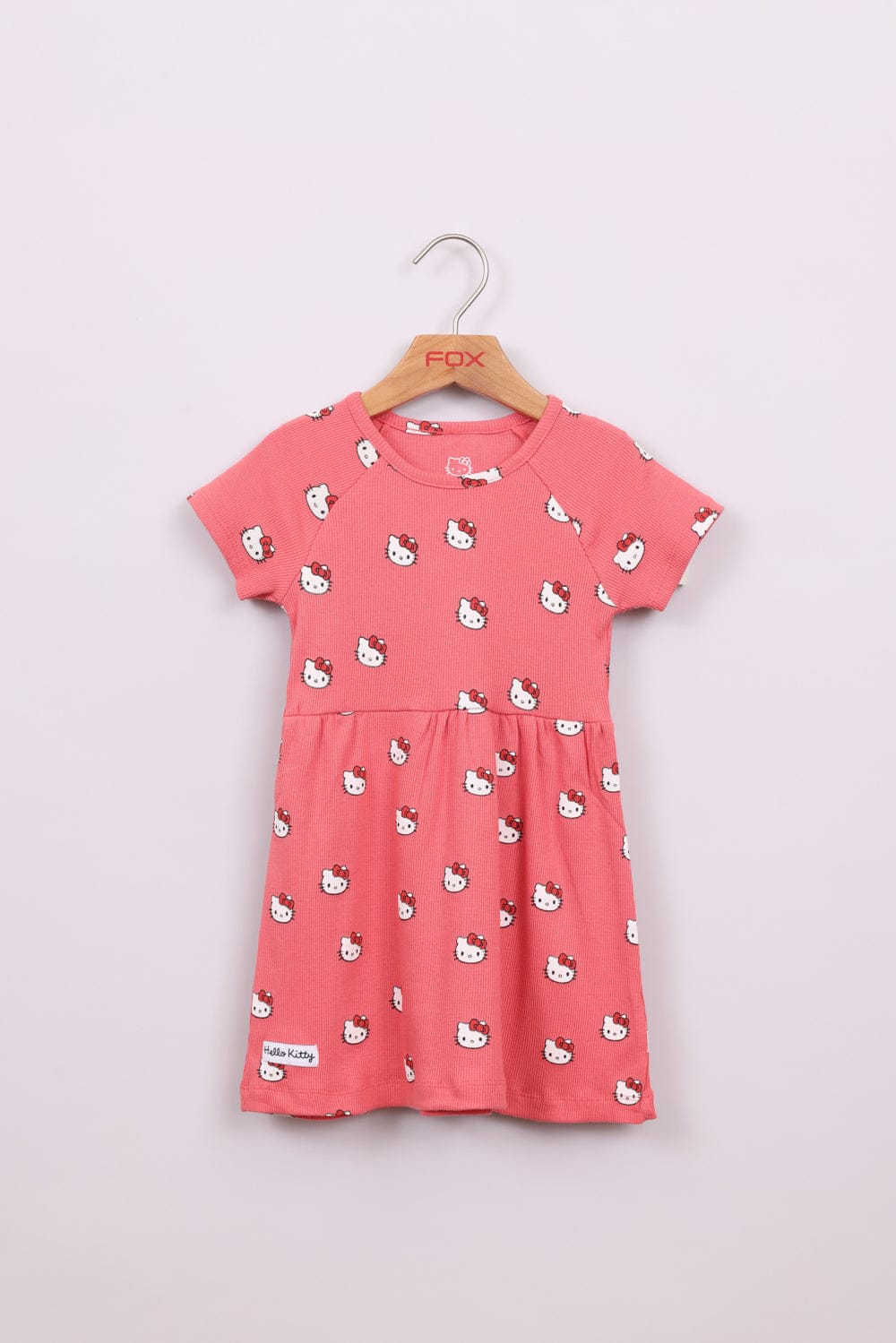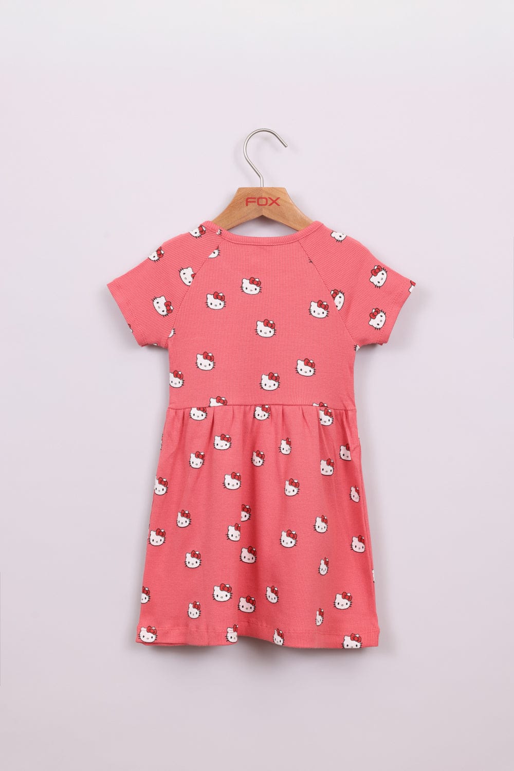 שמלה עם שרוול קצר והדפסים הלו קיטי.