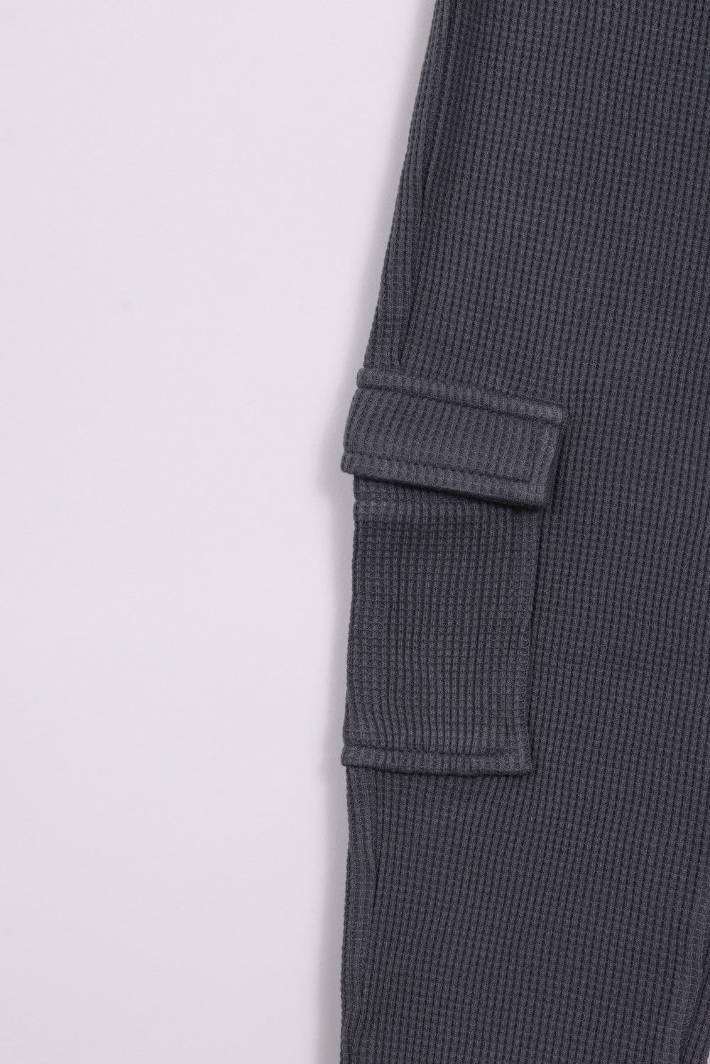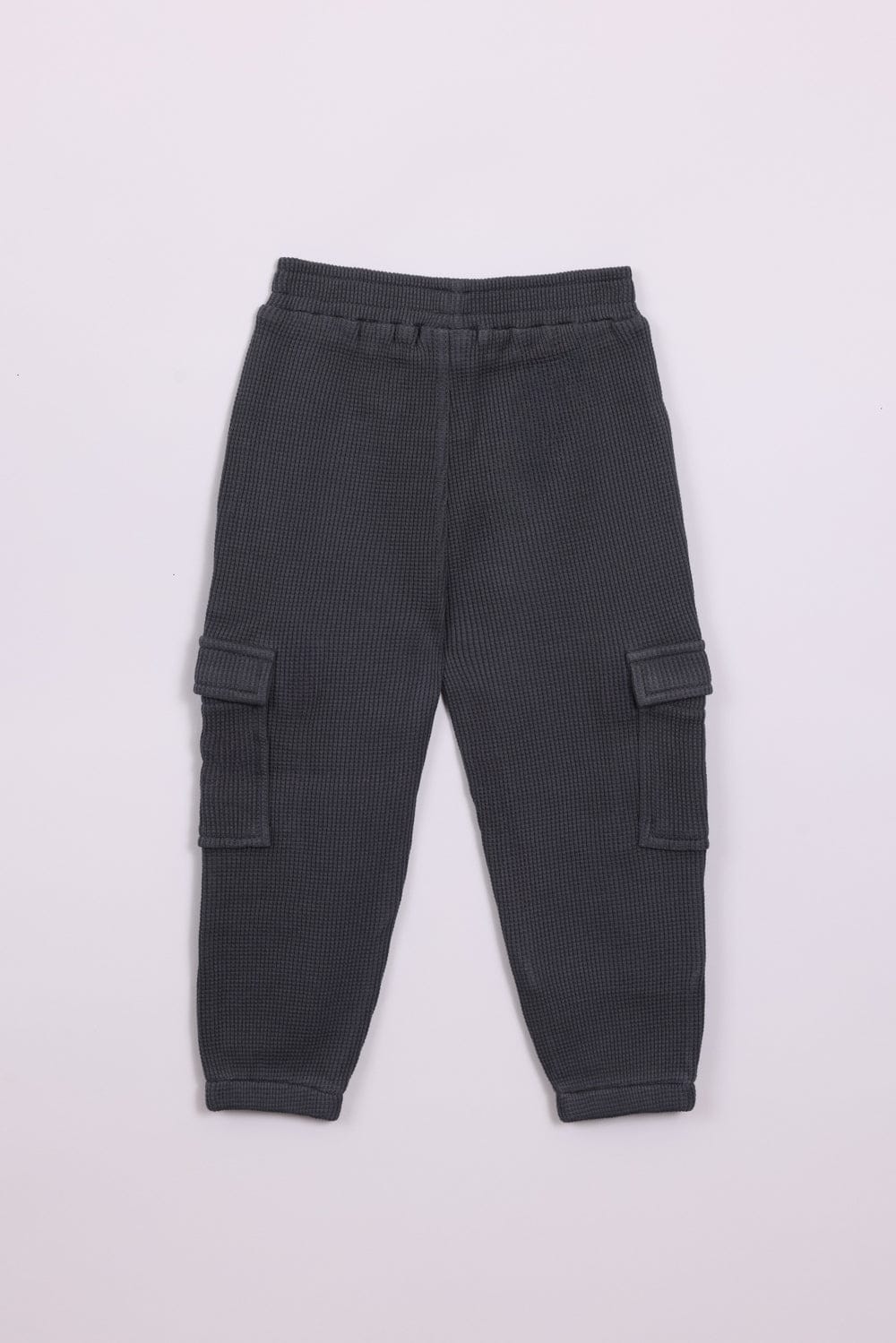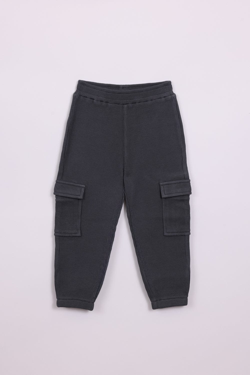 מכנסי טריקו 100% כותנה מבד וופל, עם כיסים צדדיים וגומי במותן וברגליים.