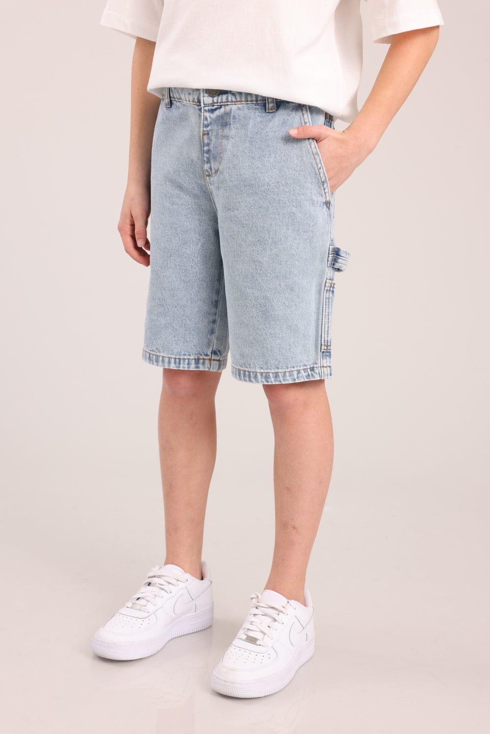 ג'ינס ברמודה אוברסייז עם כיסים.