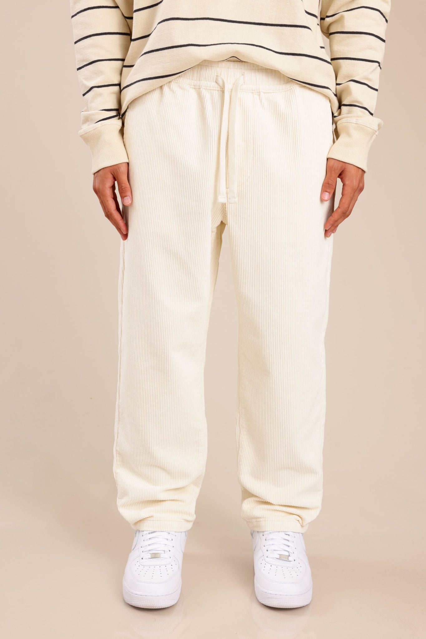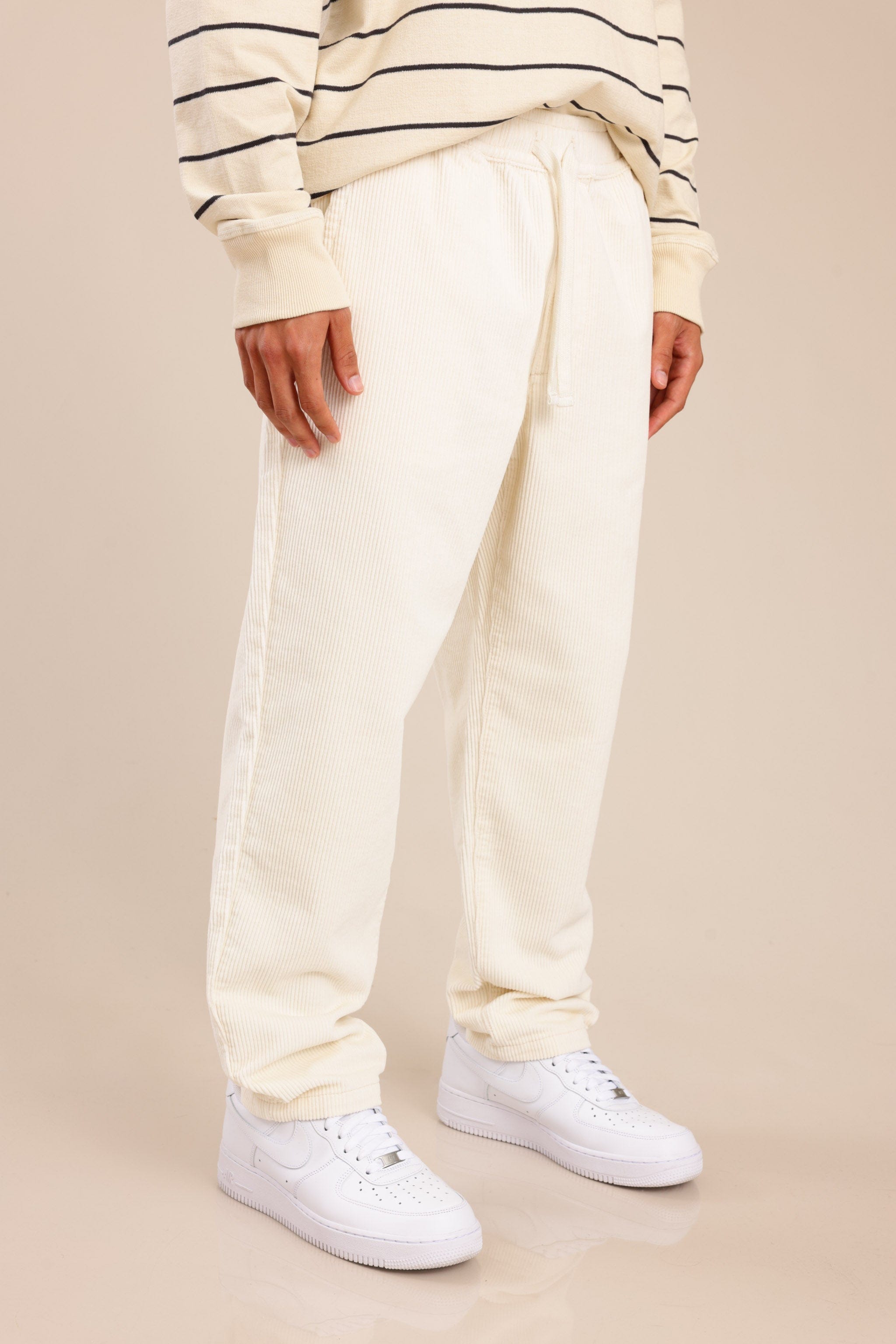 מכנסי אריג משוחררים עם כיסים קדמיים ואחוריים