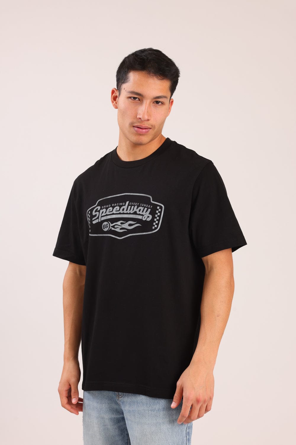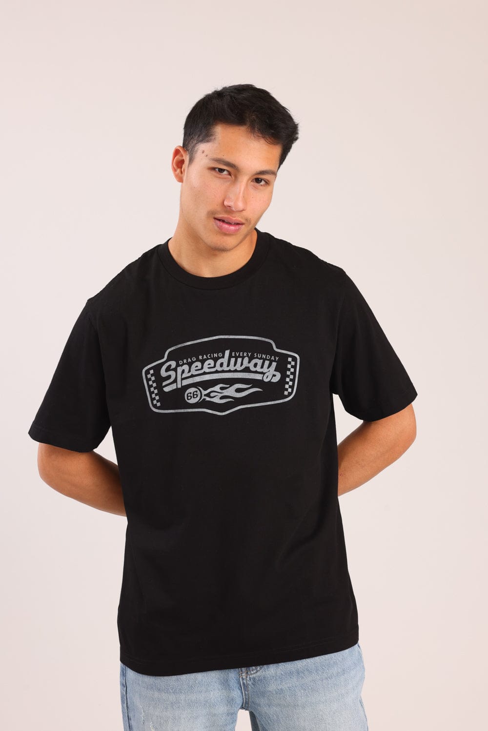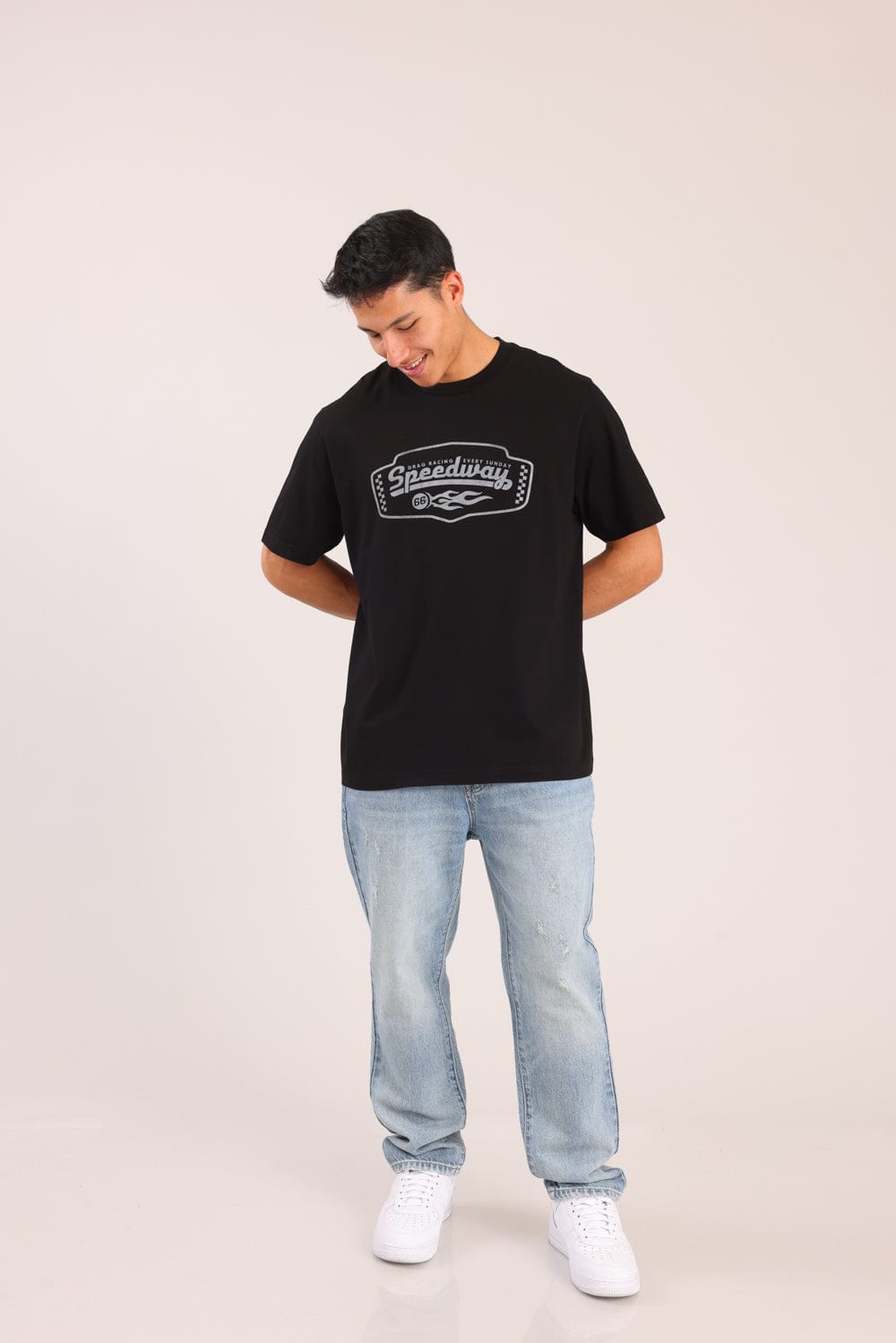 חולצת טריקו קצרה, צווארון עגול עם הדפס קדמי.