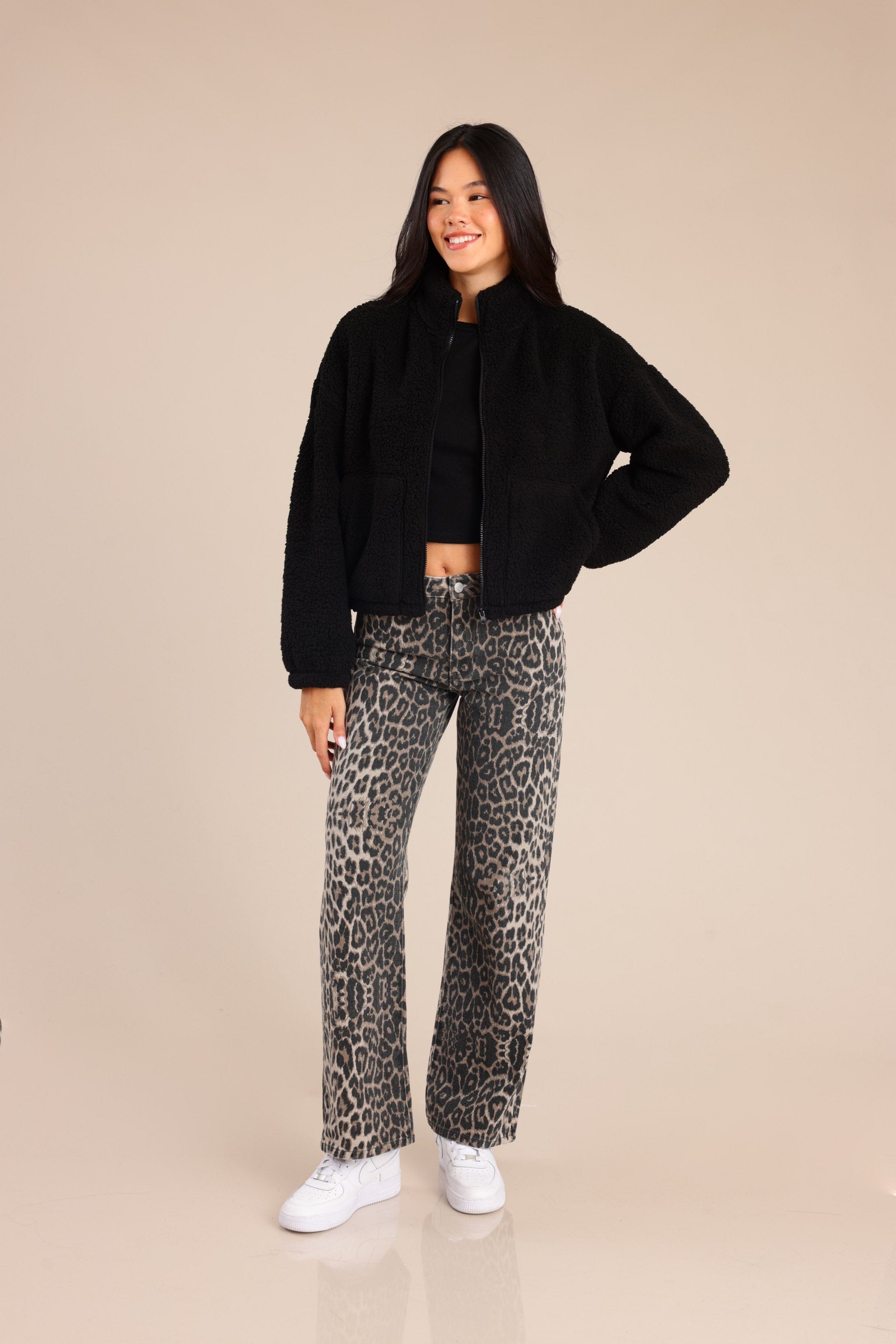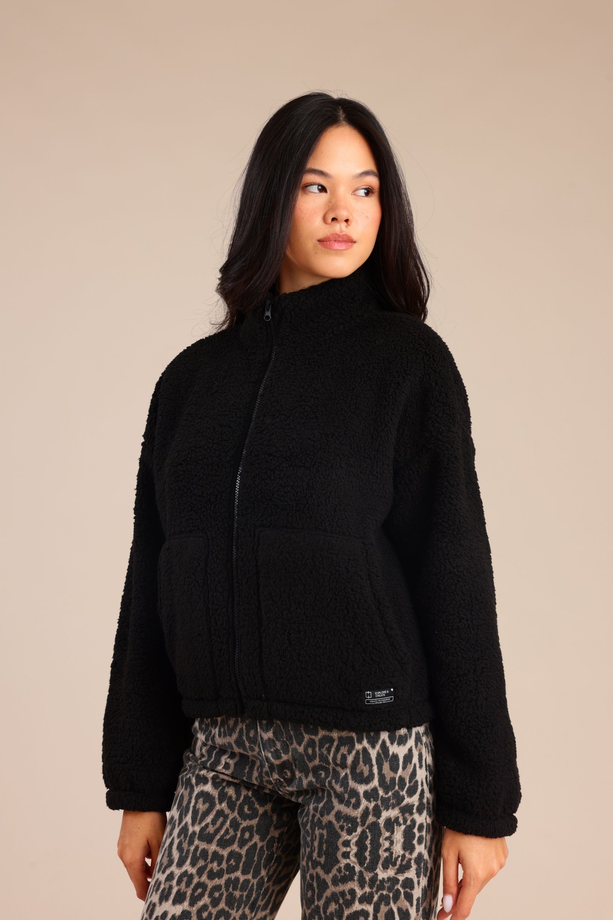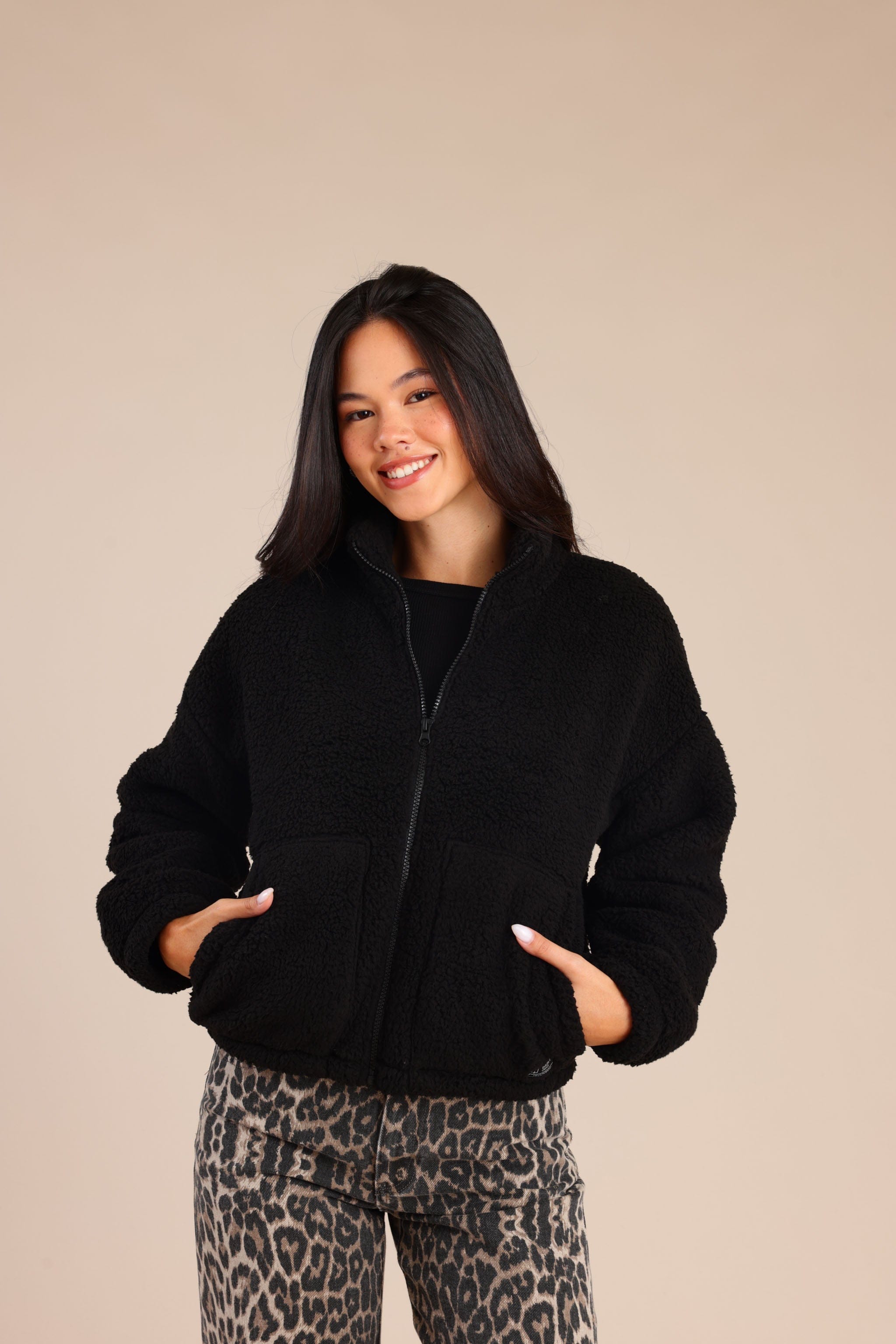 קרדיגן פרווה מחמם עם כיסים קדמיים ורוכסן
