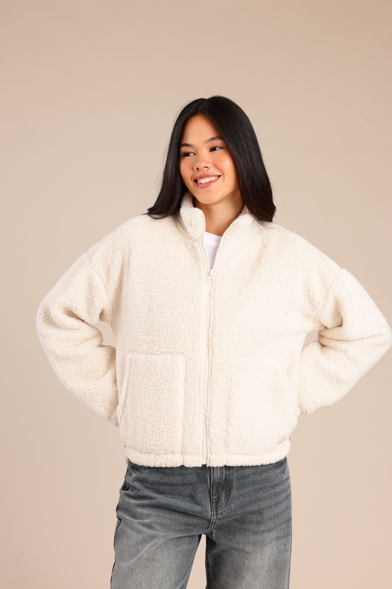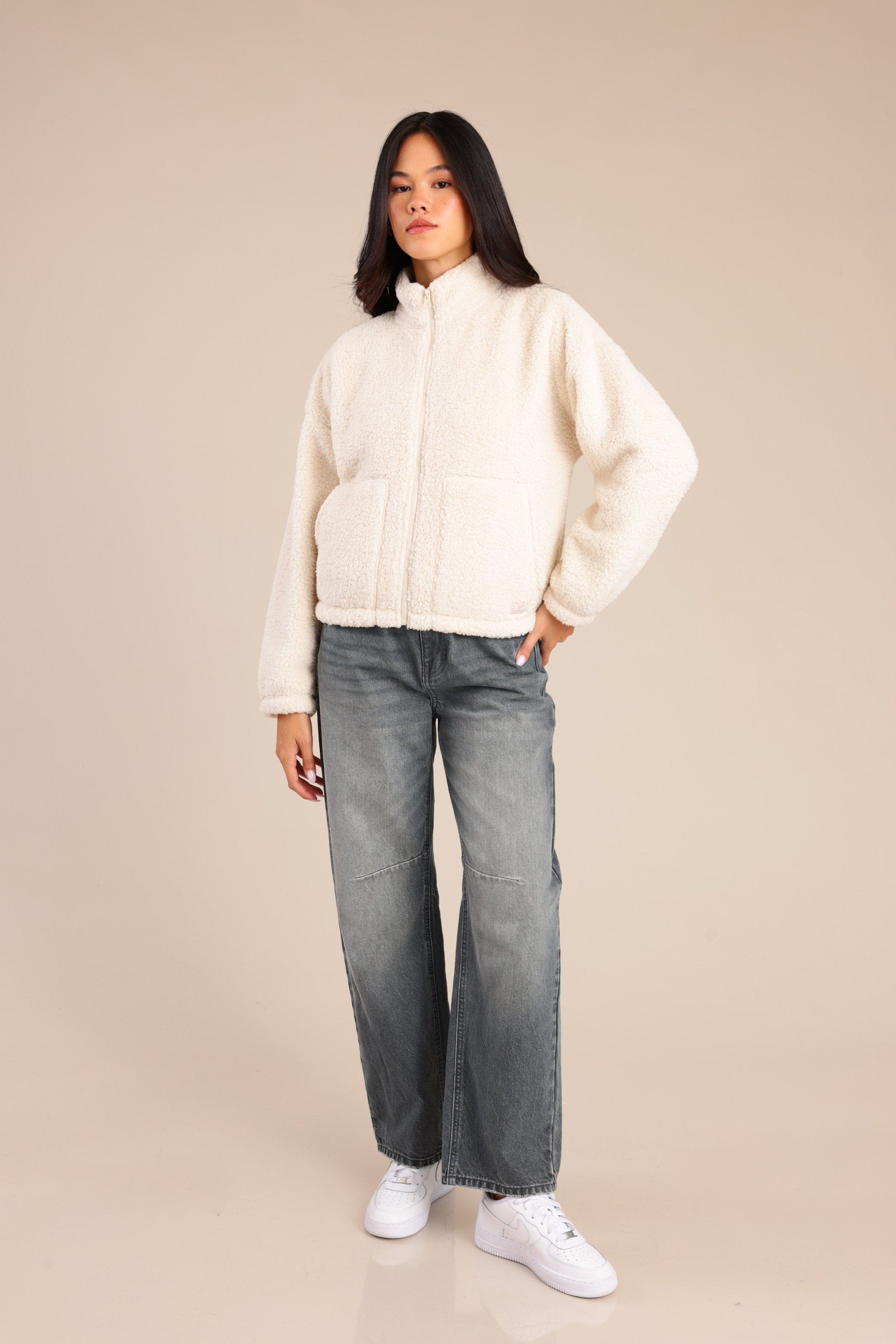 קרדיגן פרווה מחמם עם כיסים קדמיים ורוכסן
