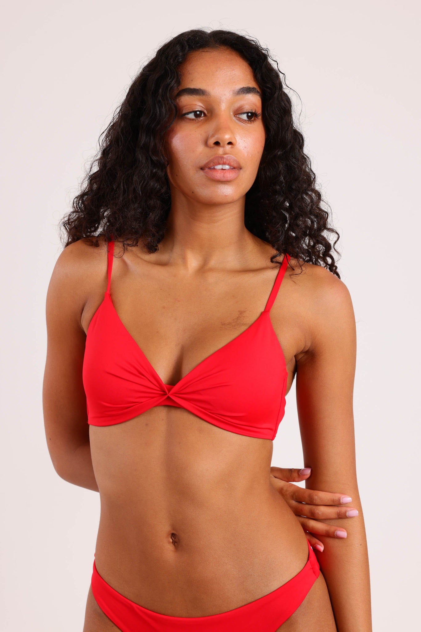 חזיית בגד ים נשים בצורת מעטפת משולשים , עם כתפיות הניתנות להקטנה והגדלה.