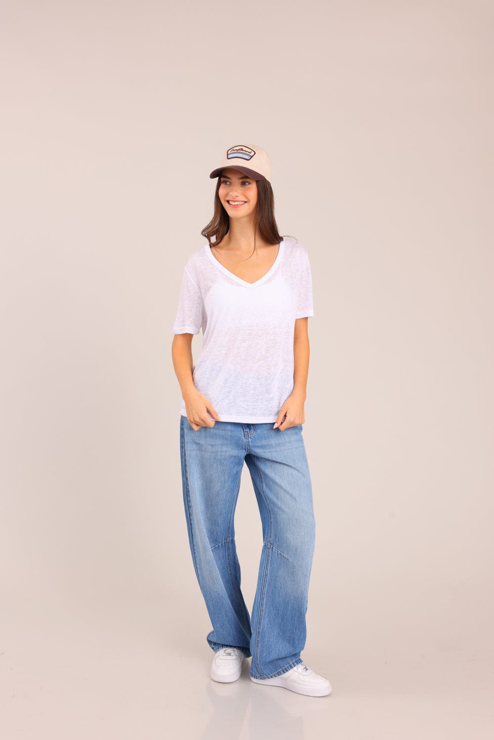 FOX נשים חולצה קצרה חולצת V אוברסייז חולצת V אוברסייז