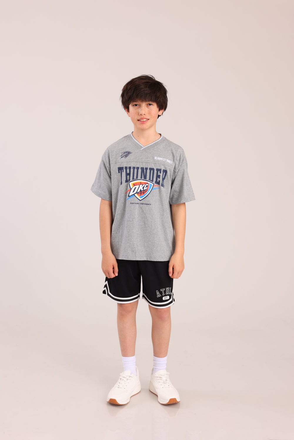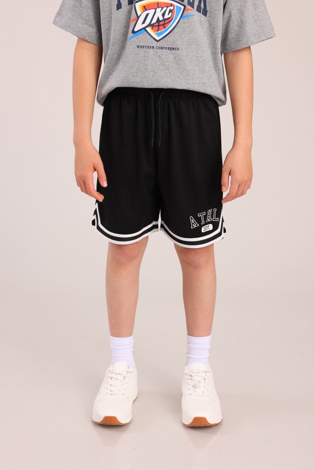 מכנסי כדורסל, גומי ושרוך במותן והדפס קדמי.