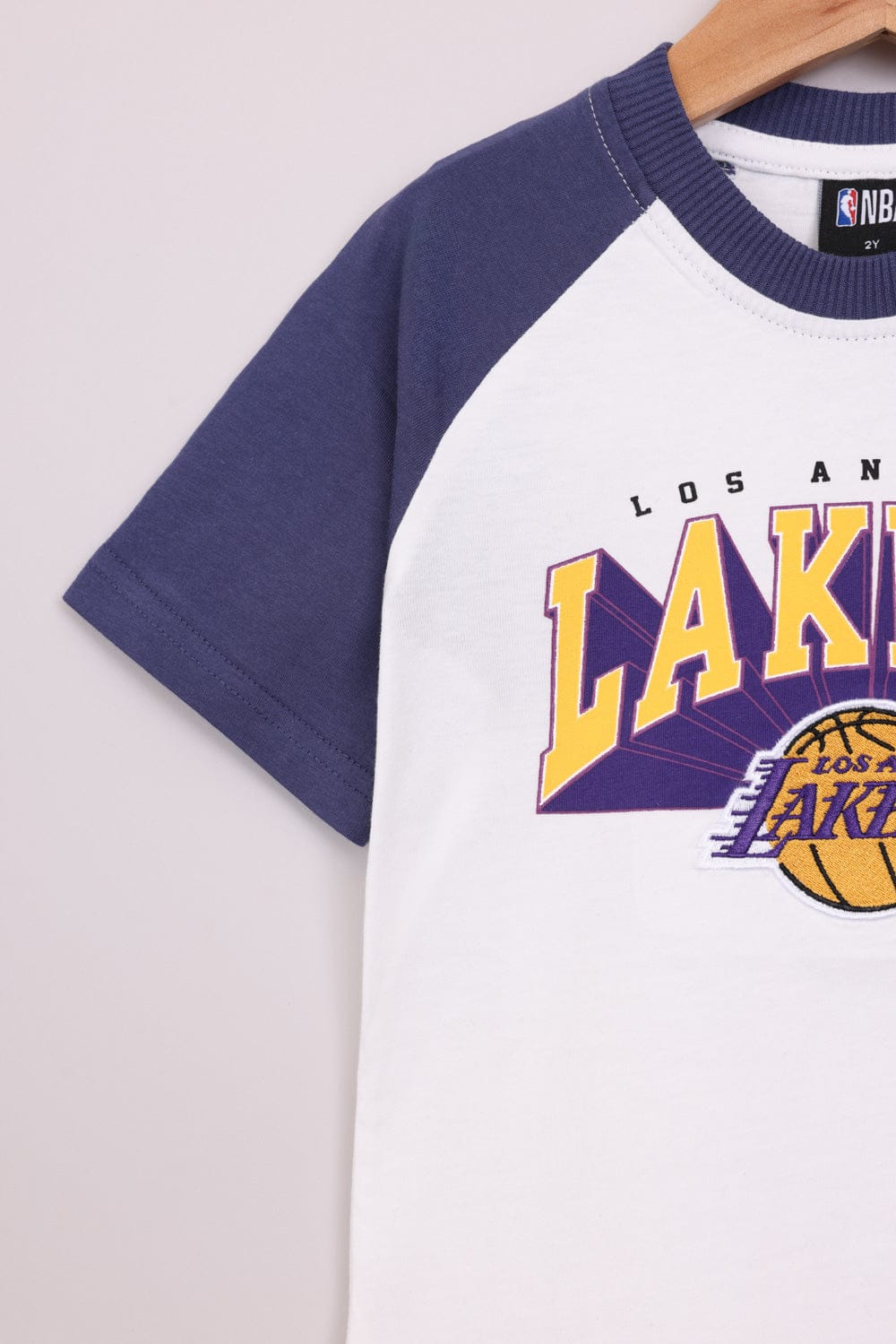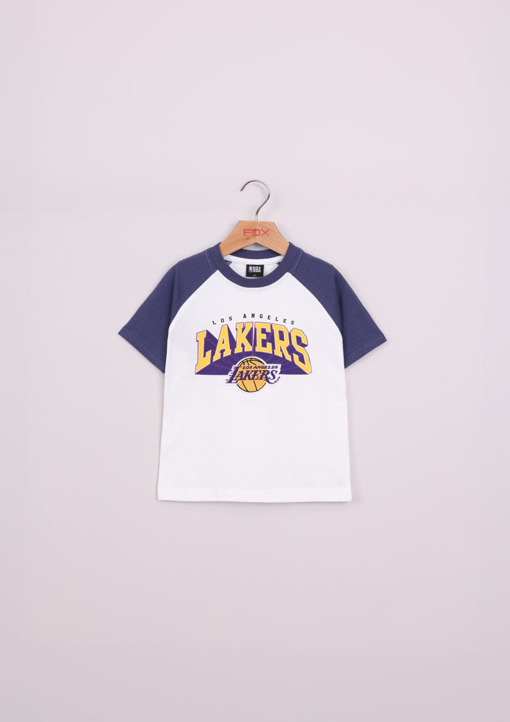 חולצה ממותגת NBA , שילוב צבעים בשרוולים והדפס קדמי.