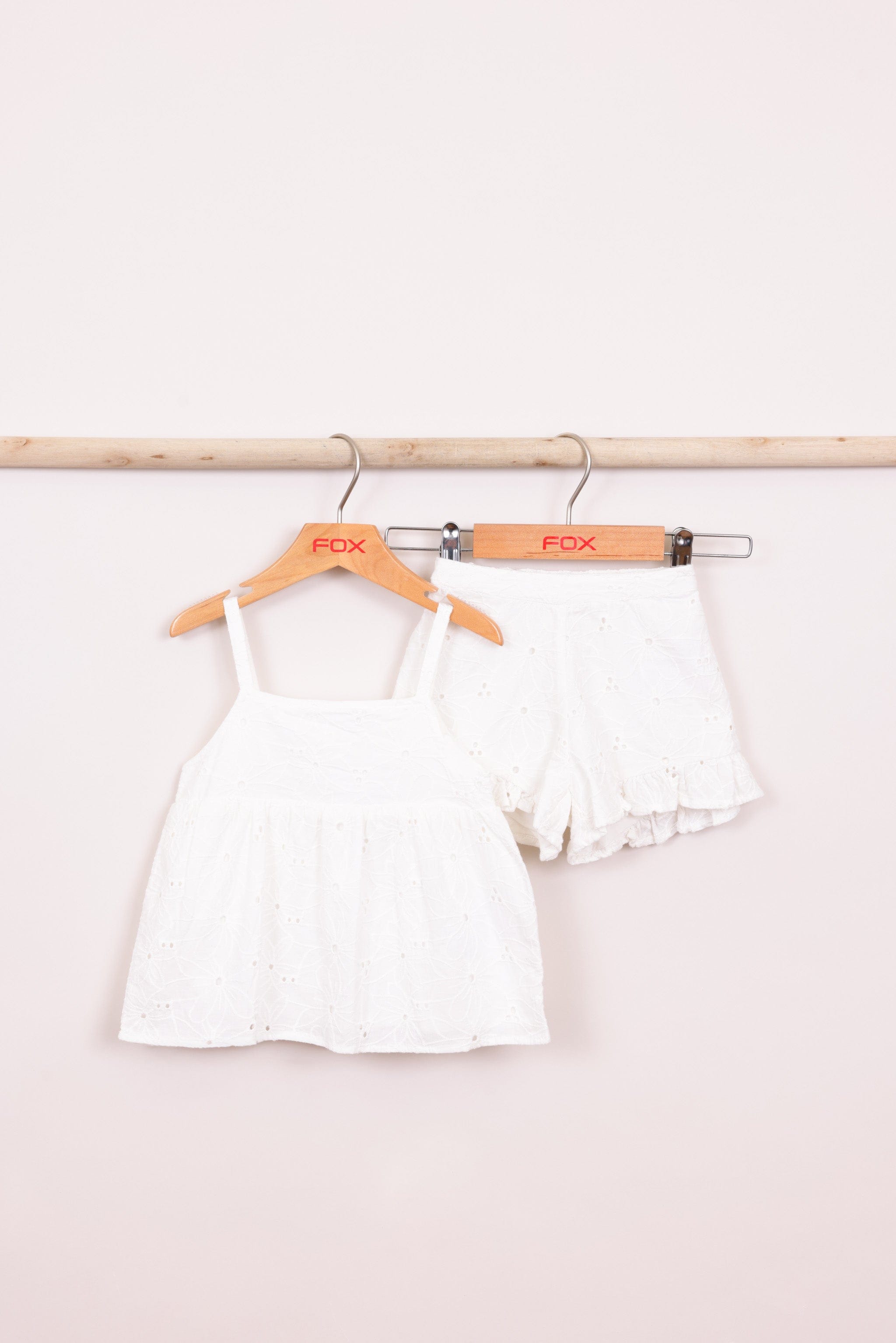 .גופיה ושורט רקומים פרחים עם גומי במותן