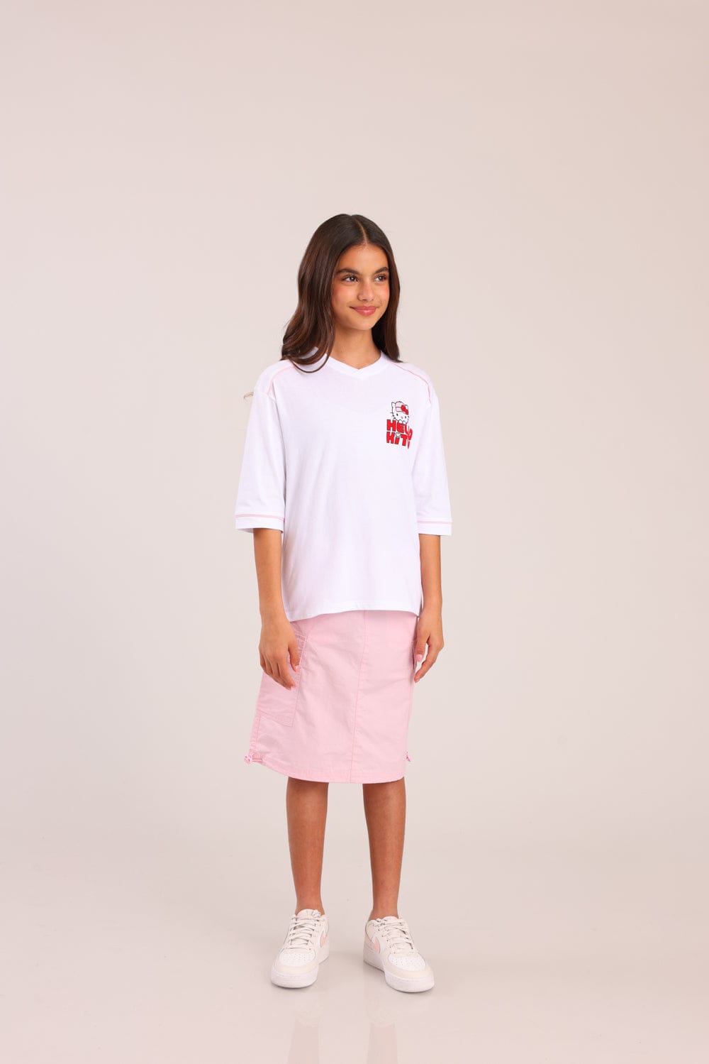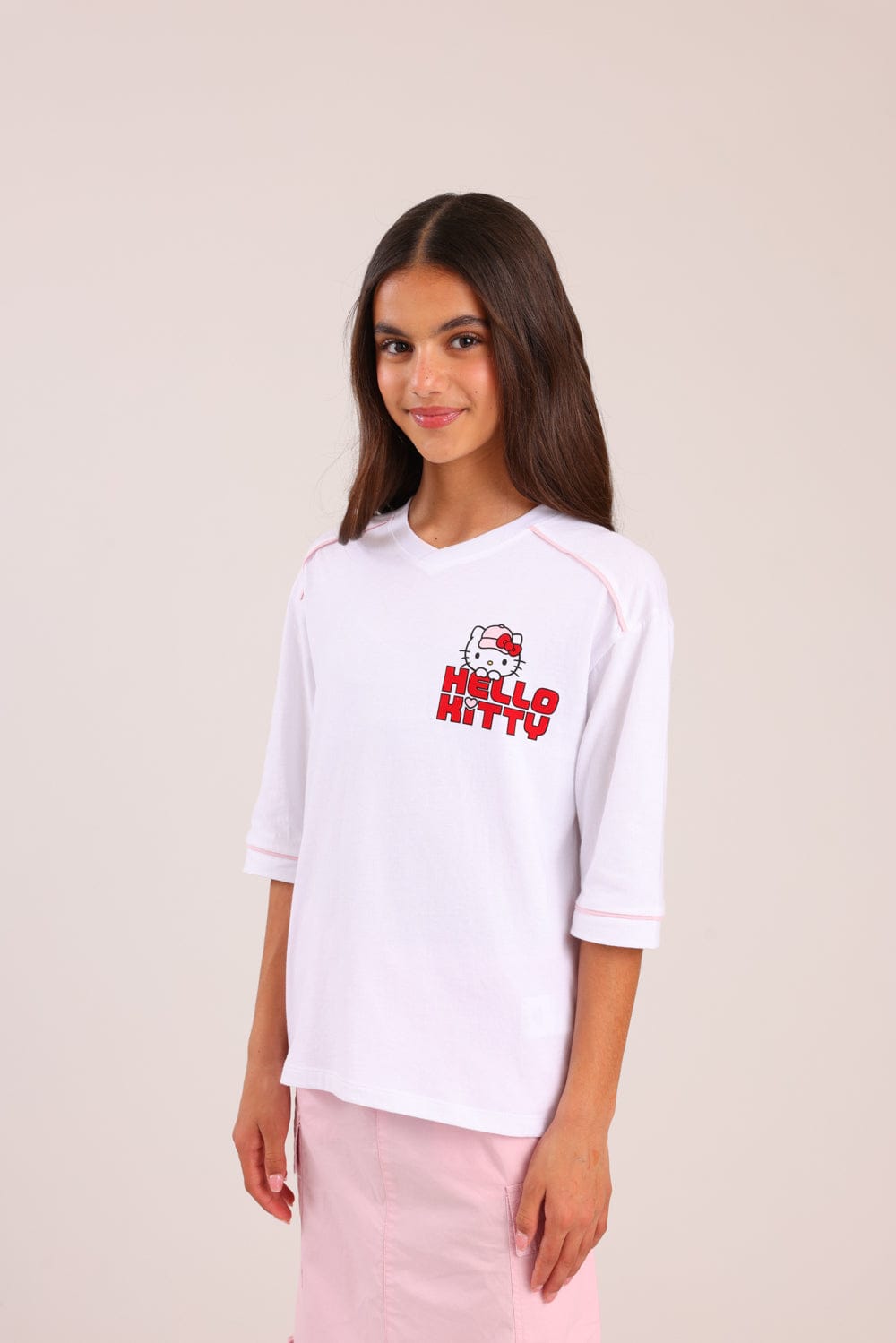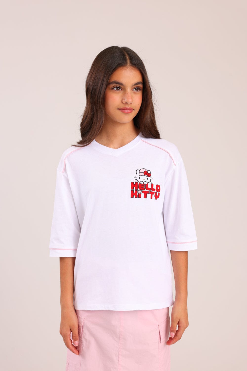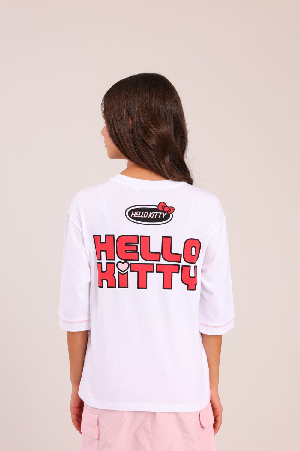 חולצה ממותגת הלו קיטי עם הדפס קדמי ואחורי.