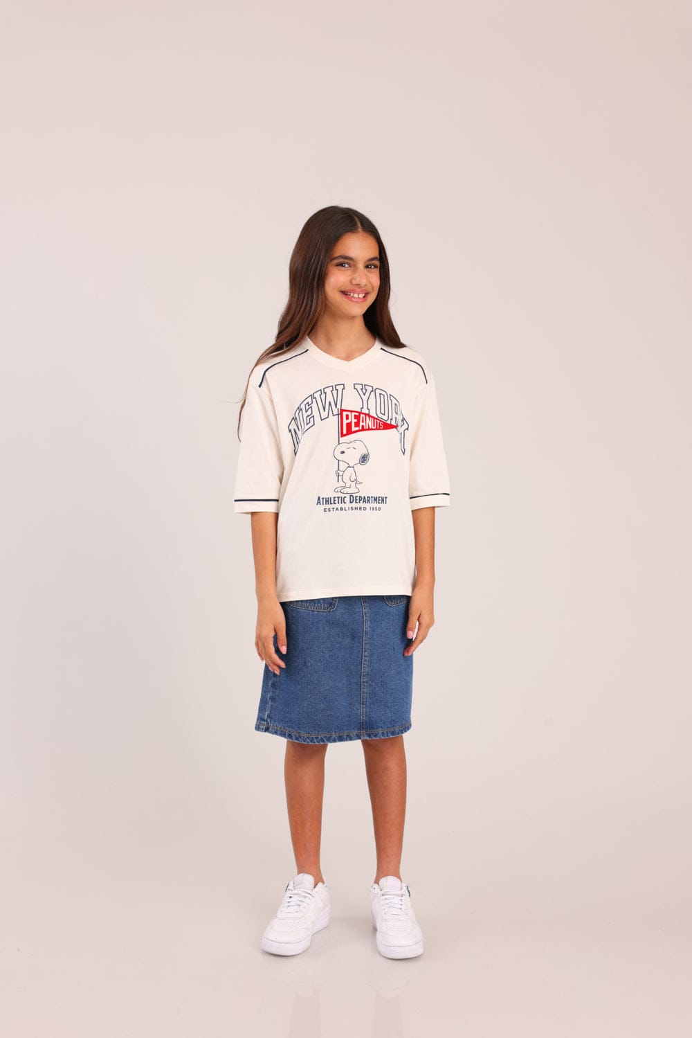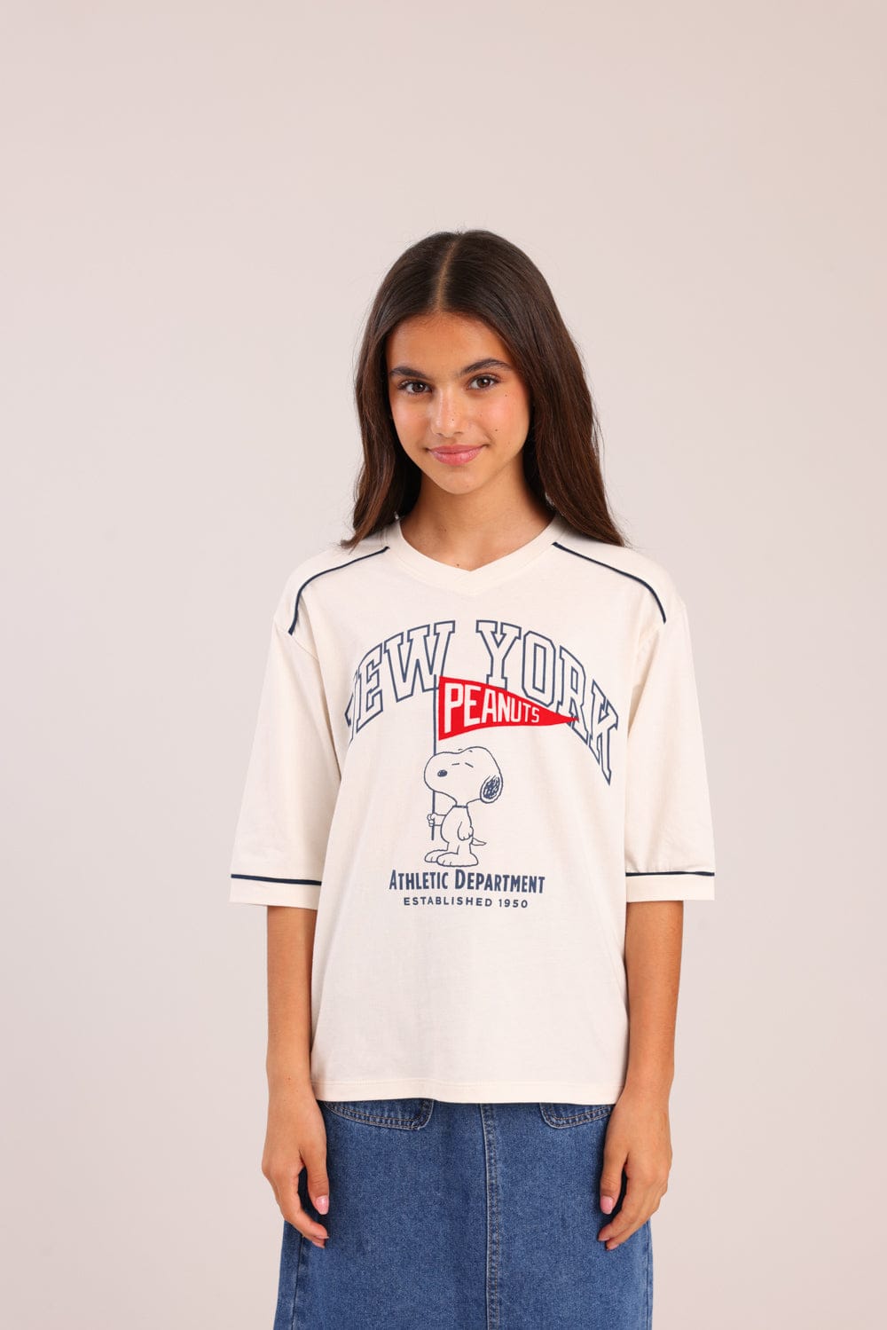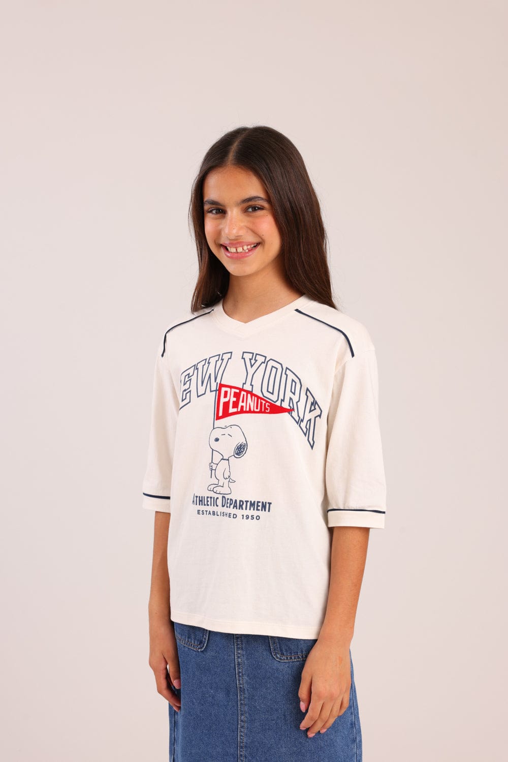 חולצה ממותגת סנופי עם הדפס קדמי.