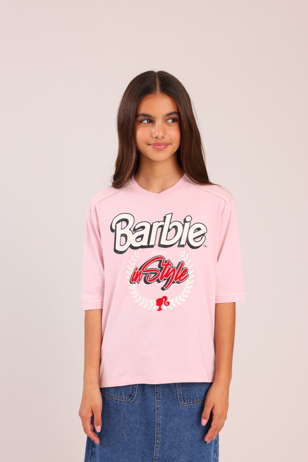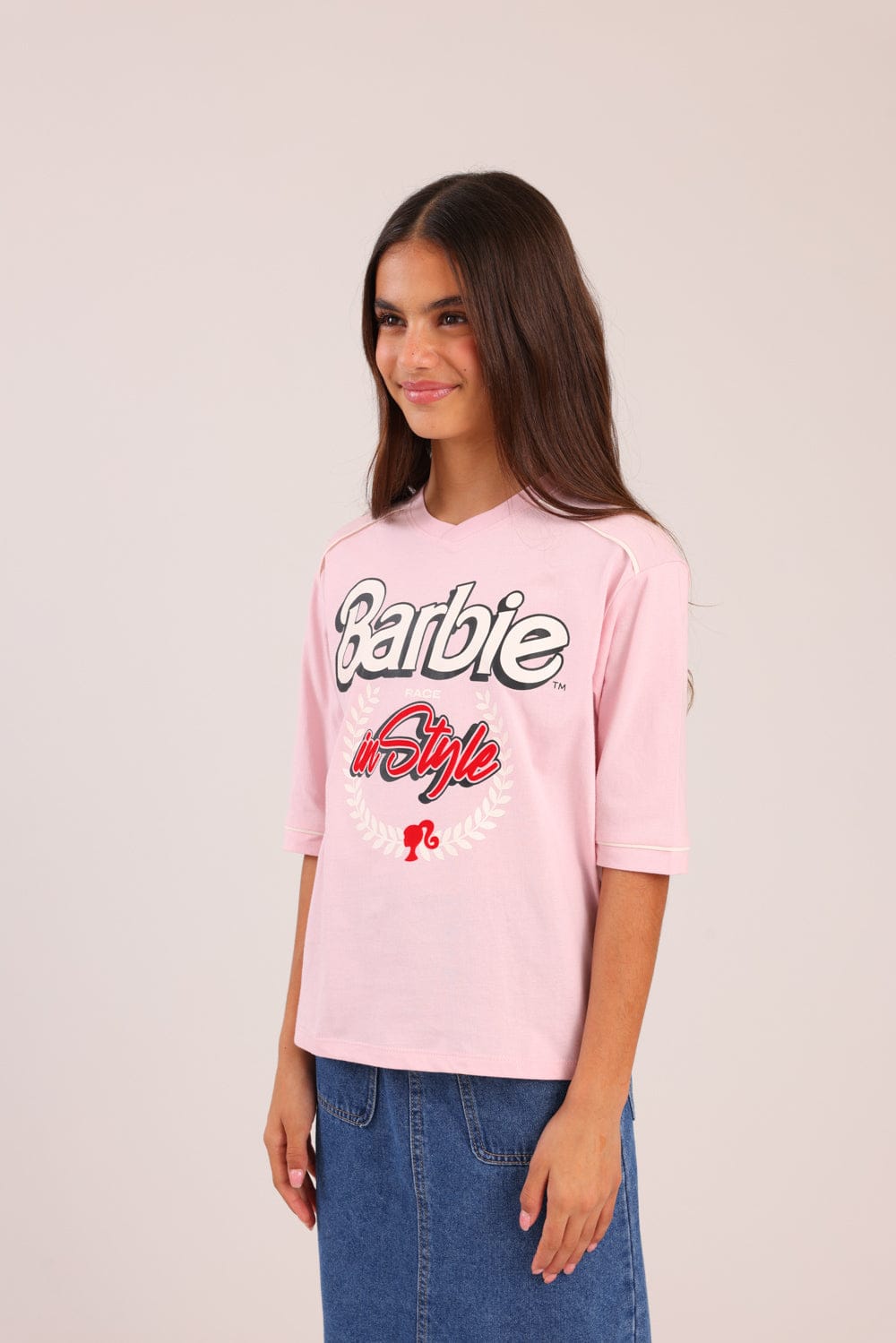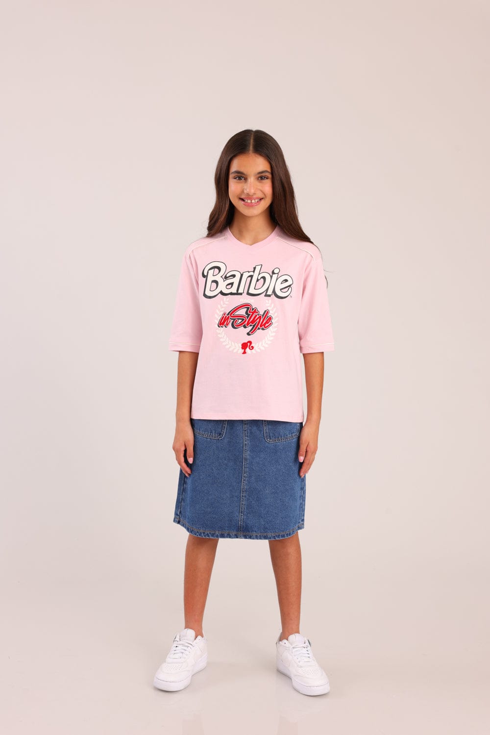 חולצה ממותגת ברבי עם הדפס קדמי ואחורי.