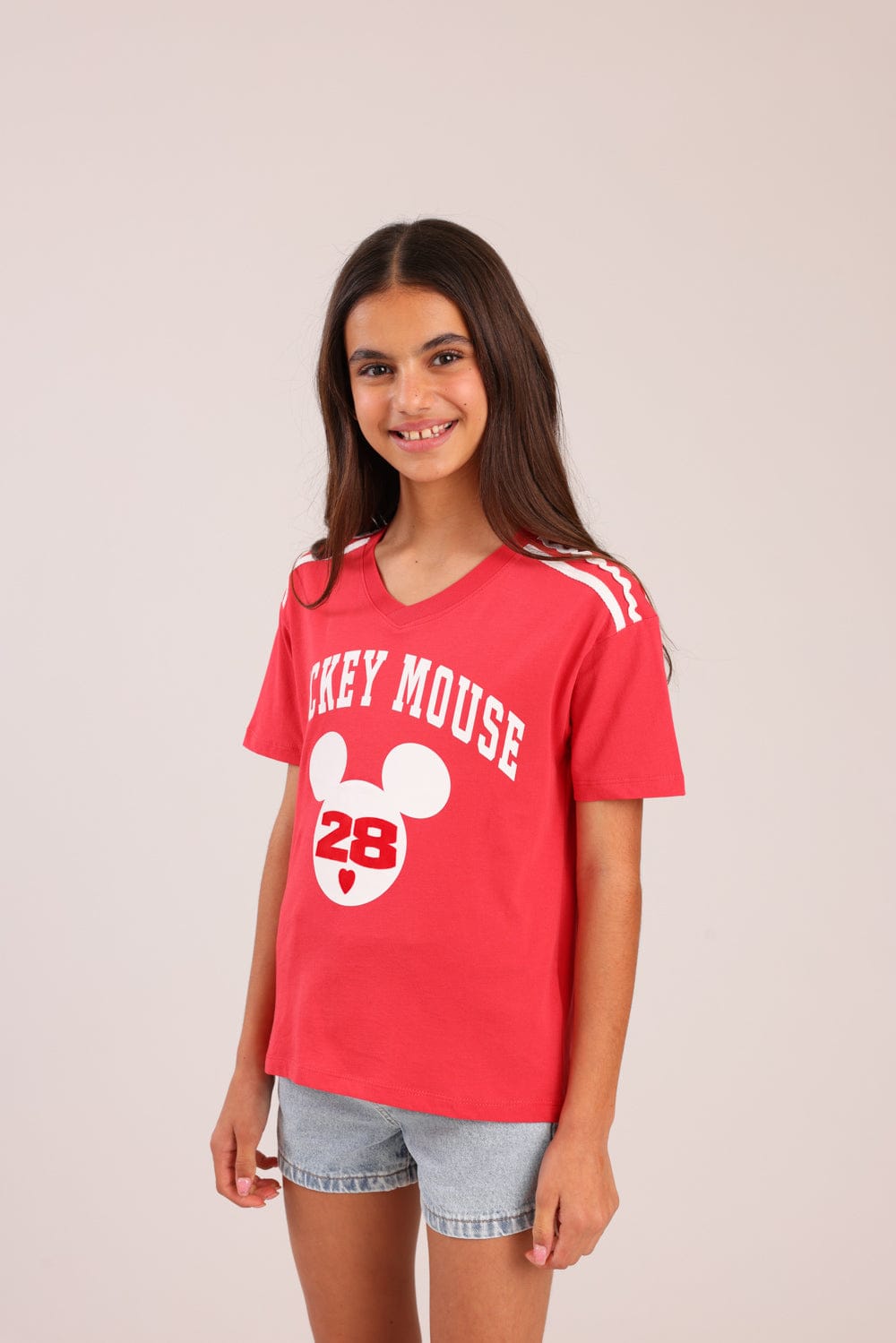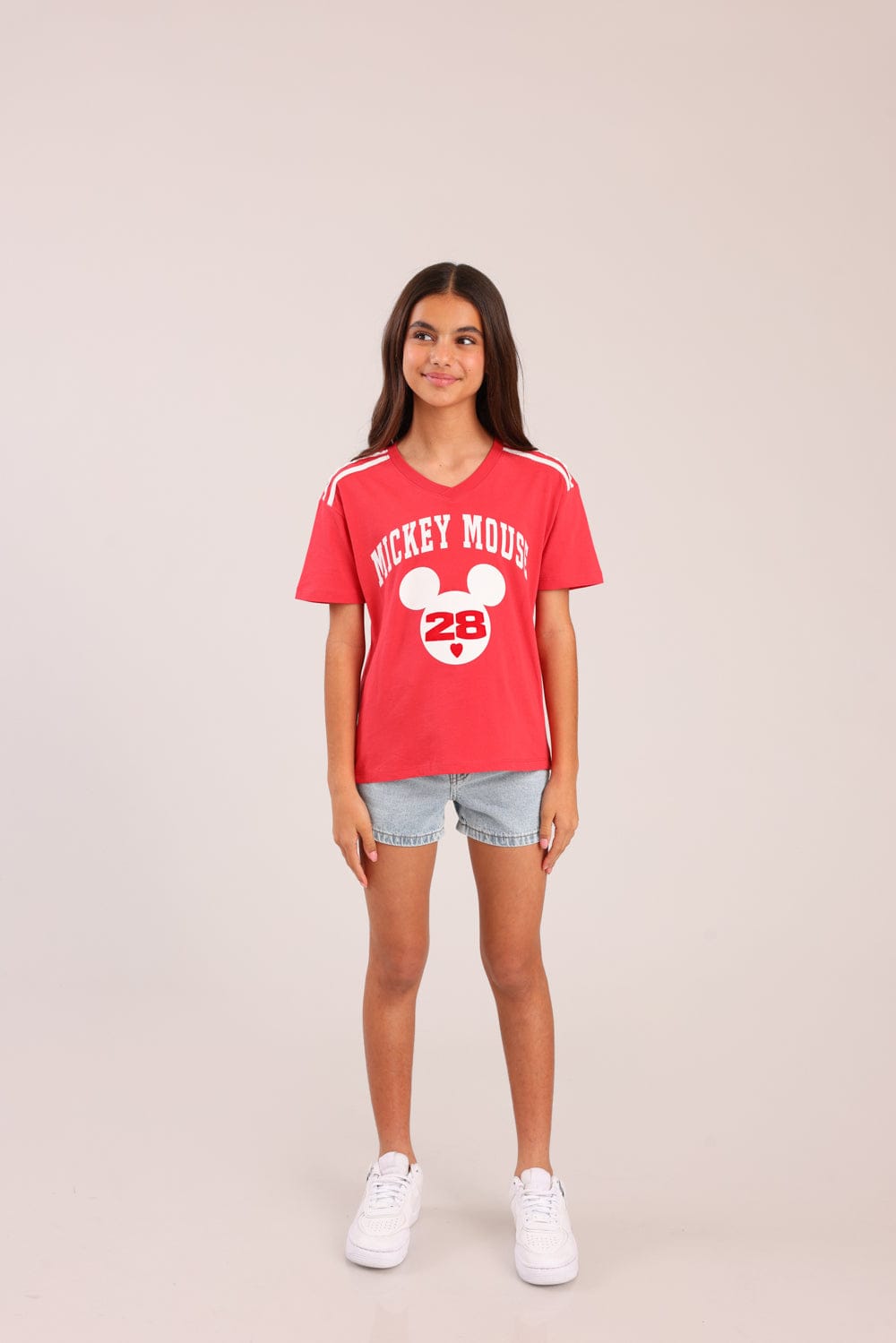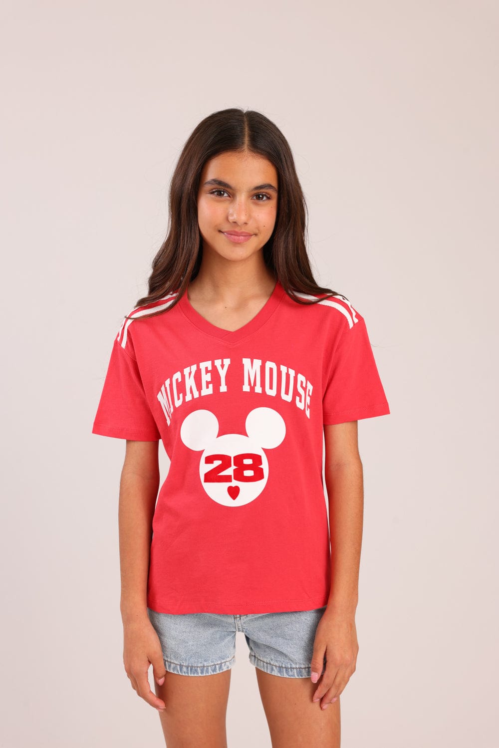 חולצה ממותגת מיקי מאוס דיסני עם הדפס קדמי ופסים בכתפיים.