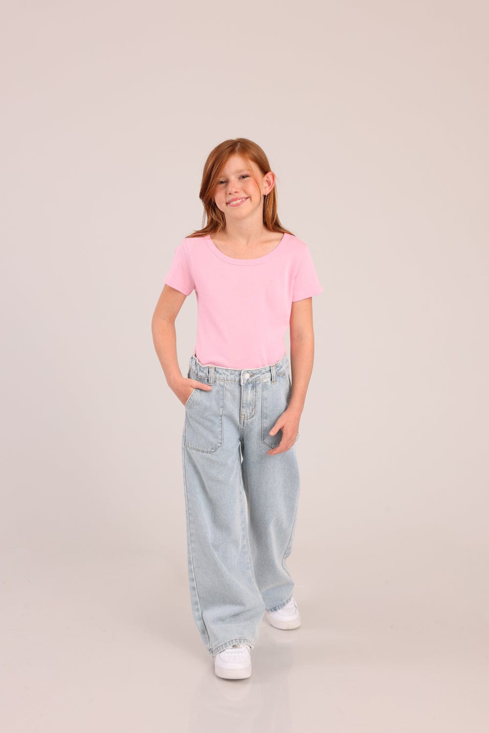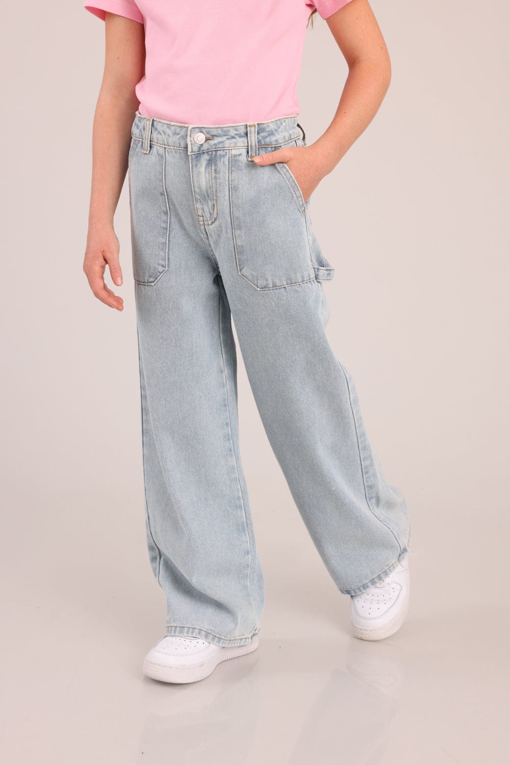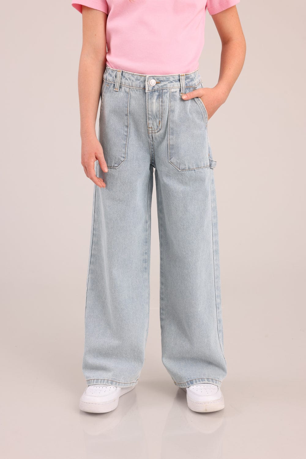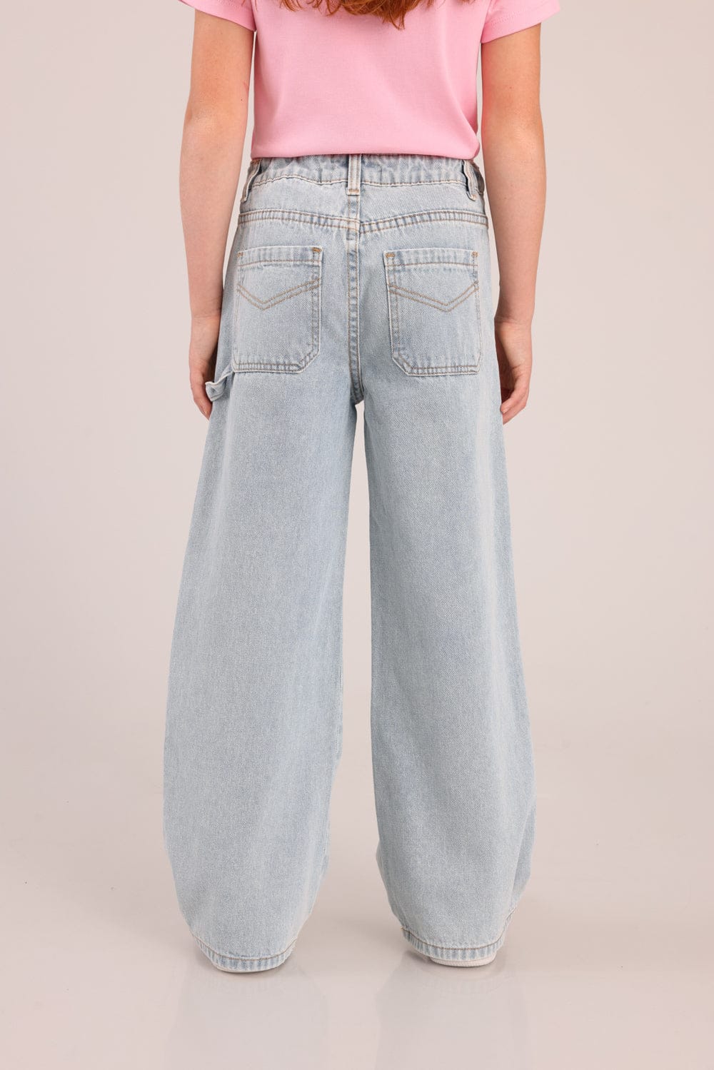 מכנסי ג'ינס מתרחבים עם כיסים קדמיים ואחוריים.