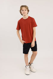 טישרט בייסיק צווארון עגול בצבע אדום כהה
