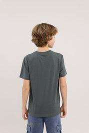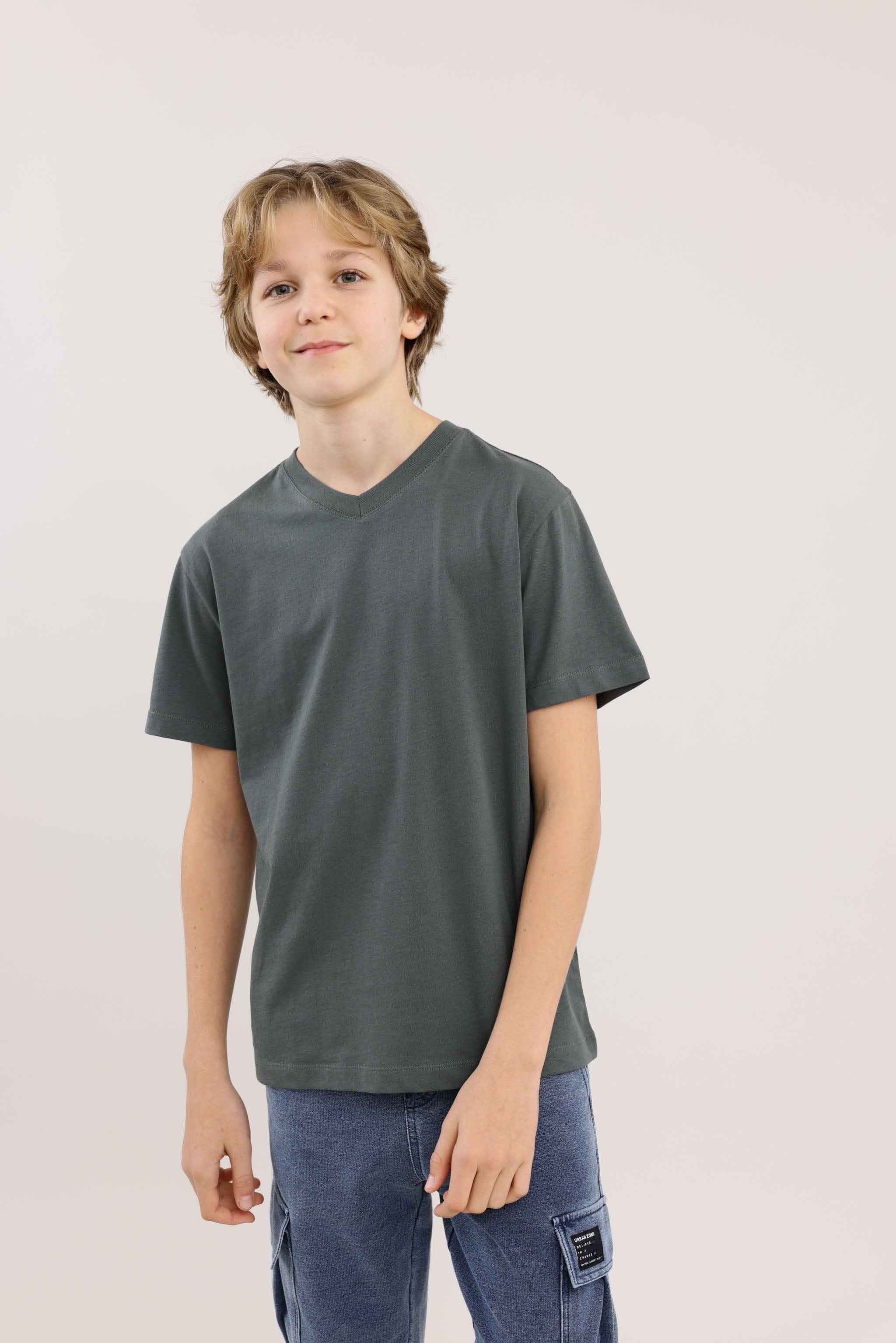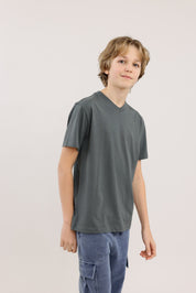 טישרט בייסיק צווארון V בצבע ברוש כהה