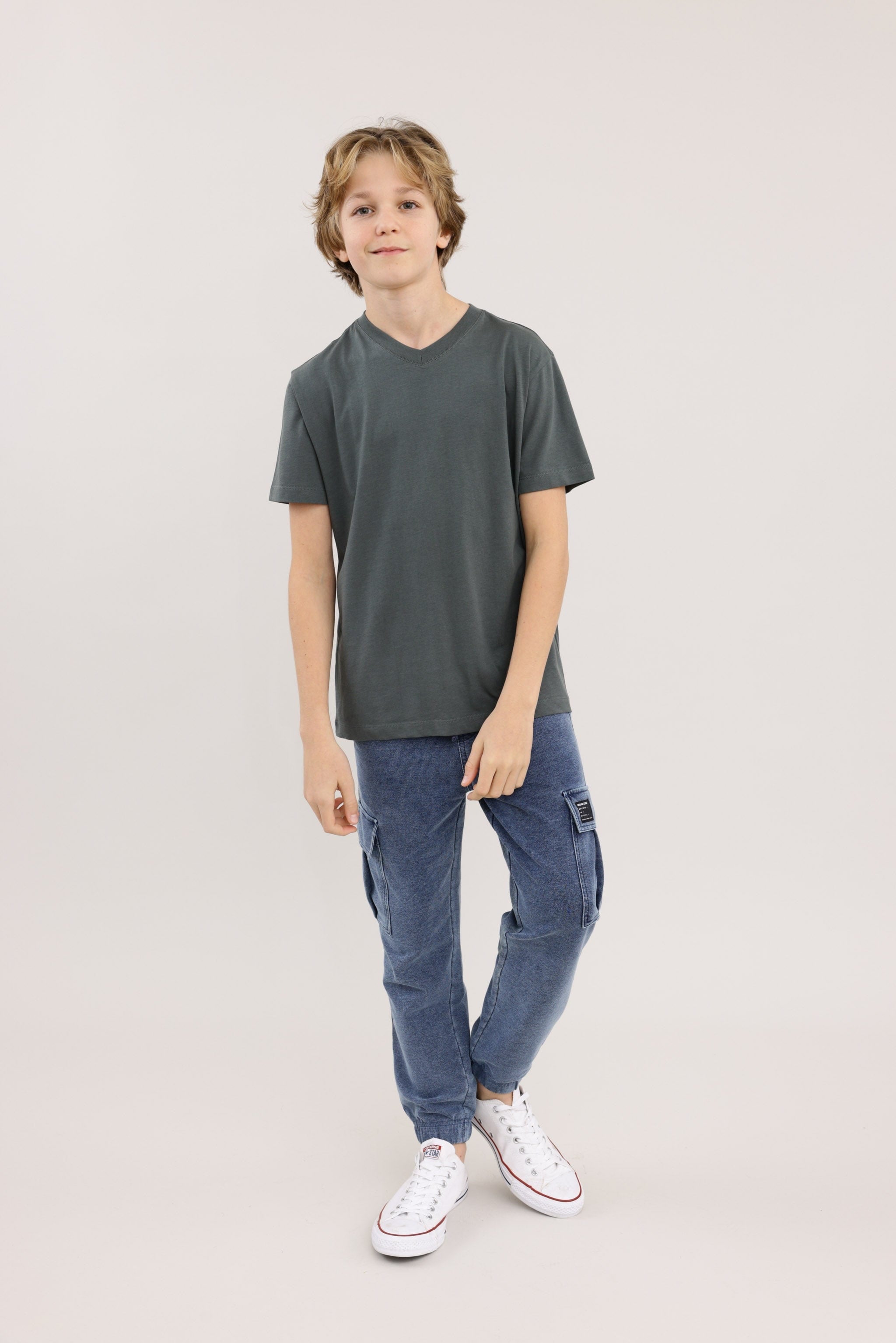 טישרט בייסיק צווארון V. שרוולים קצרים מבד ויסקוזה
