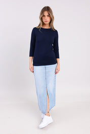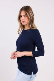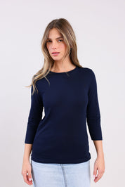 טישרט בייסיק צווארון עגול שרוול 3/4 בצבע נייבי