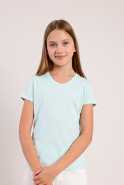 טישרט בייסיק צווארון V בצבע אוקיינוס