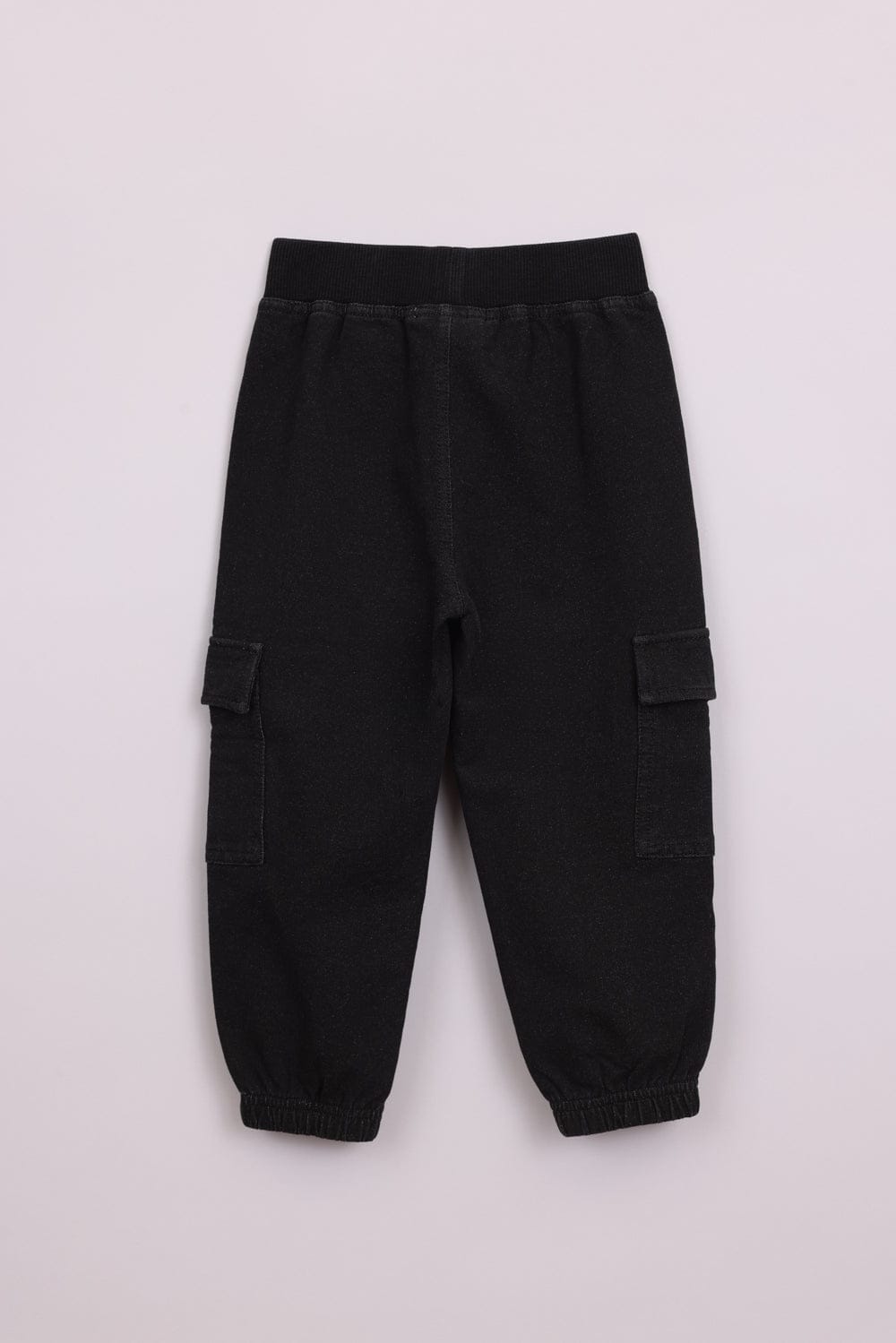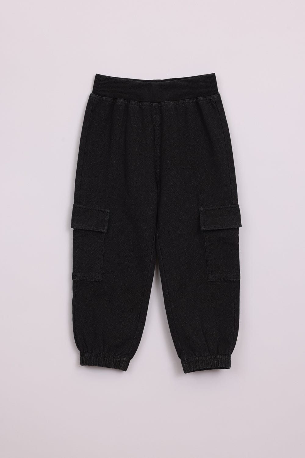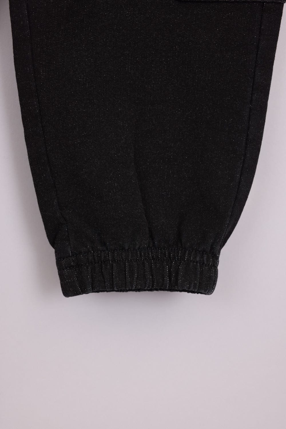 מכנסי פוטר דמוי ג'ינס, בגזרת אוברסייז עם כיסים בצדדים וגומי במותן.