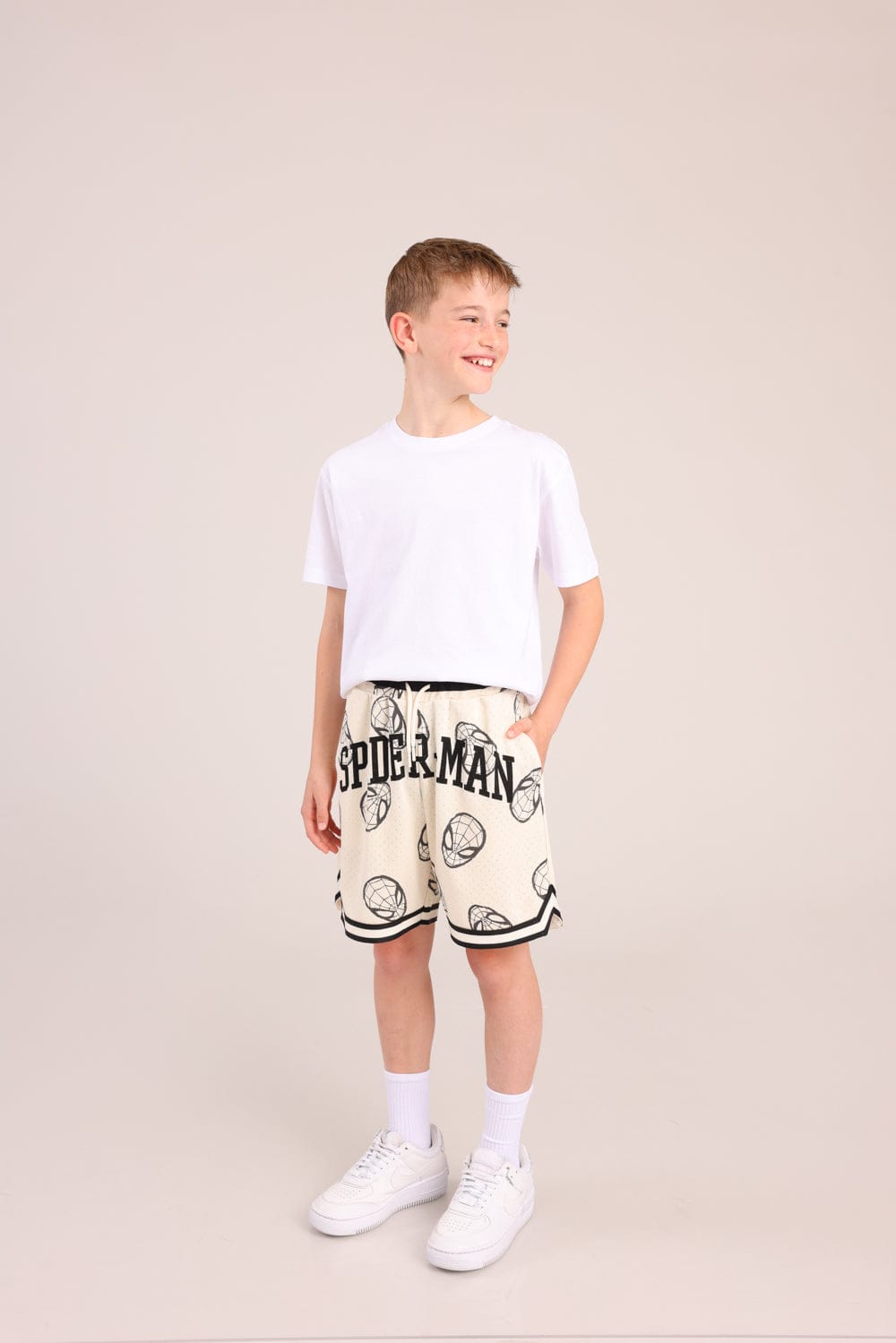 מכנסי כדורסל ממותגים ספיידרמן, גומי במותן עם הדפסים