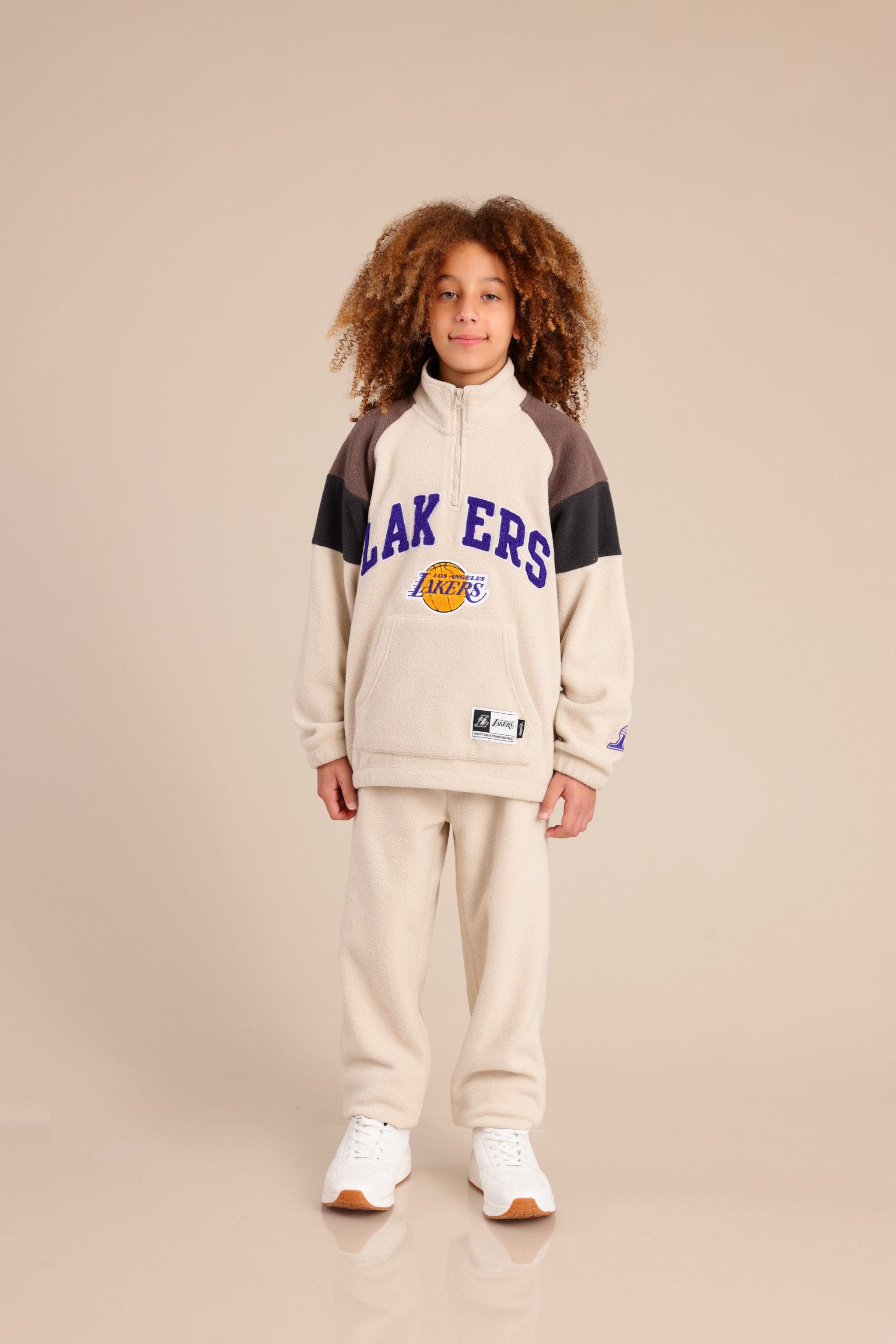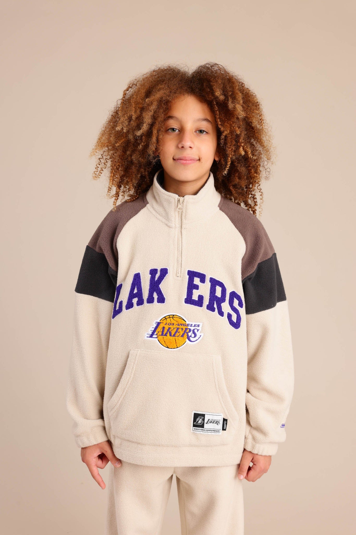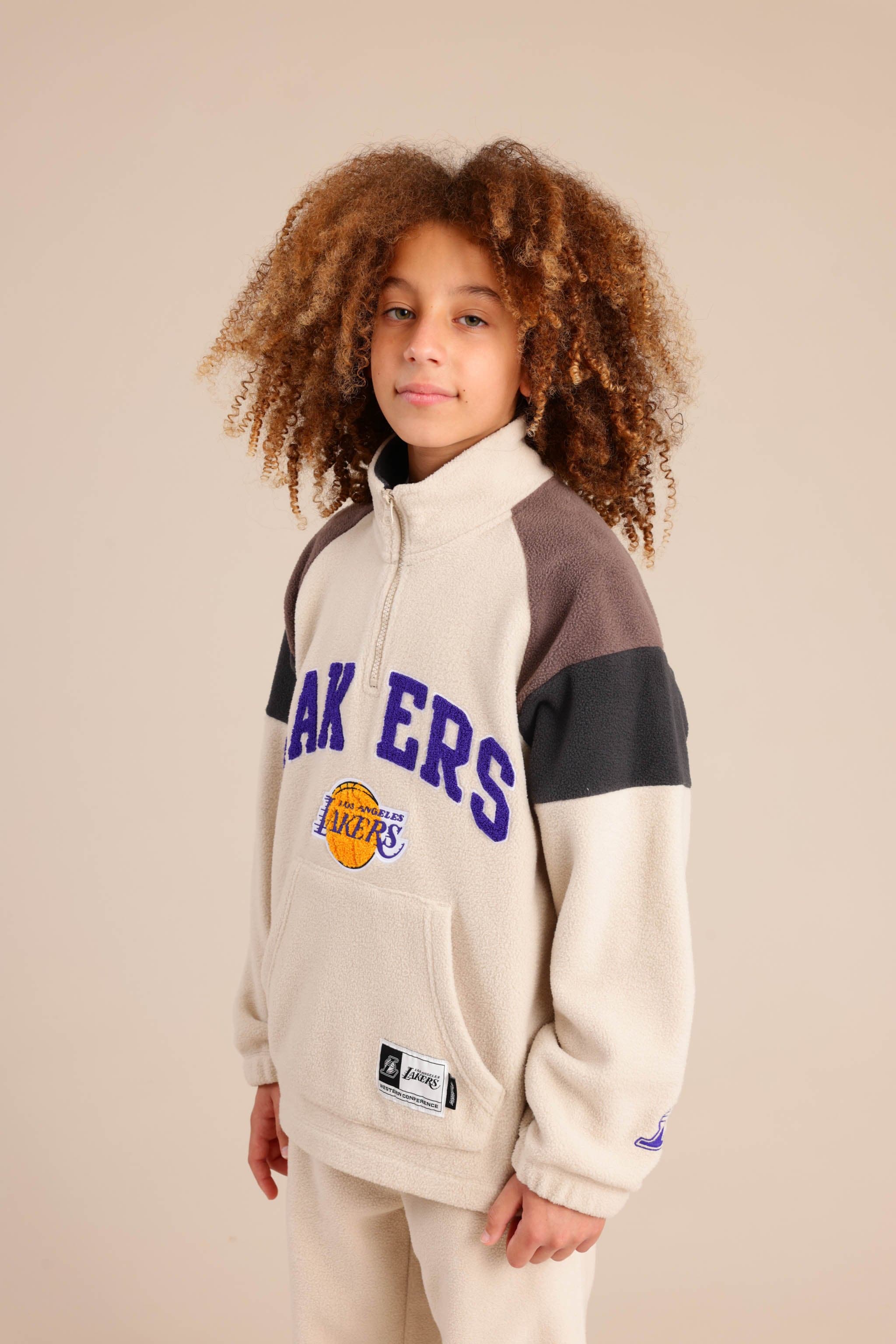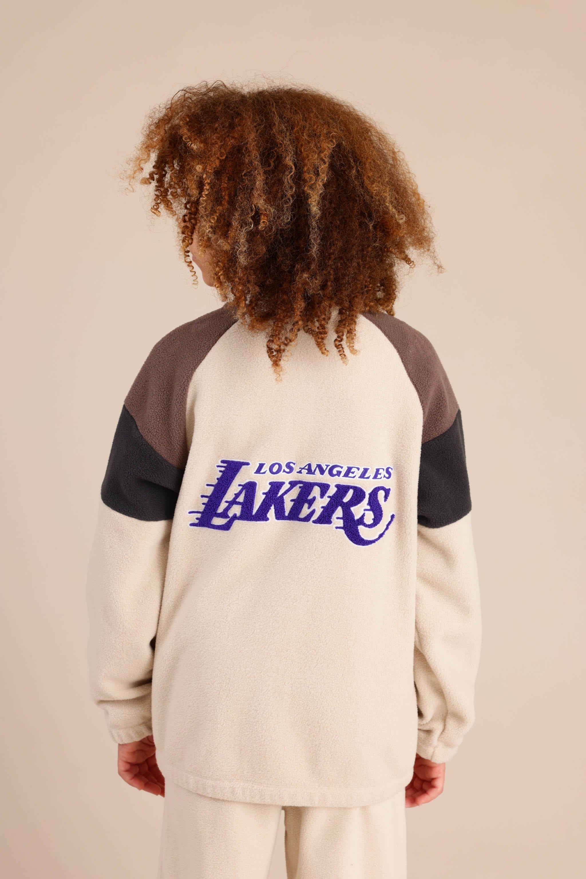 חולצת פליז ממותגת NBA עם חצי רוכסן והדפס קדמי ואחורי