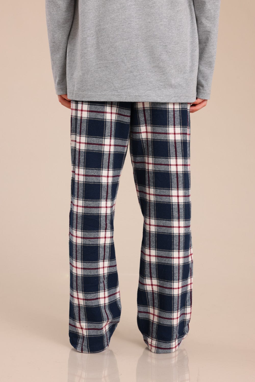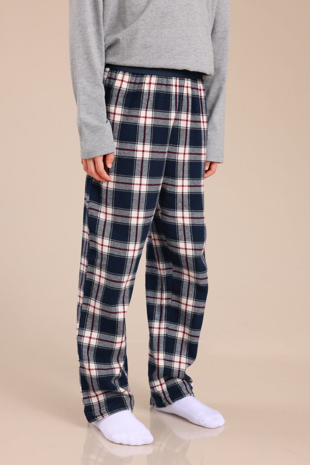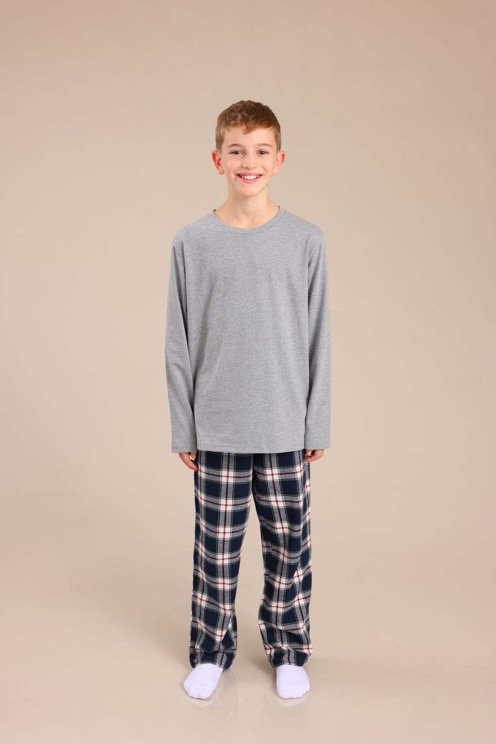 פיג'מת בנים חולצה חלקה ומכנס משובץ