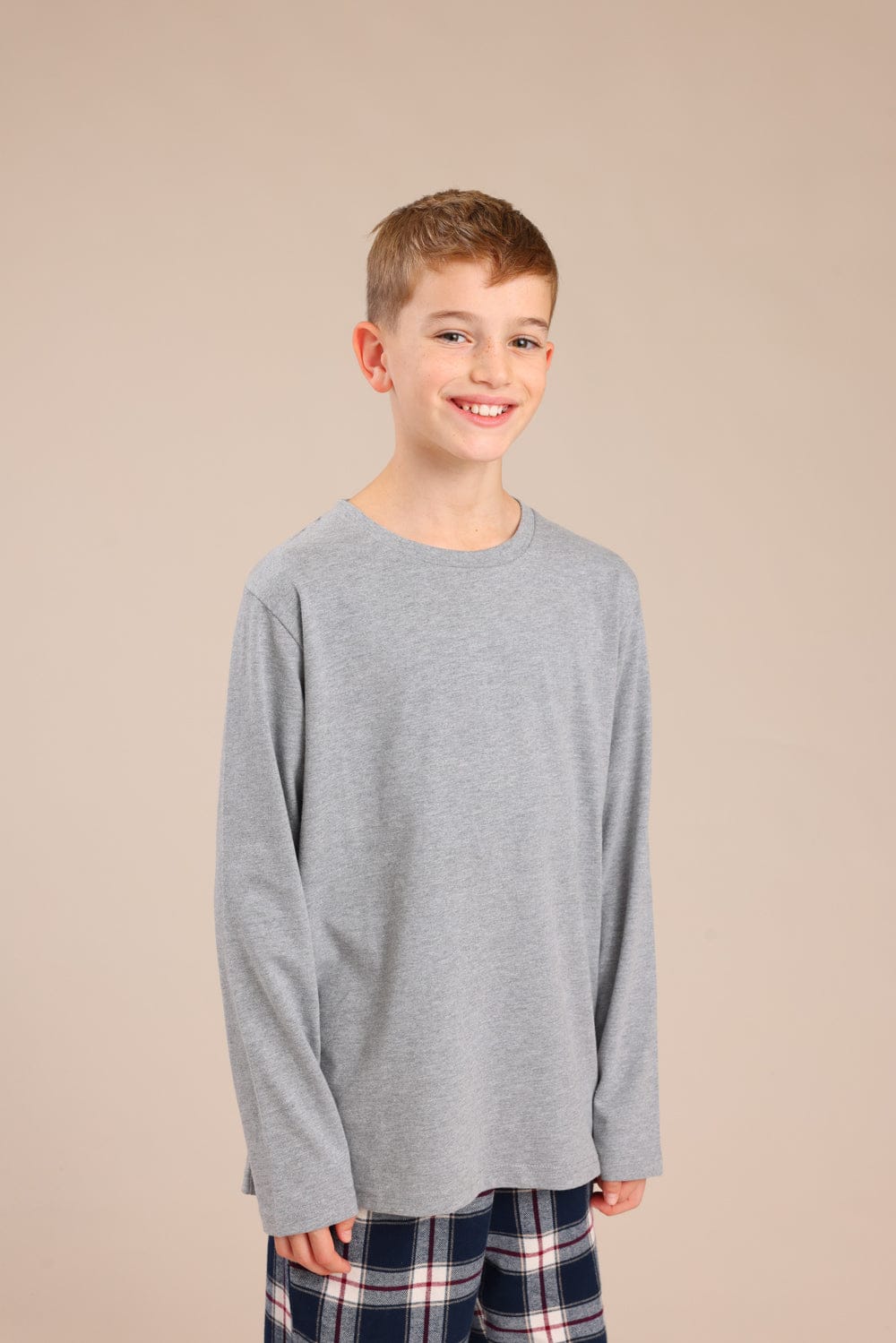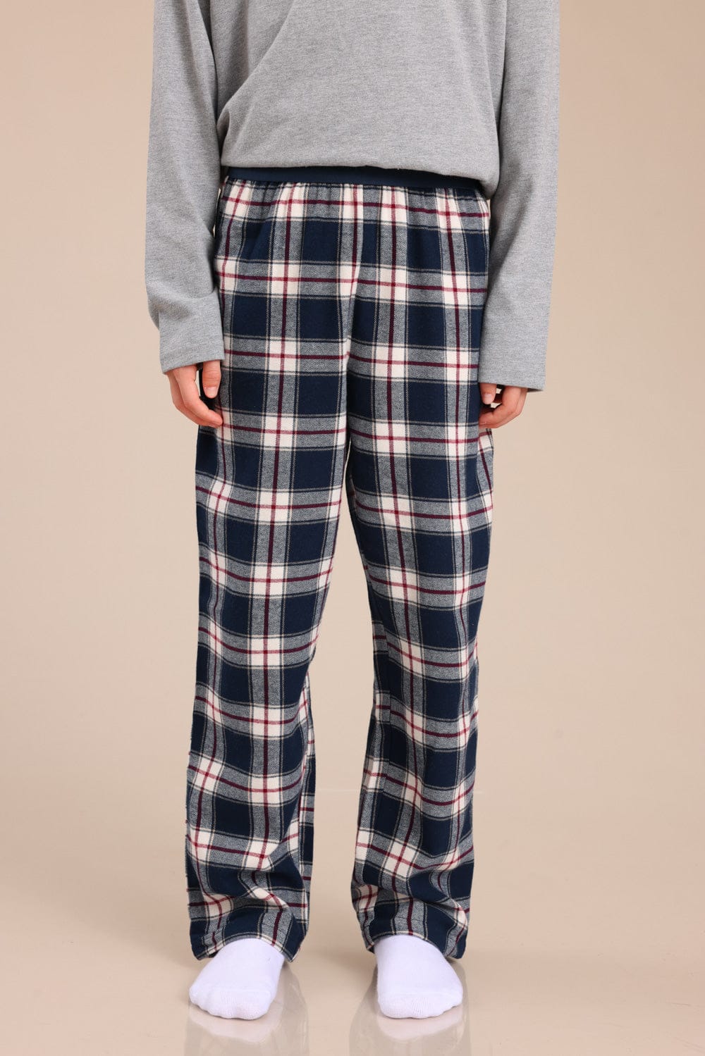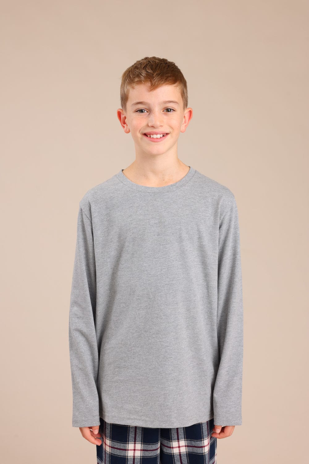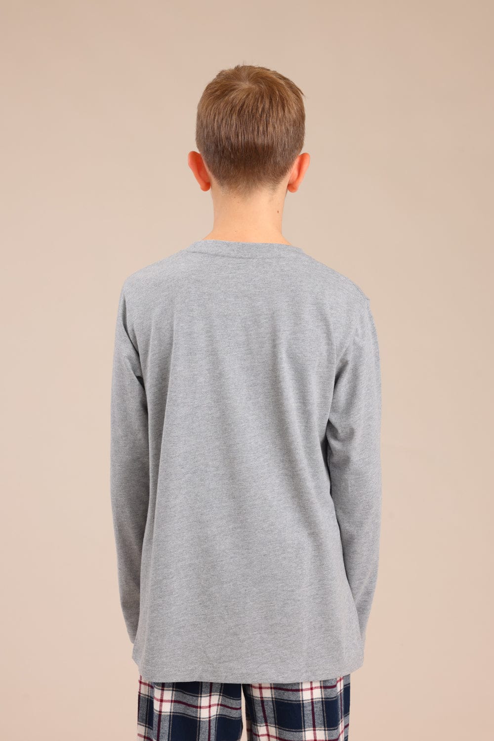 פיג'מת בנים חולצה חלקה ומכנס משובץ