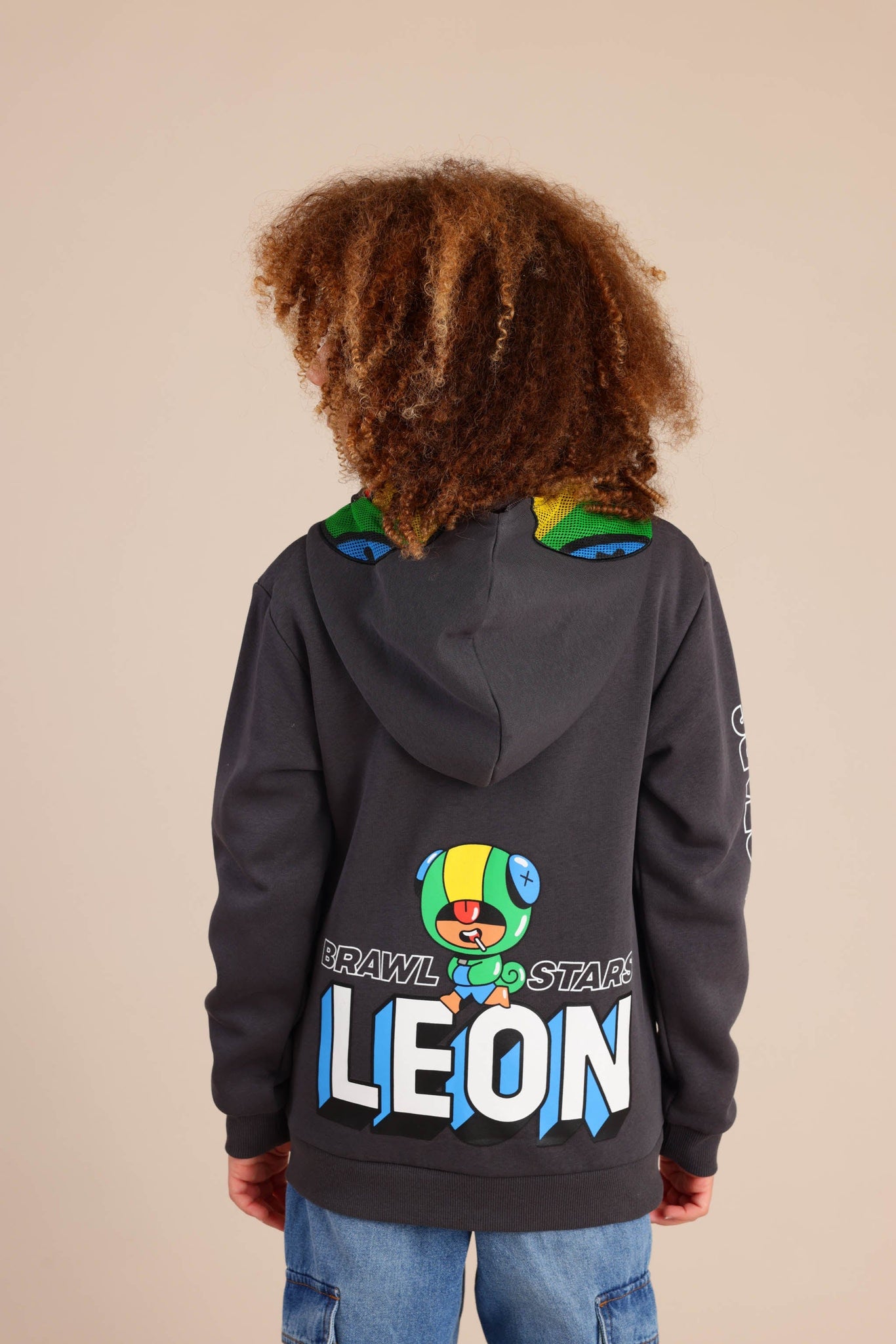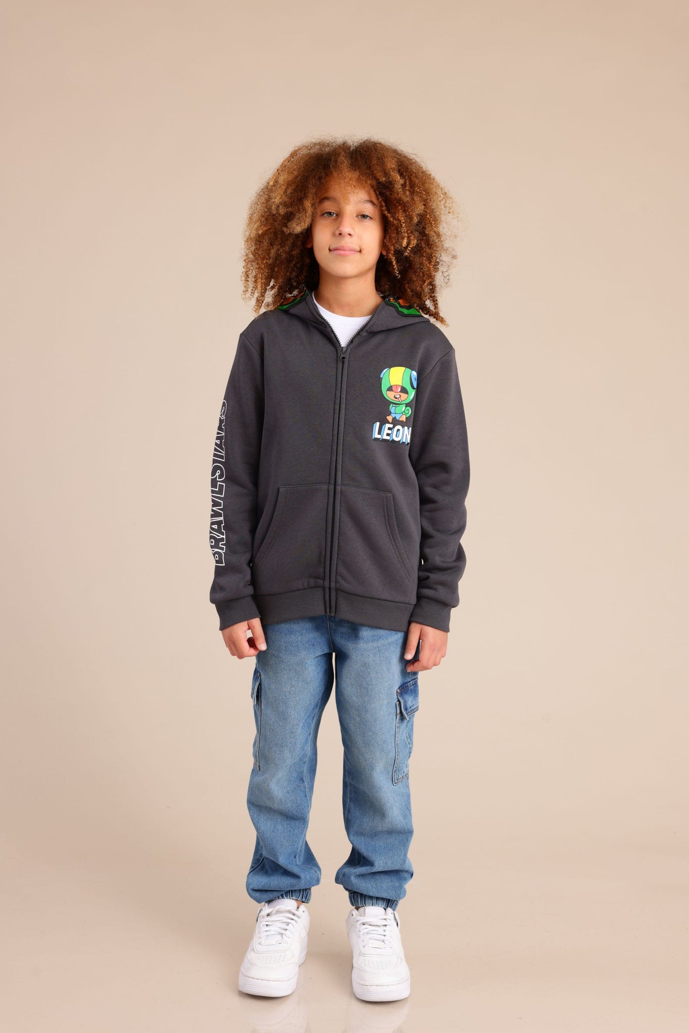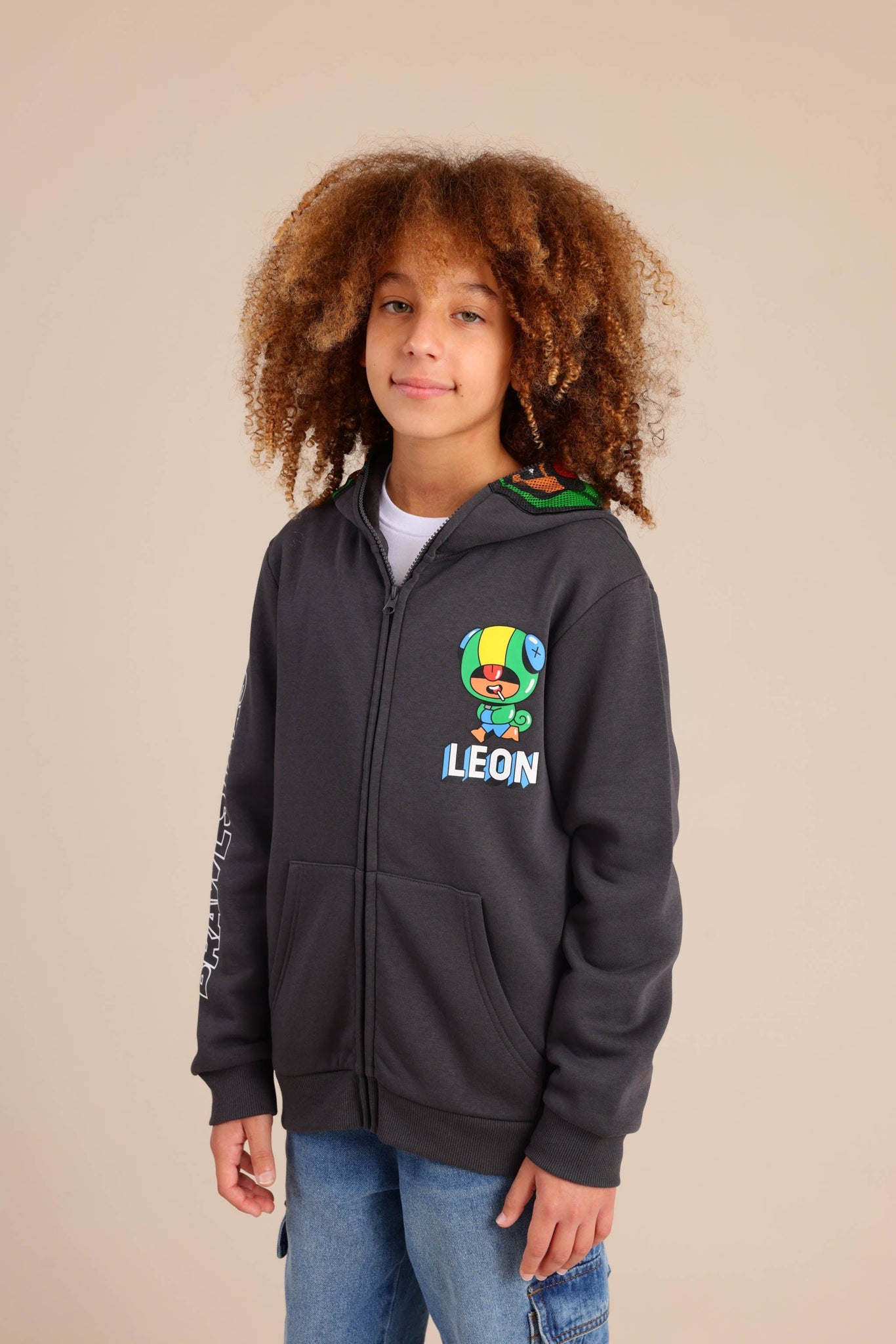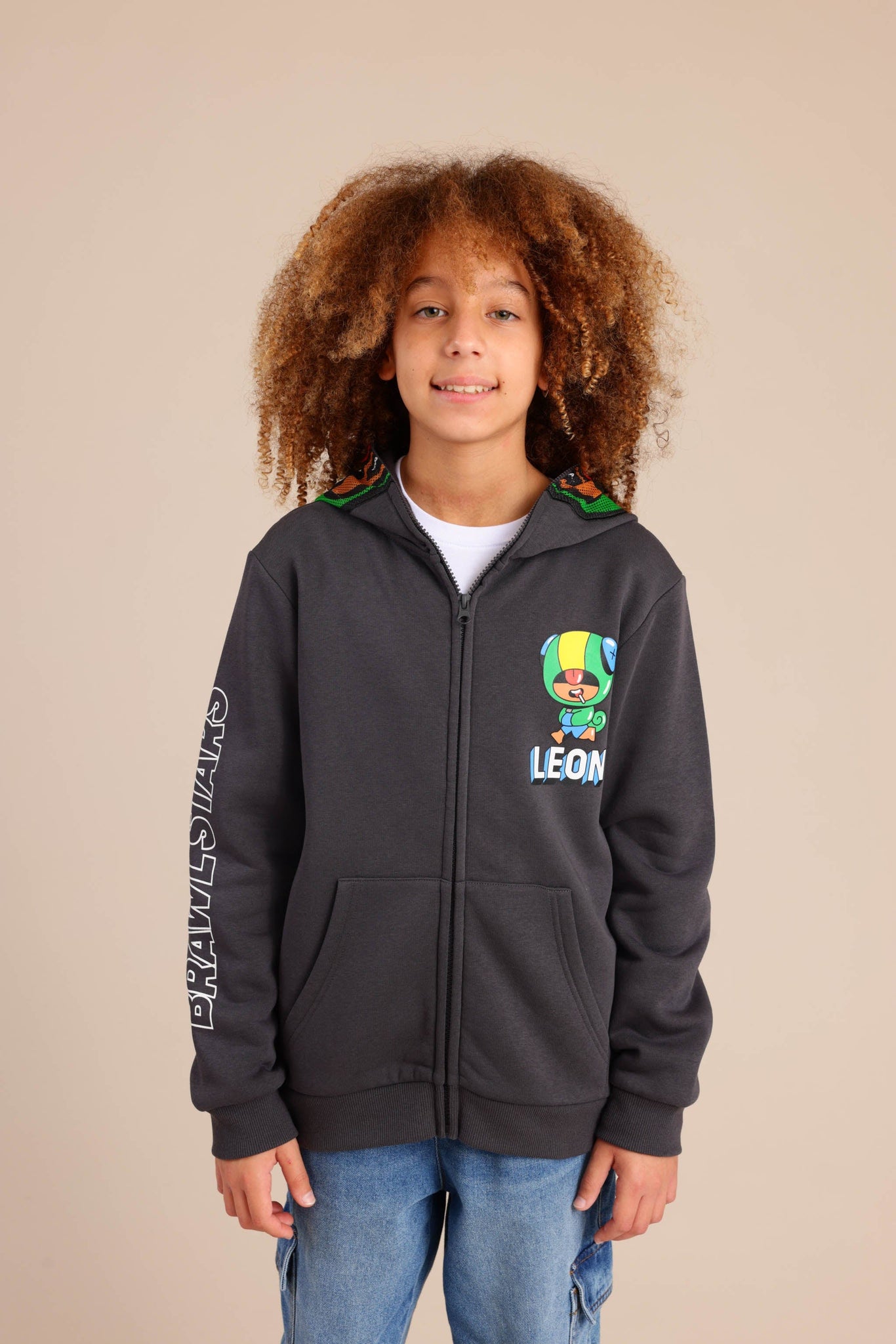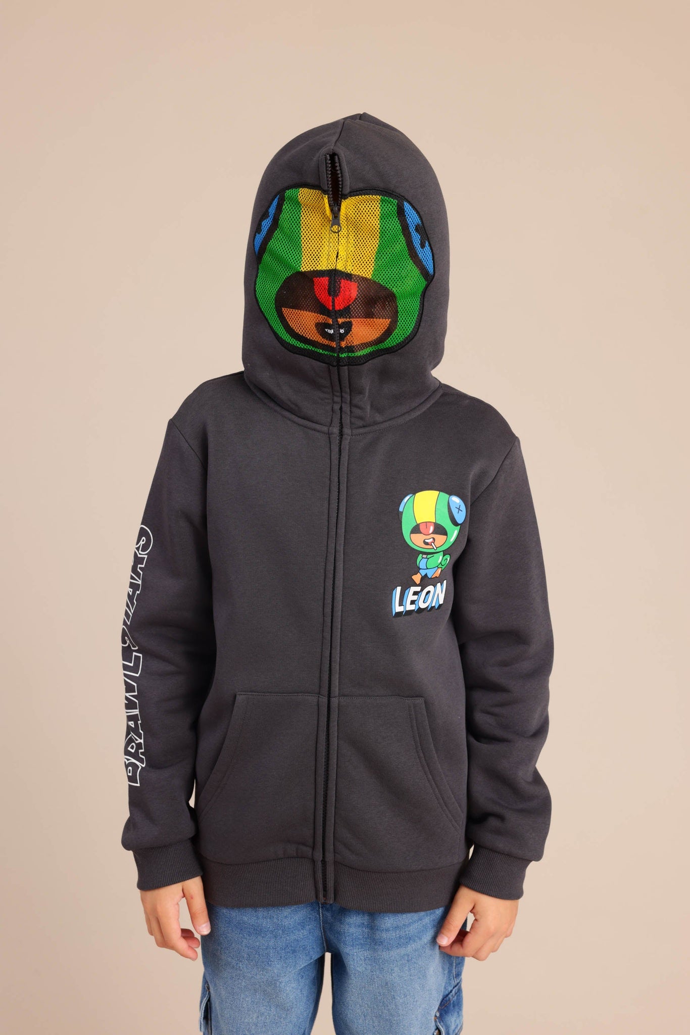 קפוצ'ון פוטר עם מסיכה בראול סטארס בצבע אפור כהה