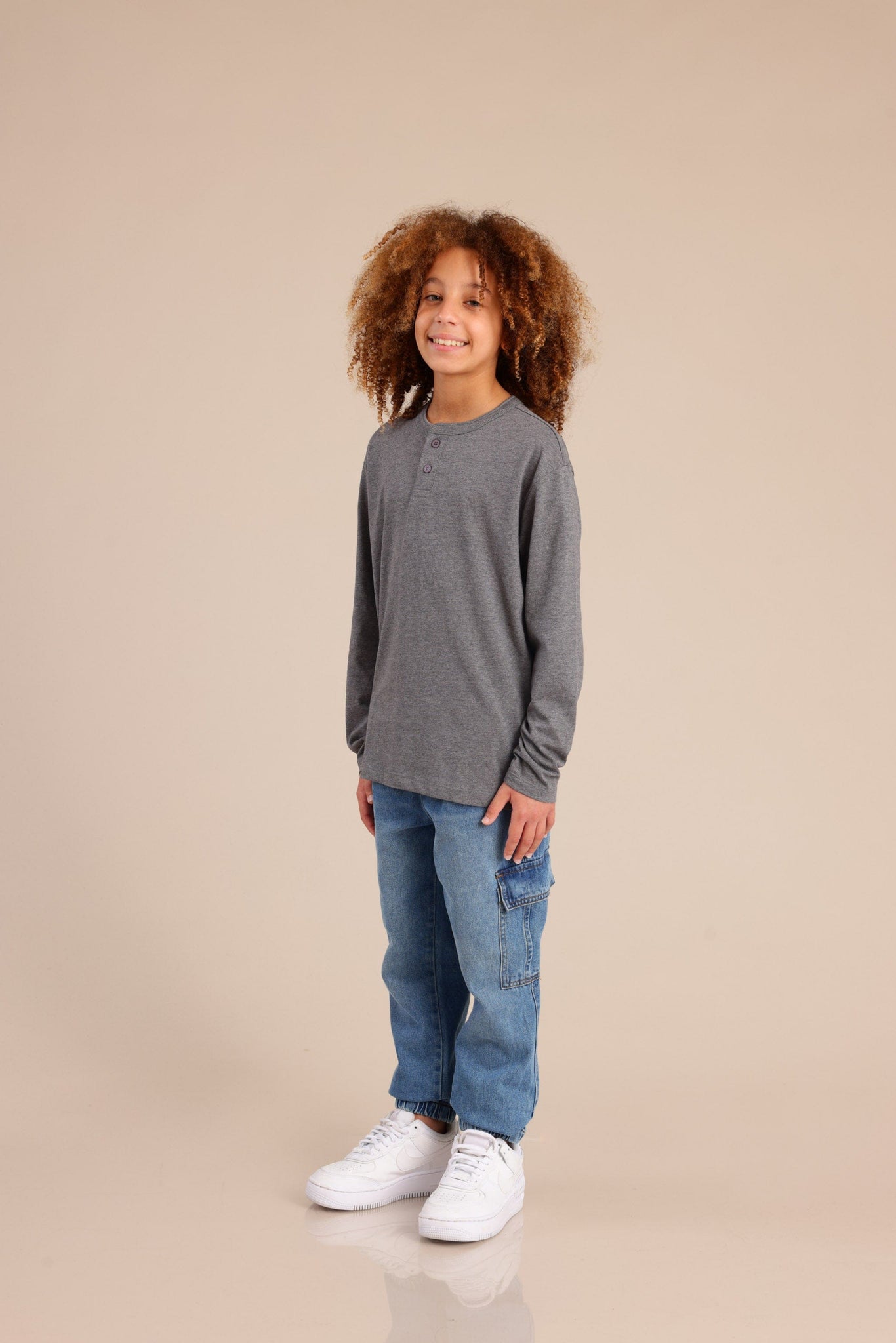 חולצה ארוכה עם כפתורים בצבע מלנז כהה