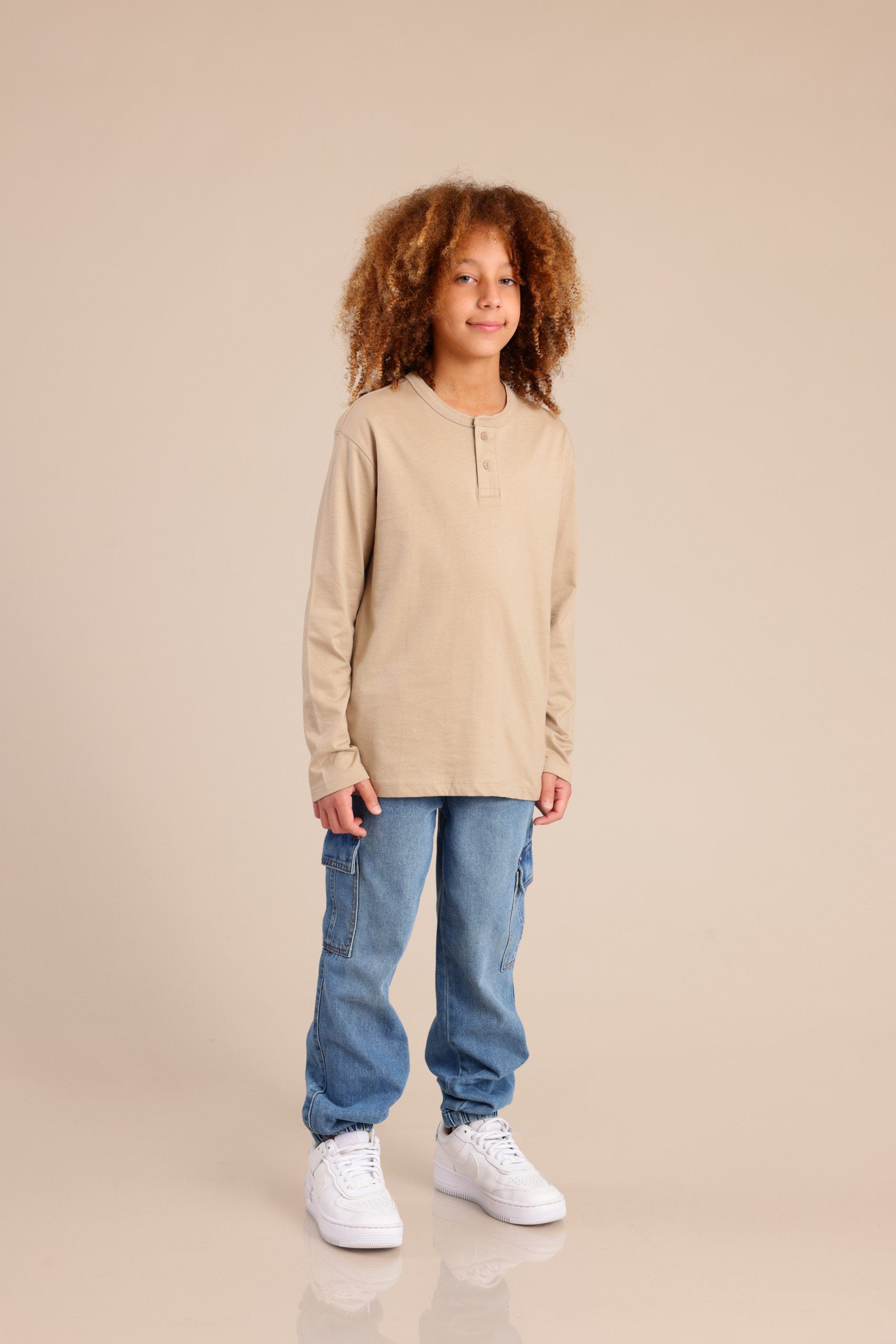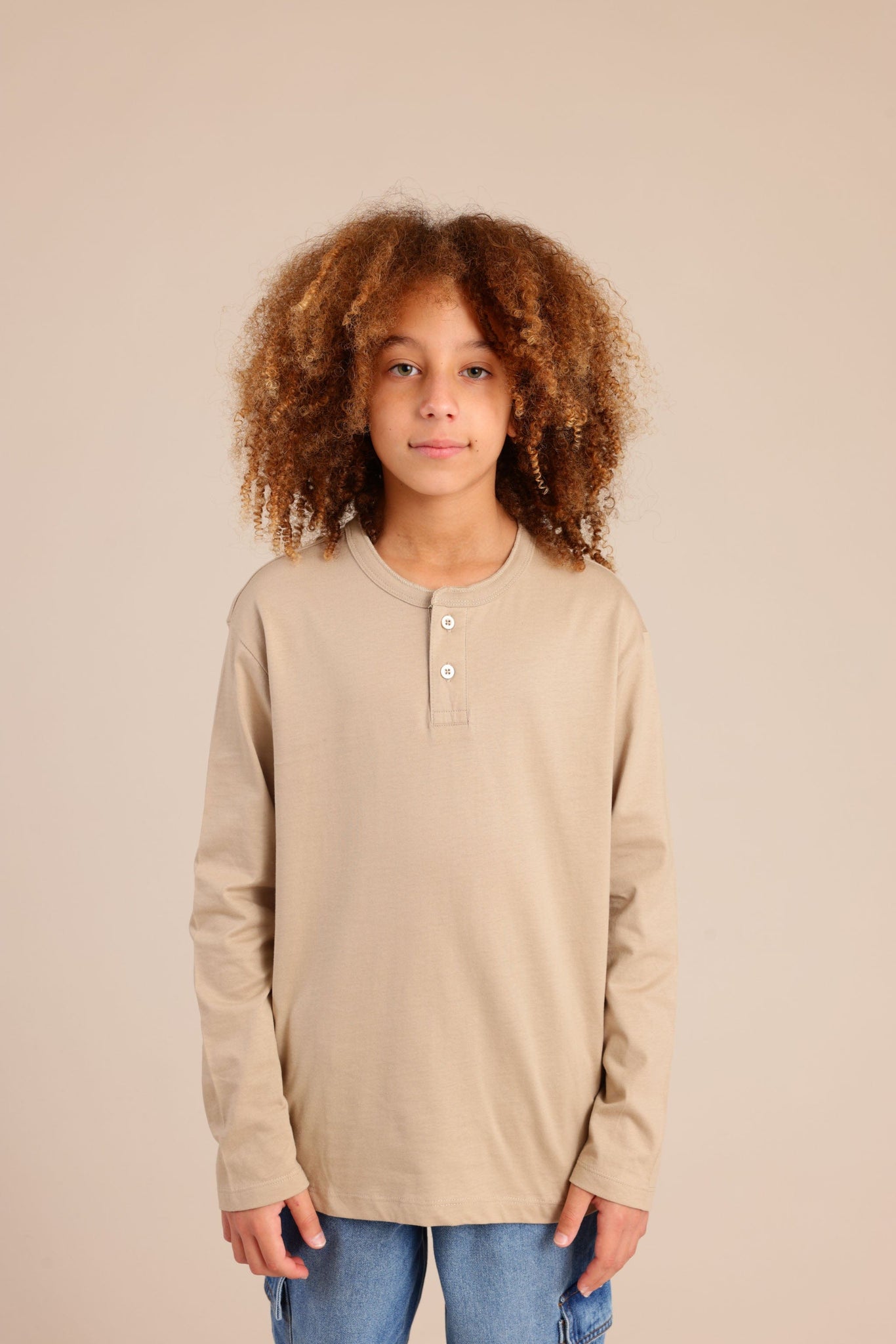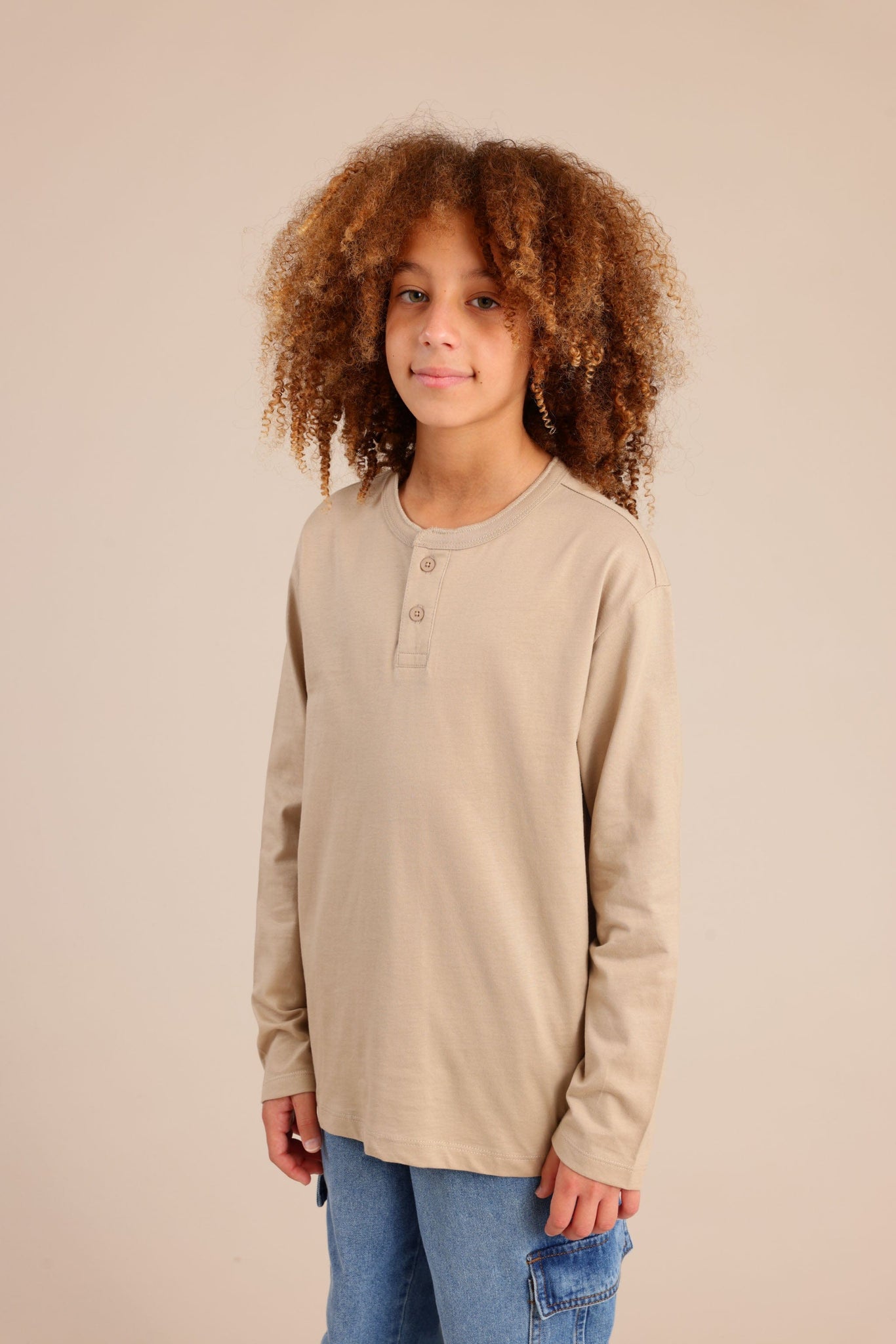 חולצה ארוכה עם כפתורים בצבע אבן מאובק