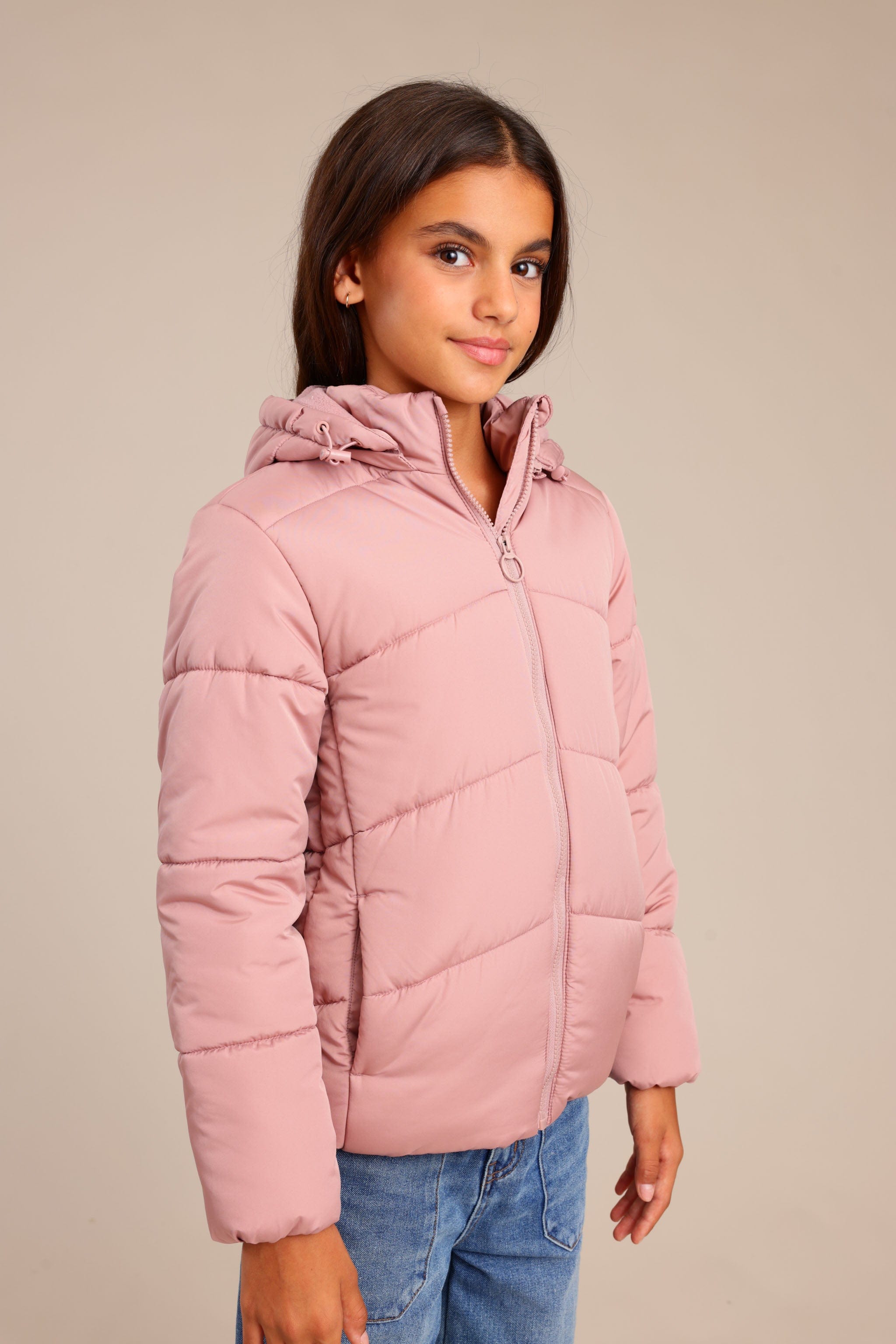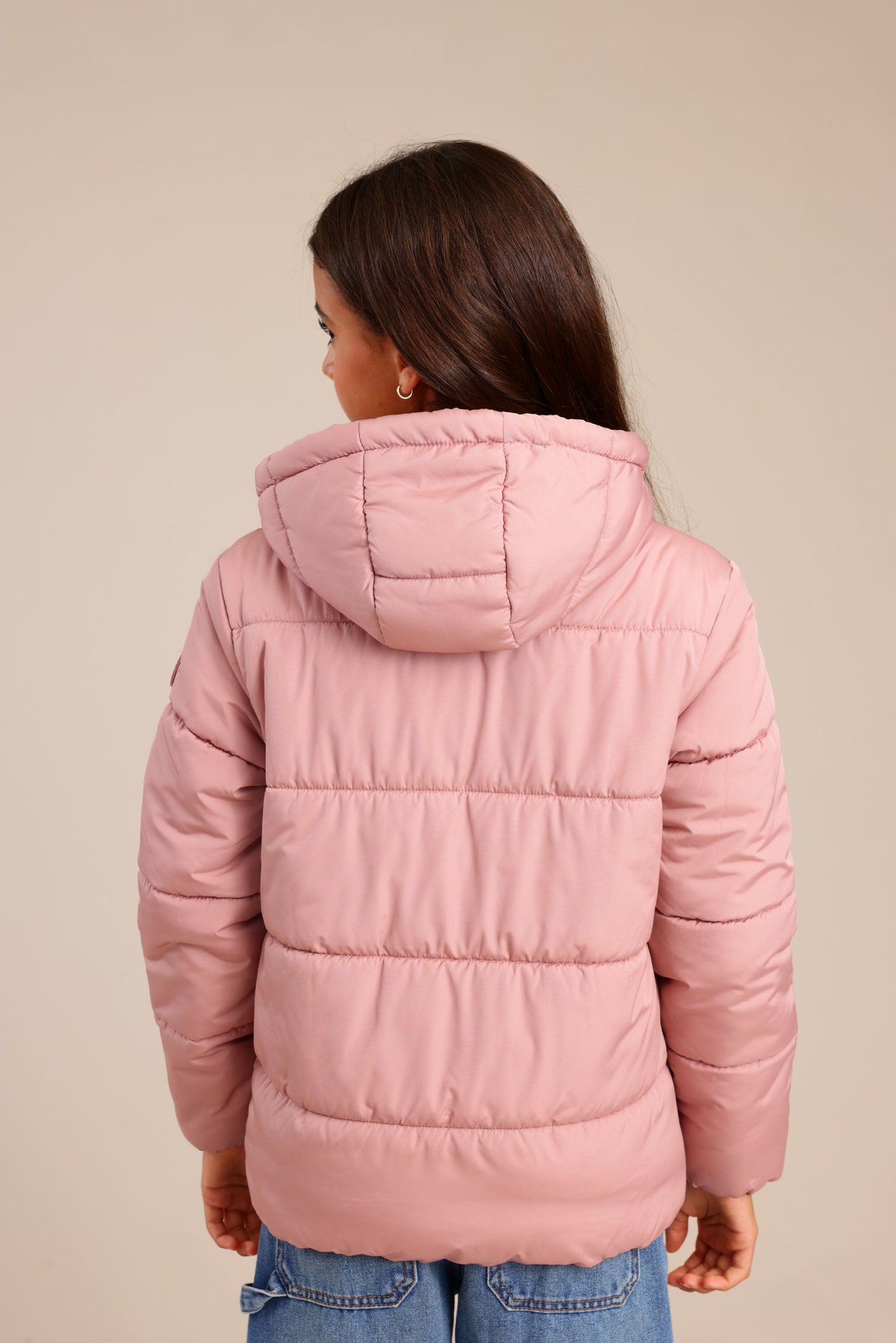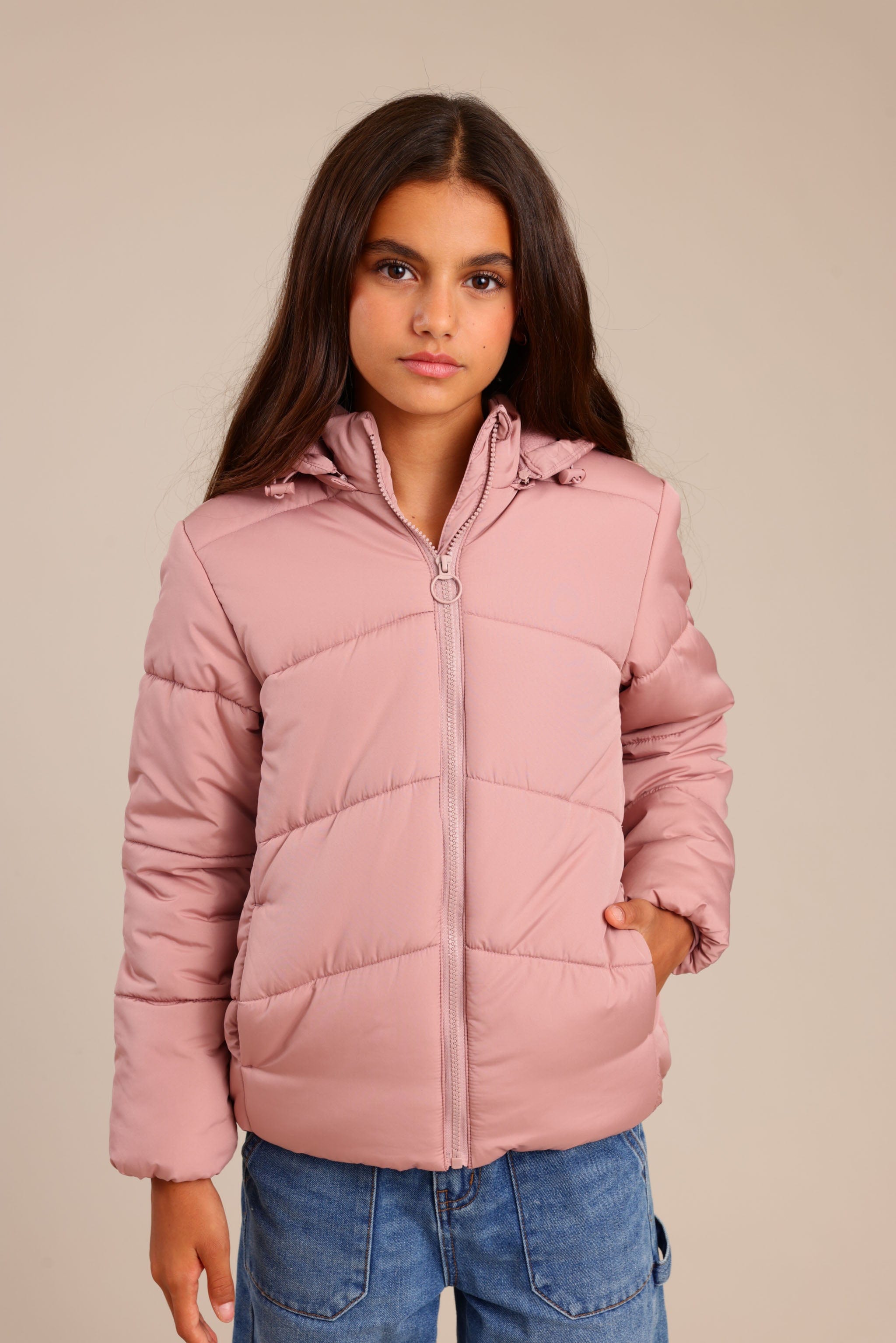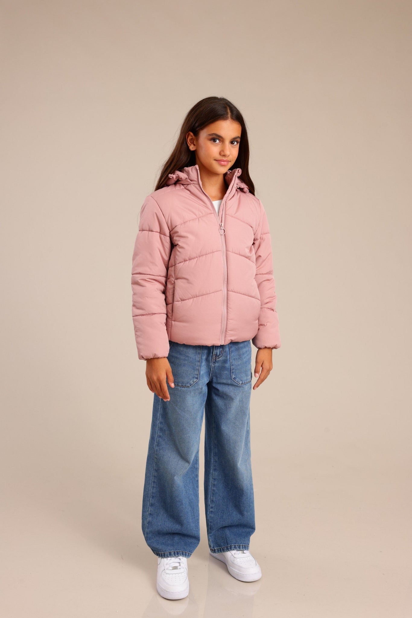 מעיל פוך לילדות עם רוכסן קדמי וכיסים בצדדים מגיע עם קפוצון נוח לחימום מושלם בעונת החורף