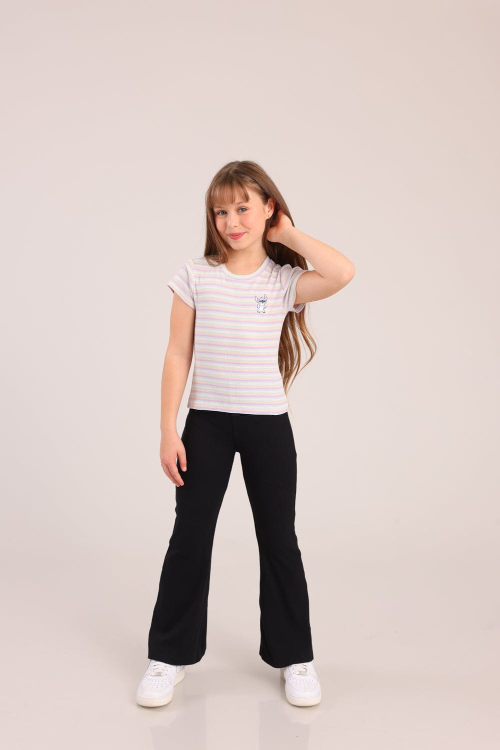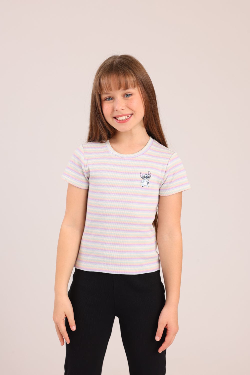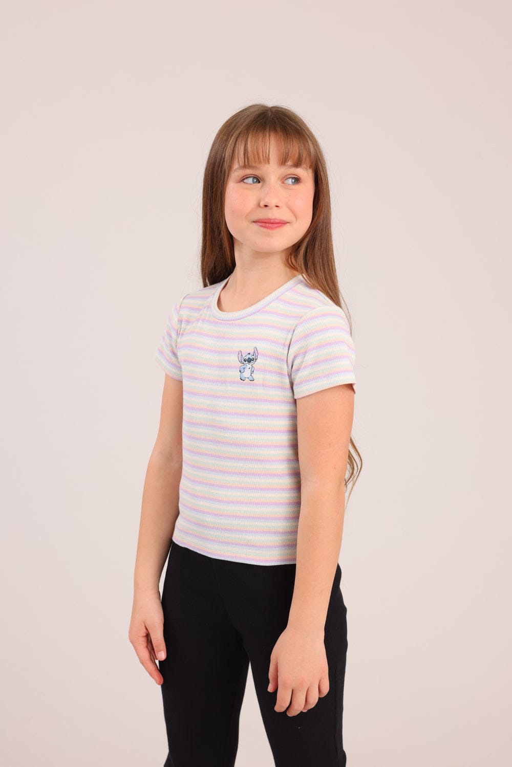 חולצת ריב פסים קצרה , ממותגת סטיץ' דיסני עם הדפס