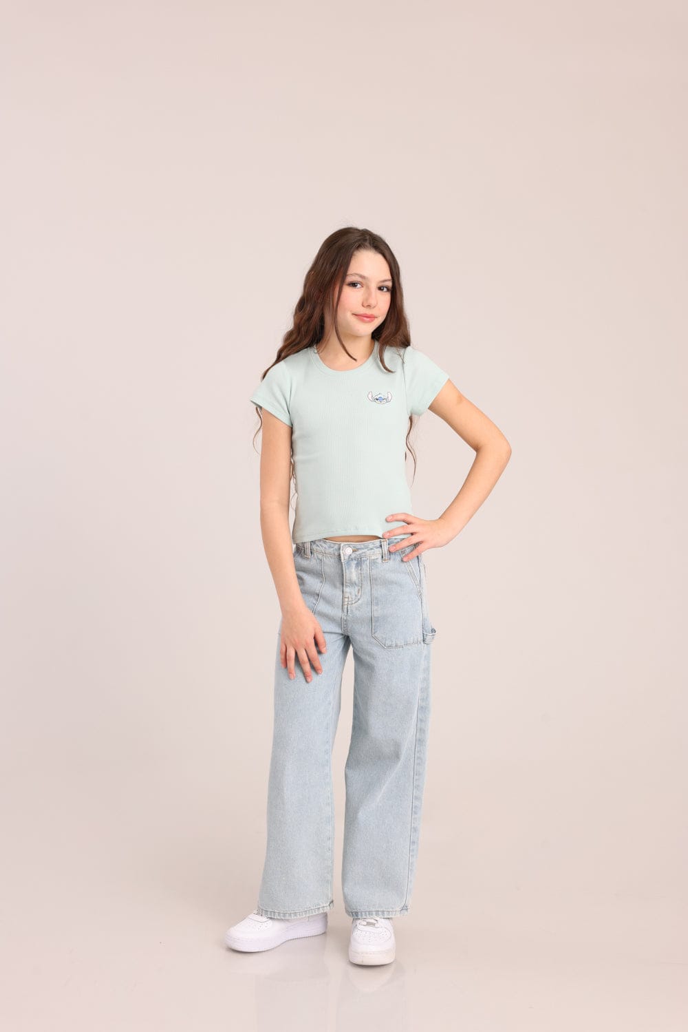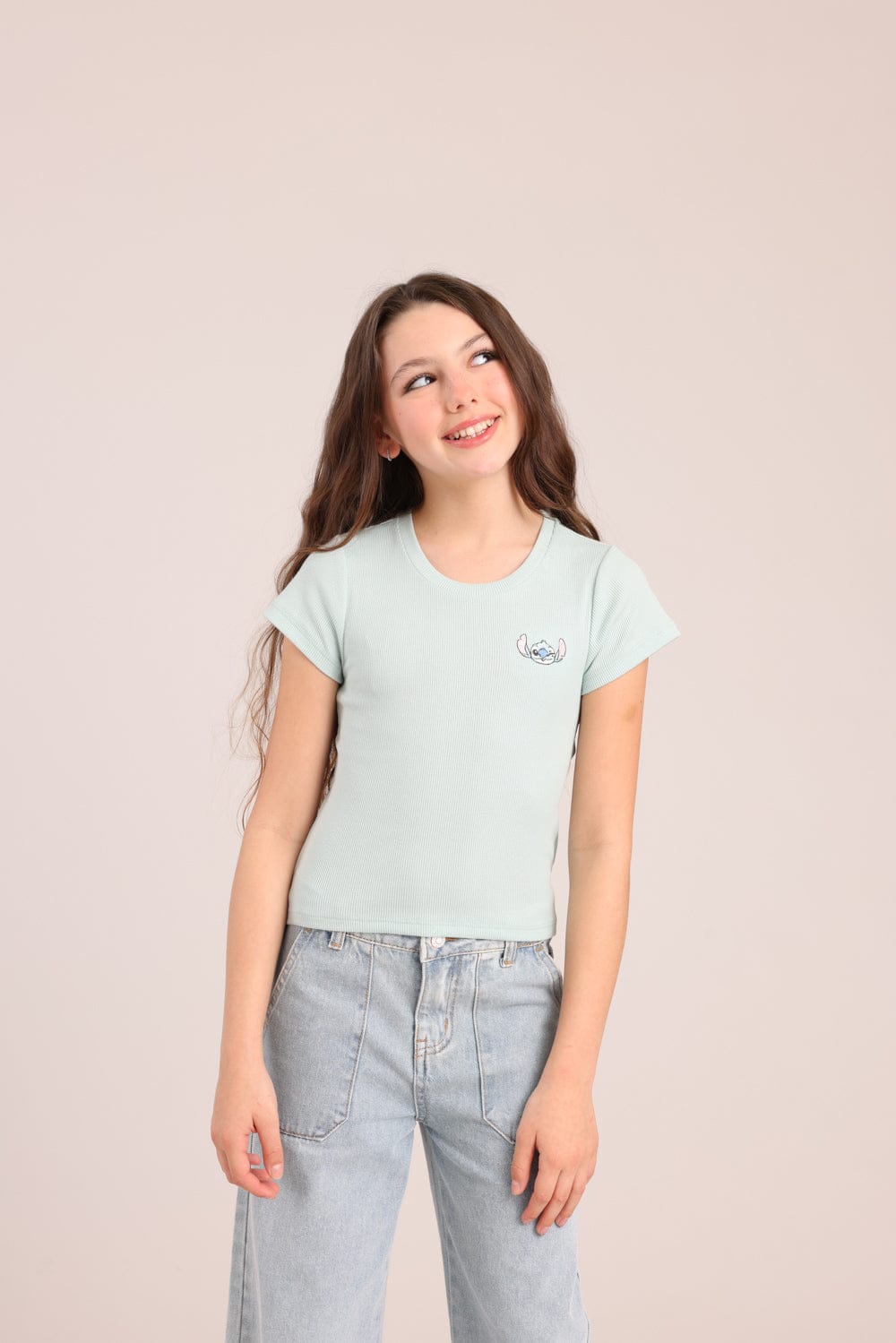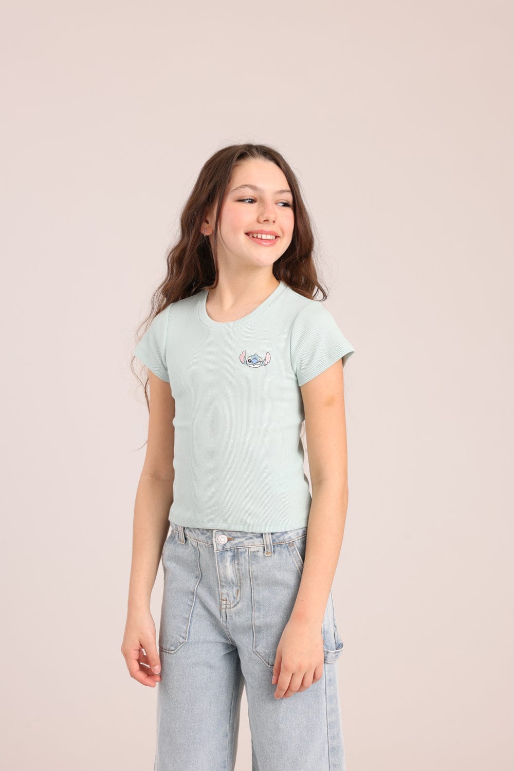 FOX בנות חולצה קצרה חולצת ריב ממותגת סטיץ' דיסני חולצת ריב ממותגת סטיץ' דיסני