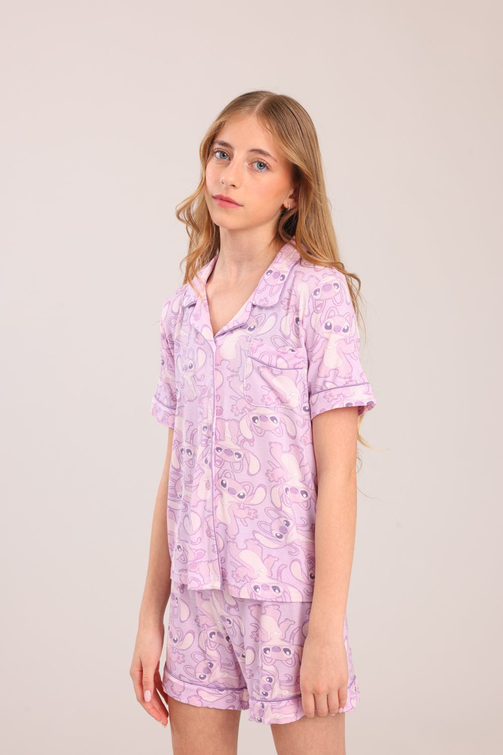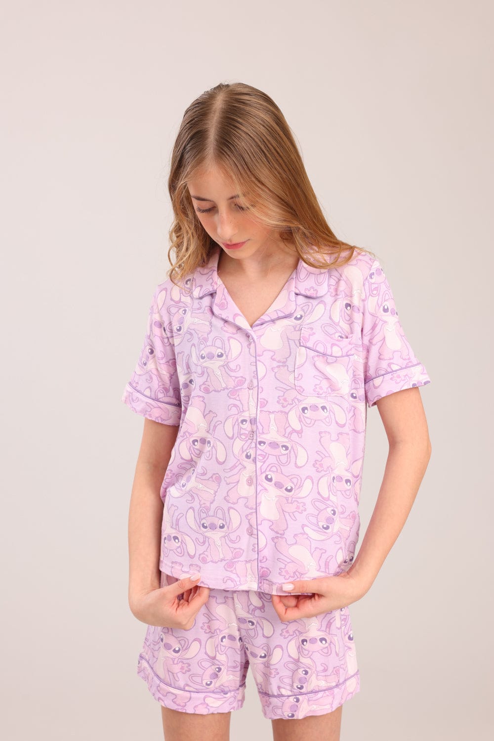 פיג'מה קצרה מכופתרת עם צווארון ממותגת סטיץ' דיסני